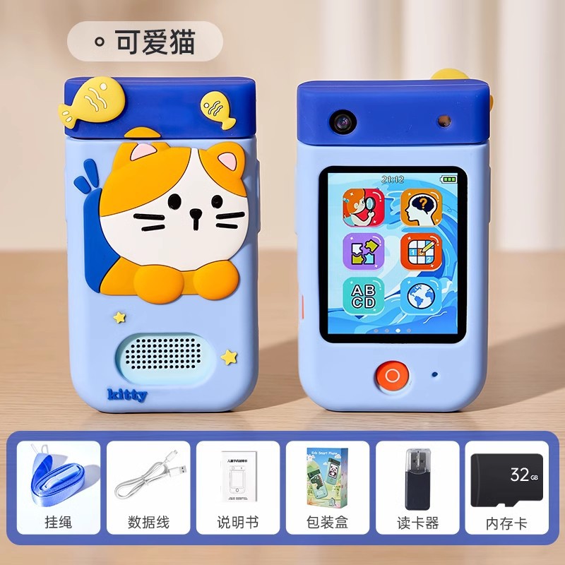 • [귀여운 고양이 32G] 고화질 터치 대형 화면/100가지 조기 교육 인지 학습/오래 지속되는 배터리 수명/사진 및 동영상 촬영 가능