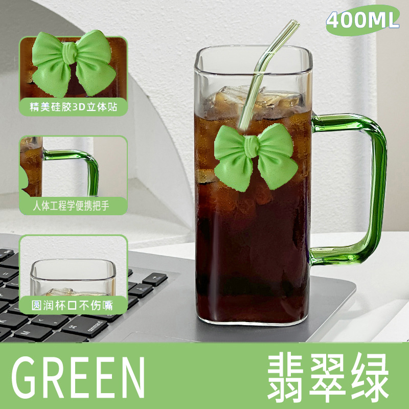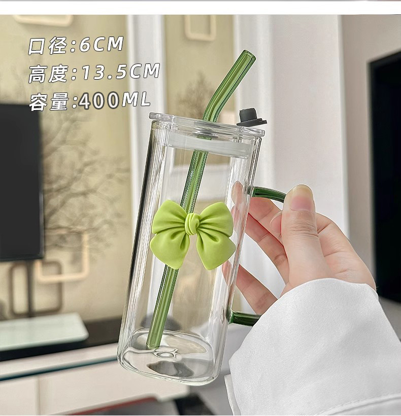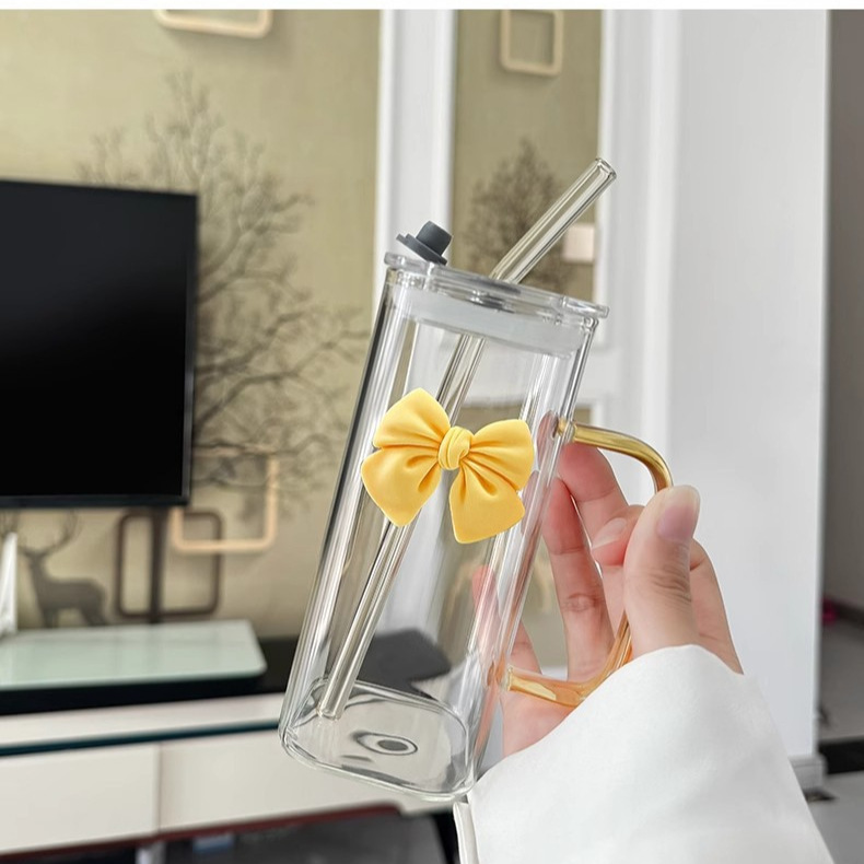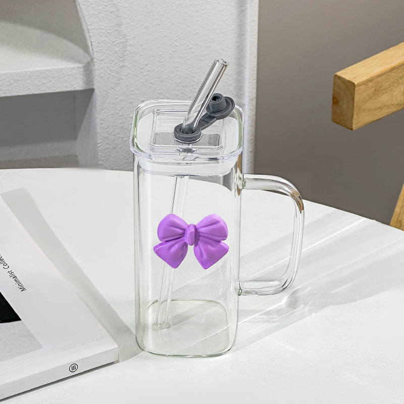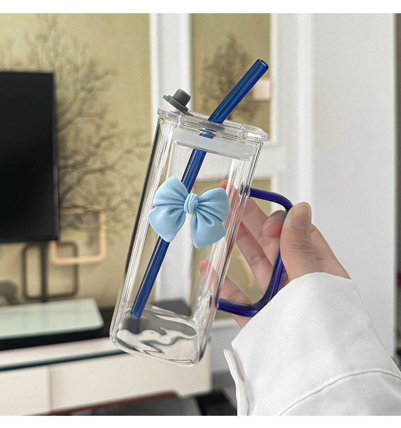 투명한 간단한 스퀘어 워터 컵 인 스타일 활 유리 흡입 튜브 컵 핸들 고온 커피 우유 컵