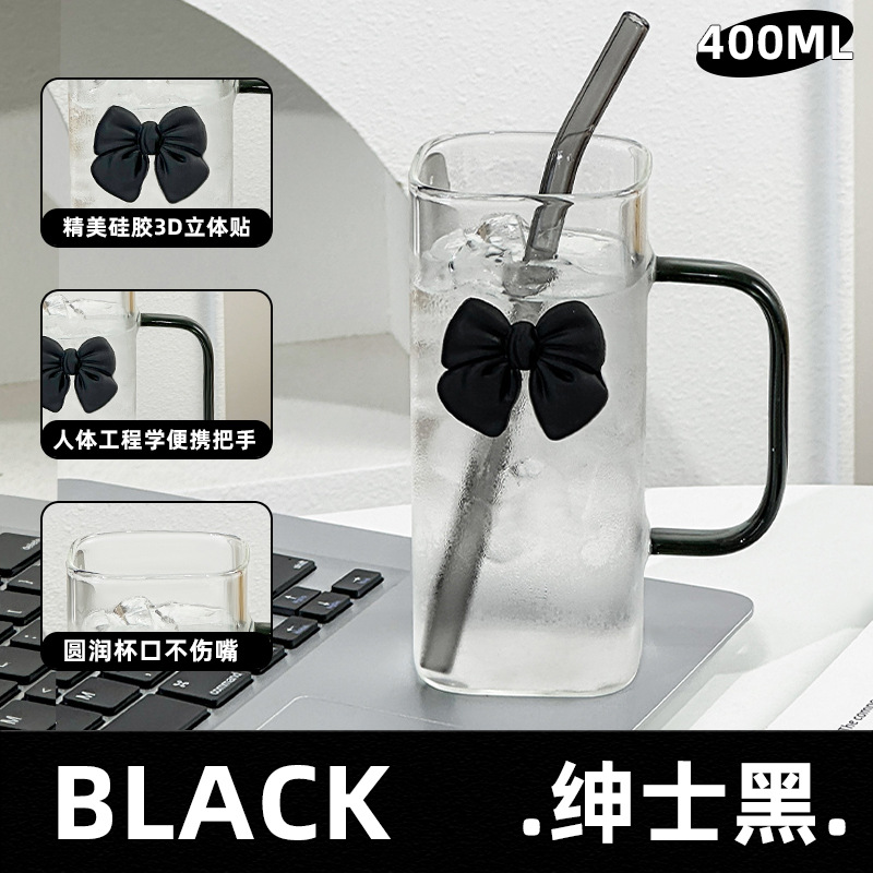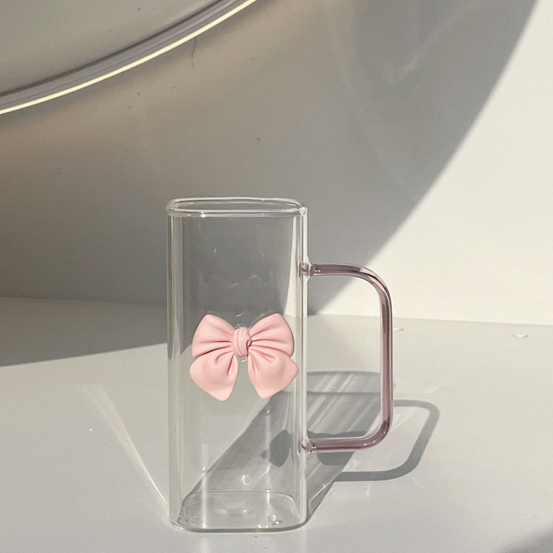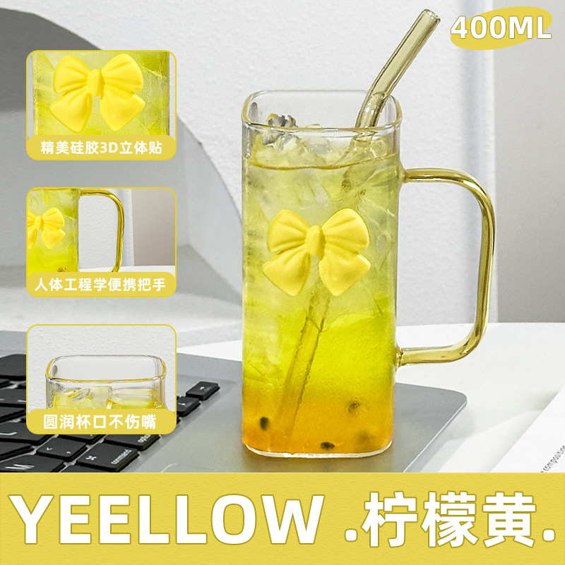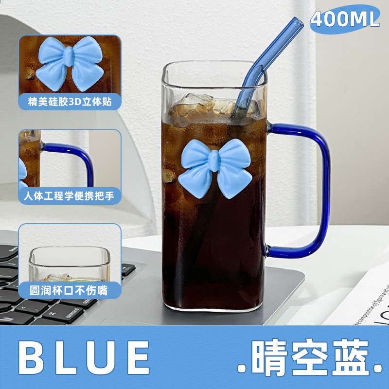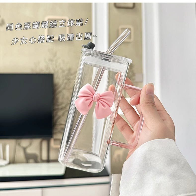 투명한 간단한 스퀘어 워터 컵 인 스타일 활 유리 흡입 튜브 컵 핸들 고온 커피 우유 컵