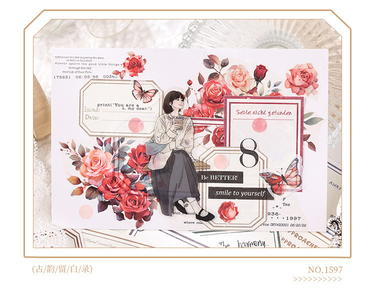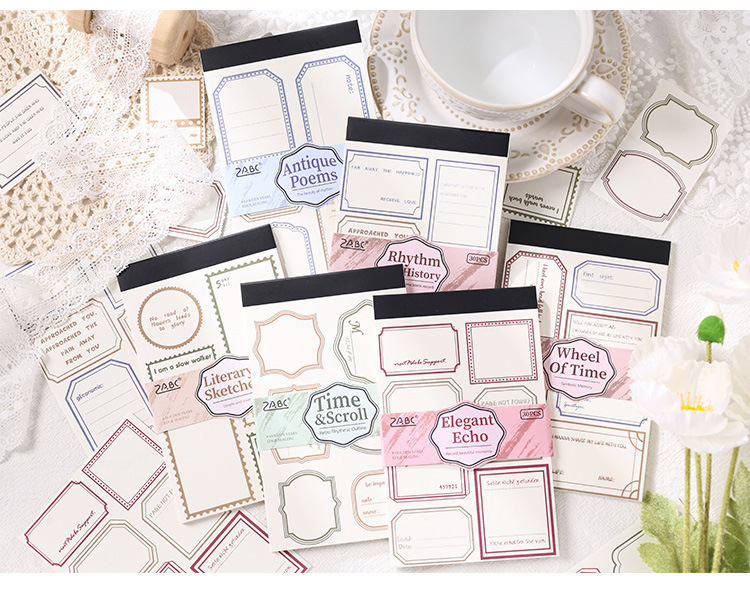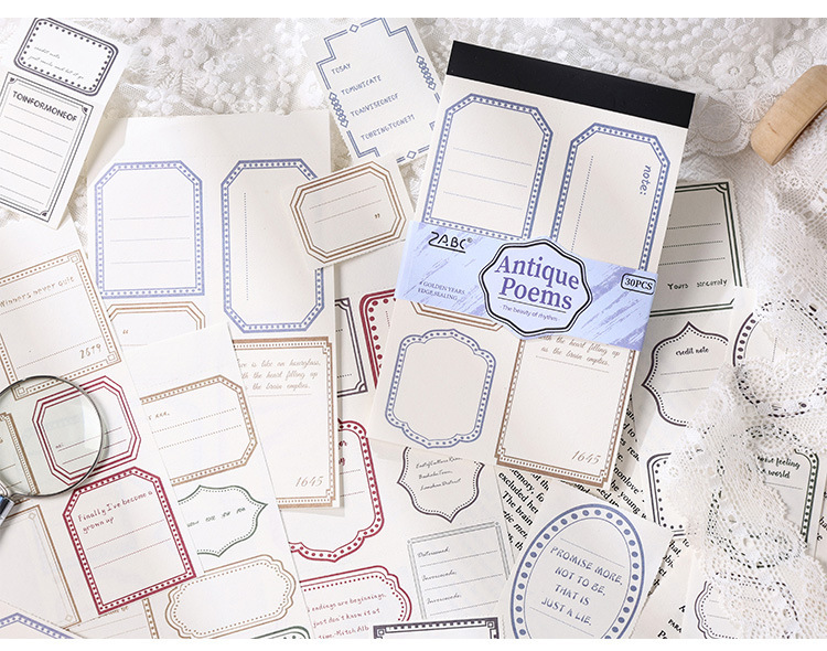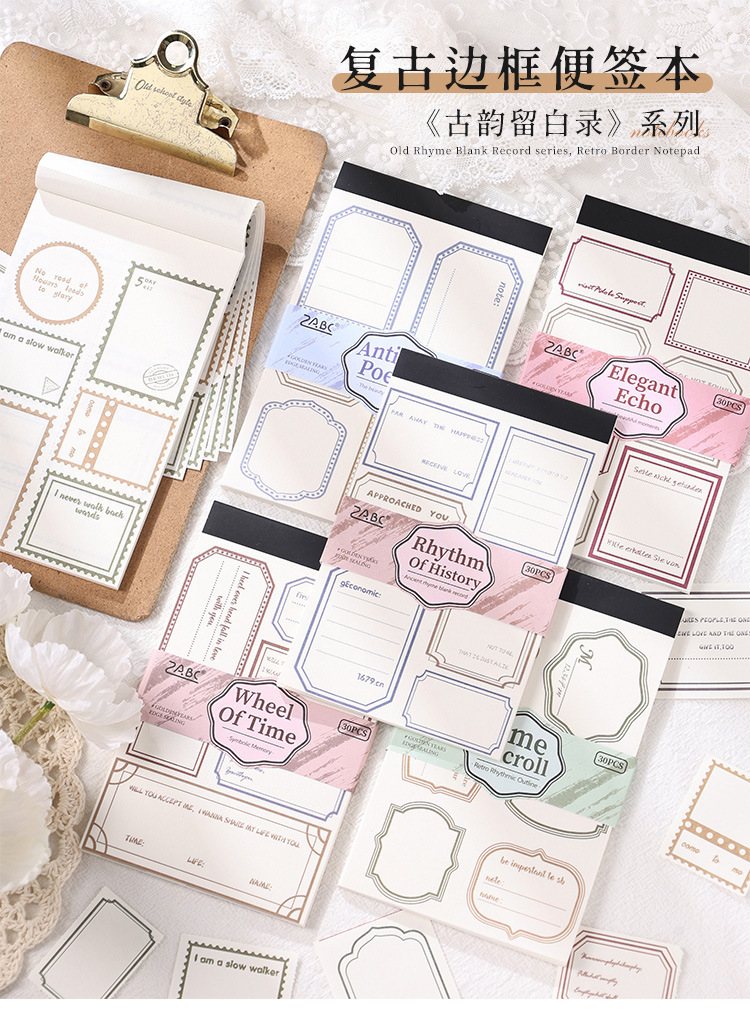 고대 운율 빈 기록 끈적 끈적한 메모 종이 복고풍 국경 메시지 노트 북 스탬프 국경 손 계정 장식 자료스토어 가기