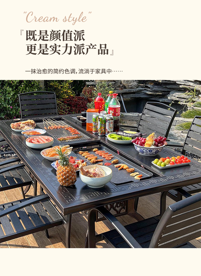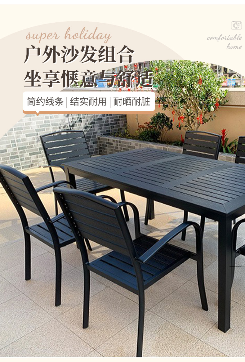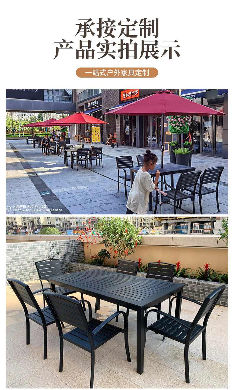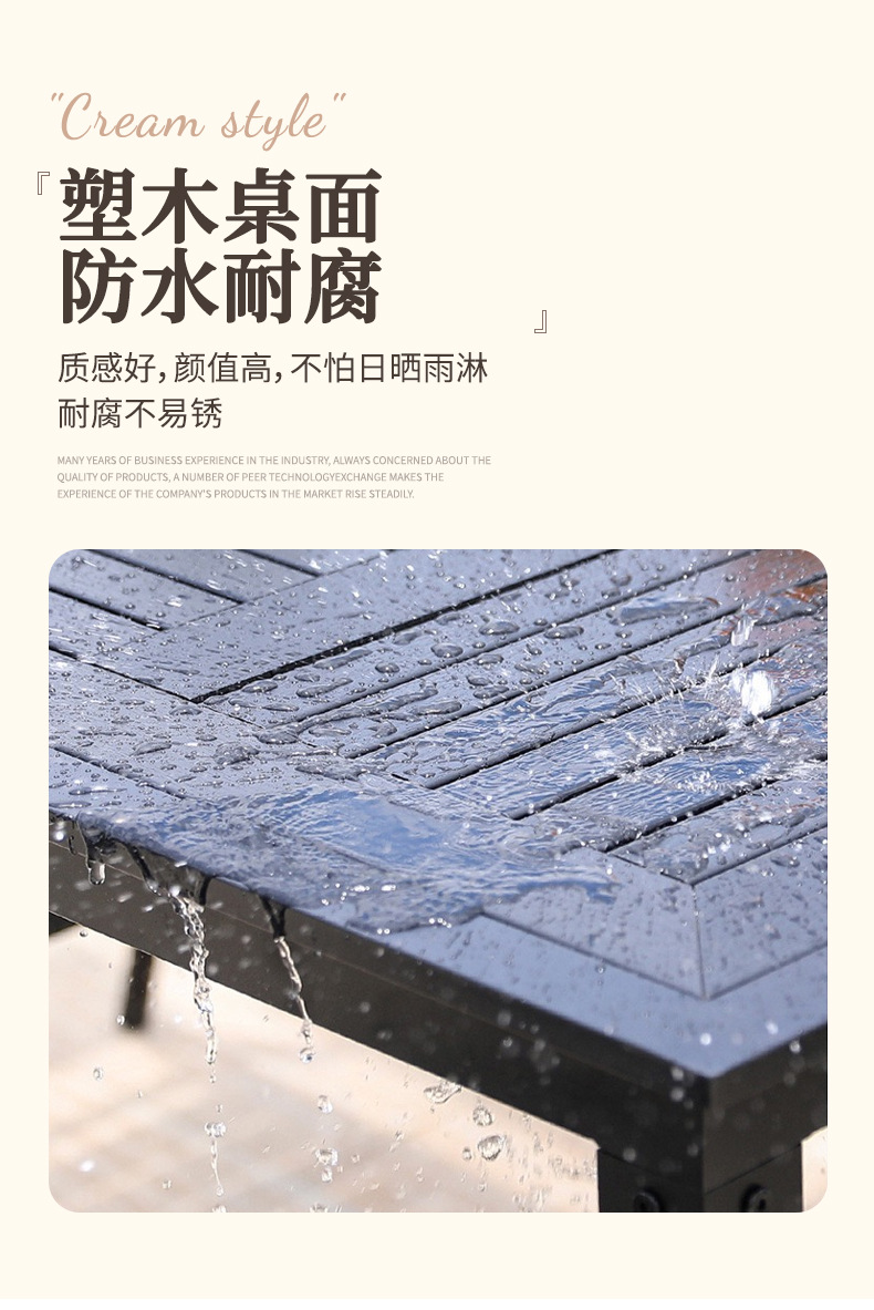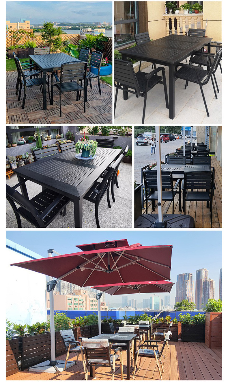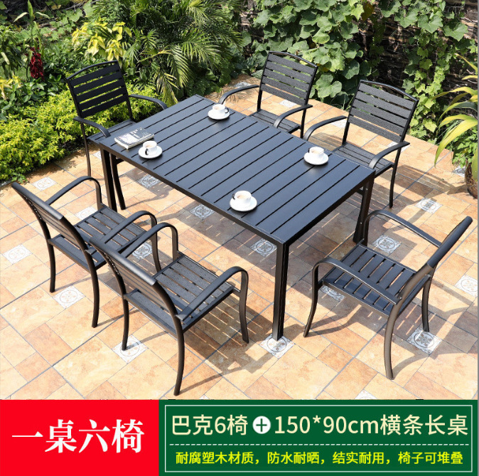 야외 플라스틱 목재 테이블과 의자, 정원 야외 레저 식탁, 정원, 야외 발코니, 공원 방수 및 자외선 차단 테이블과 의자 세트