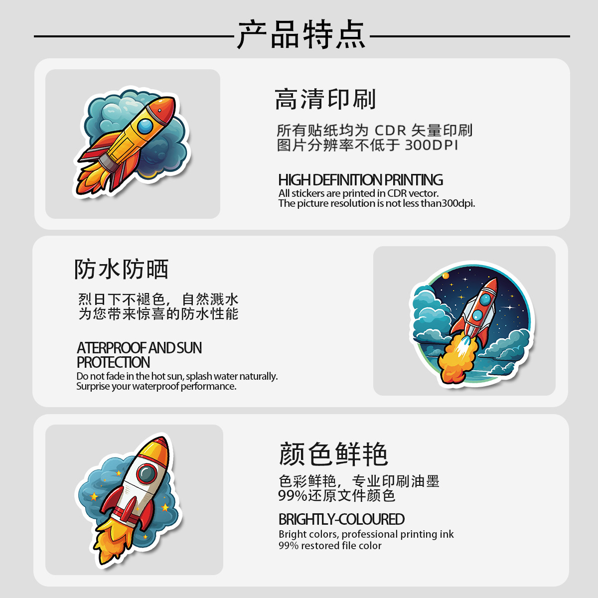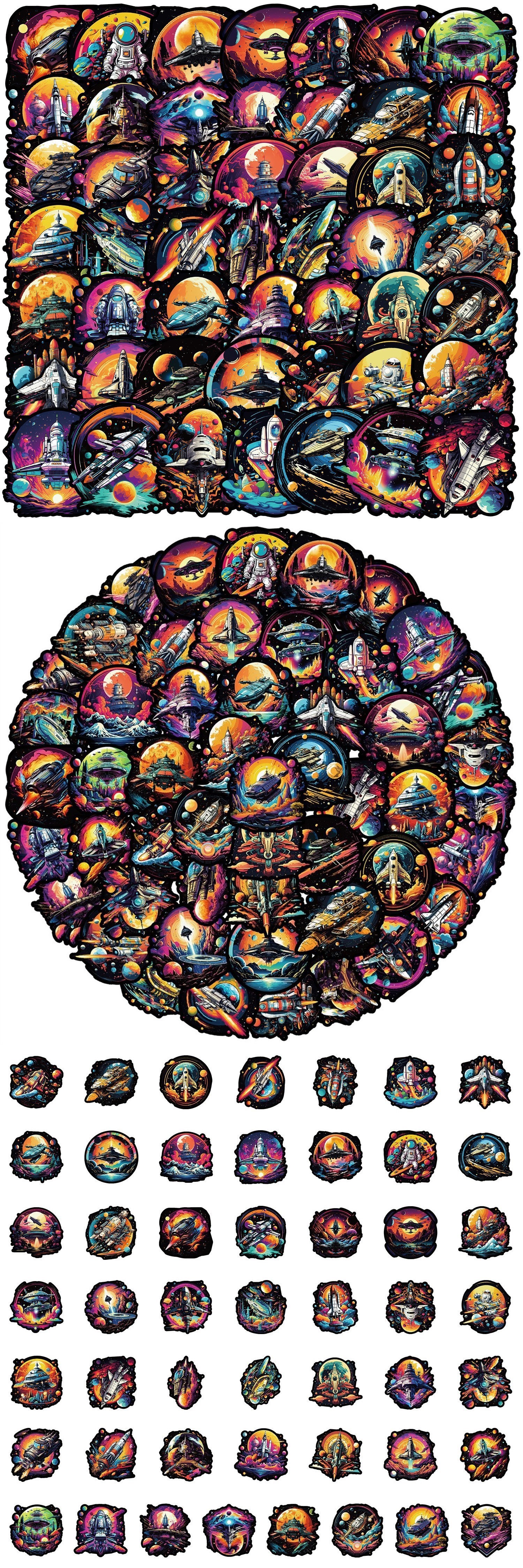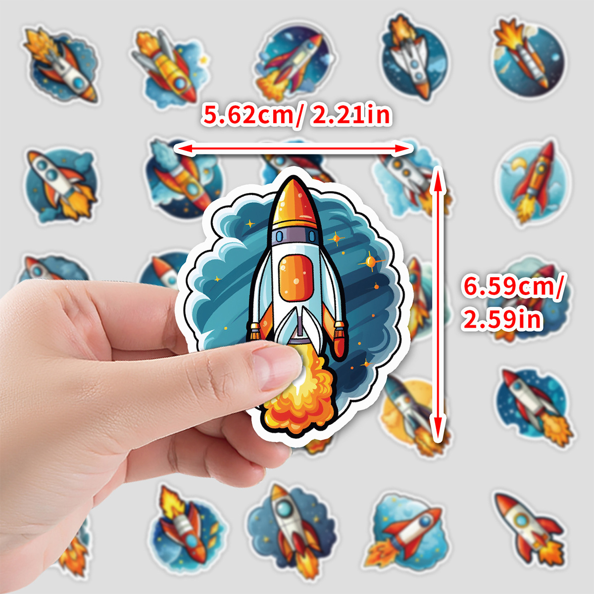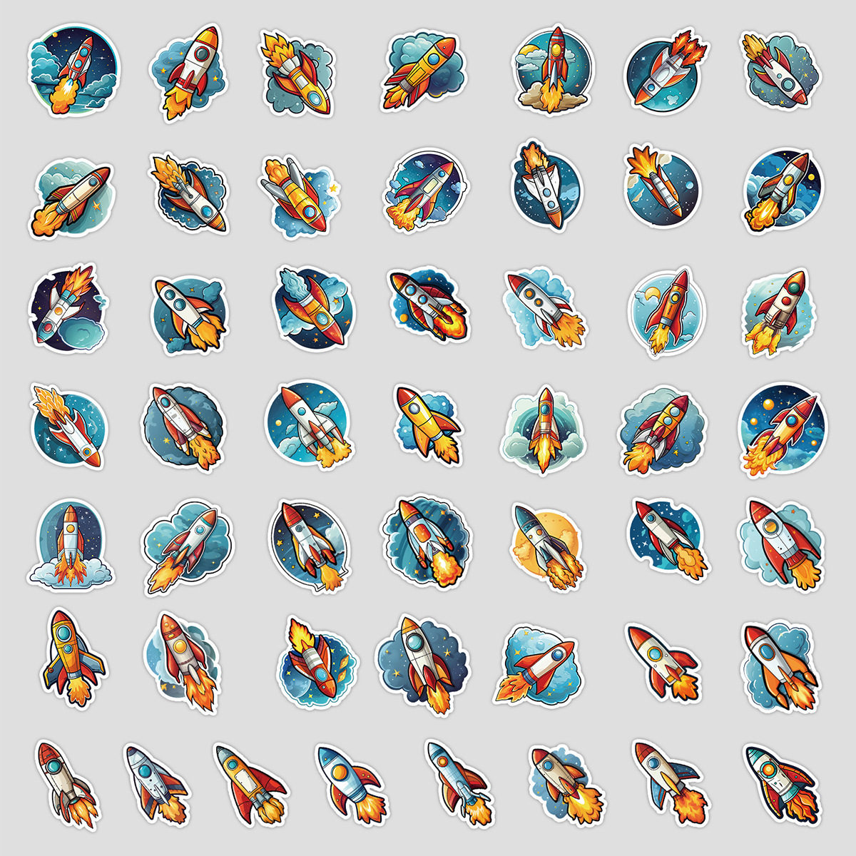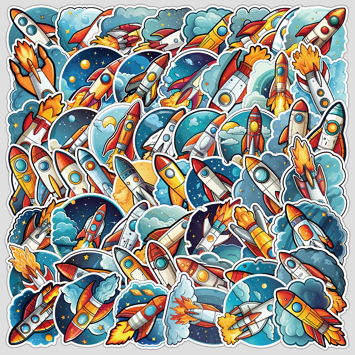 50 로켓 시리즈 낙서 스티커 DIY 문구 스티커 물 컵 컴퓨터 스케이트 보드 방수 장식 스티커 도매