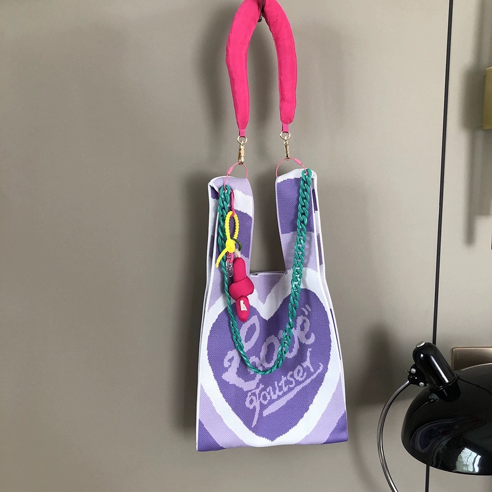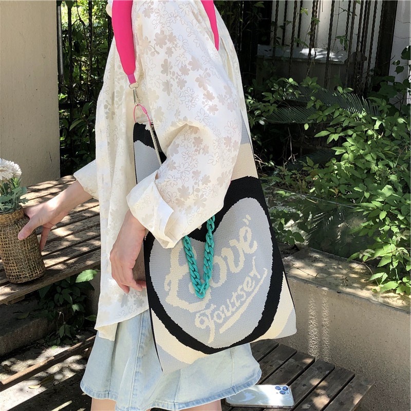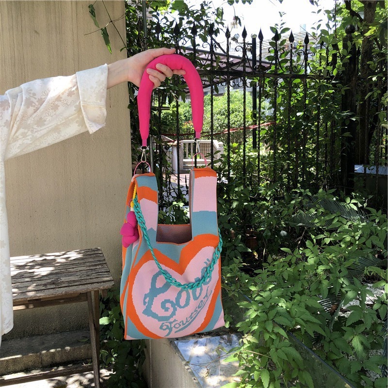 새로운 핸드백 틈새 니트 러브 조커 대용량 캐주얼 토트 인 휴가 필수품을 들고 원래 손스토어 가기