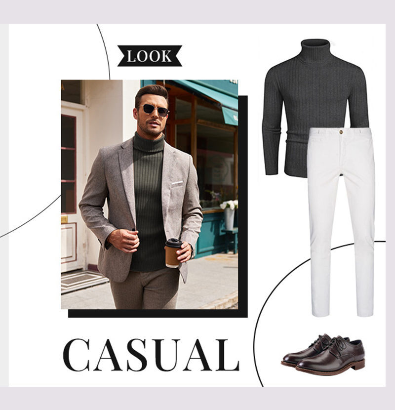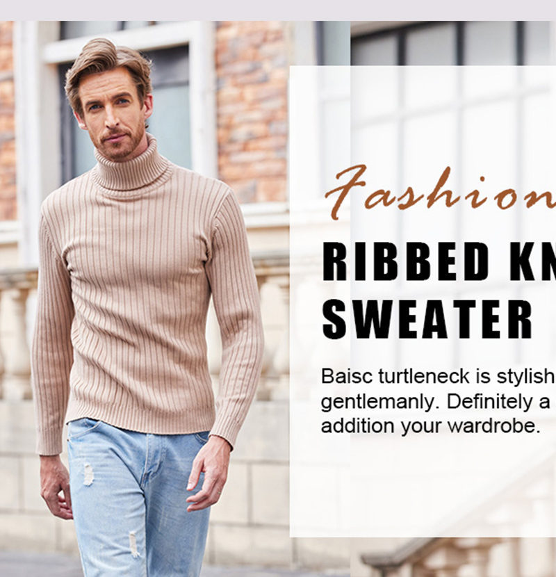 아마존 국경 간 가을/겨울 남자 수직 스트립 터틀넥 스웨터 남자 유럽과 미국의 슬림 핏 따뜻한 풀오버 베이스 니트 스웨터