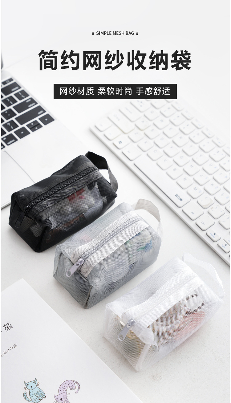 메쉬 저장 가방 미니 휴대용 동전 가방 헤드셋 저장 가방 데이터 케이블 저장 가방 휴대 립스틱 지퍼 가방