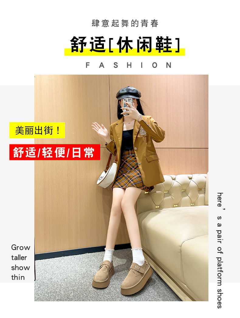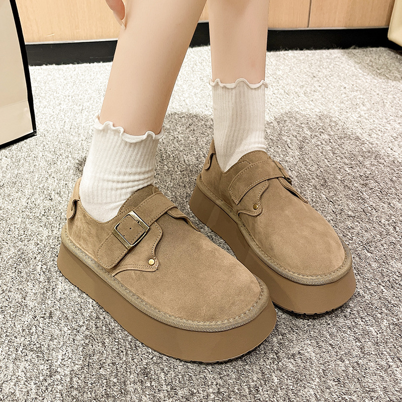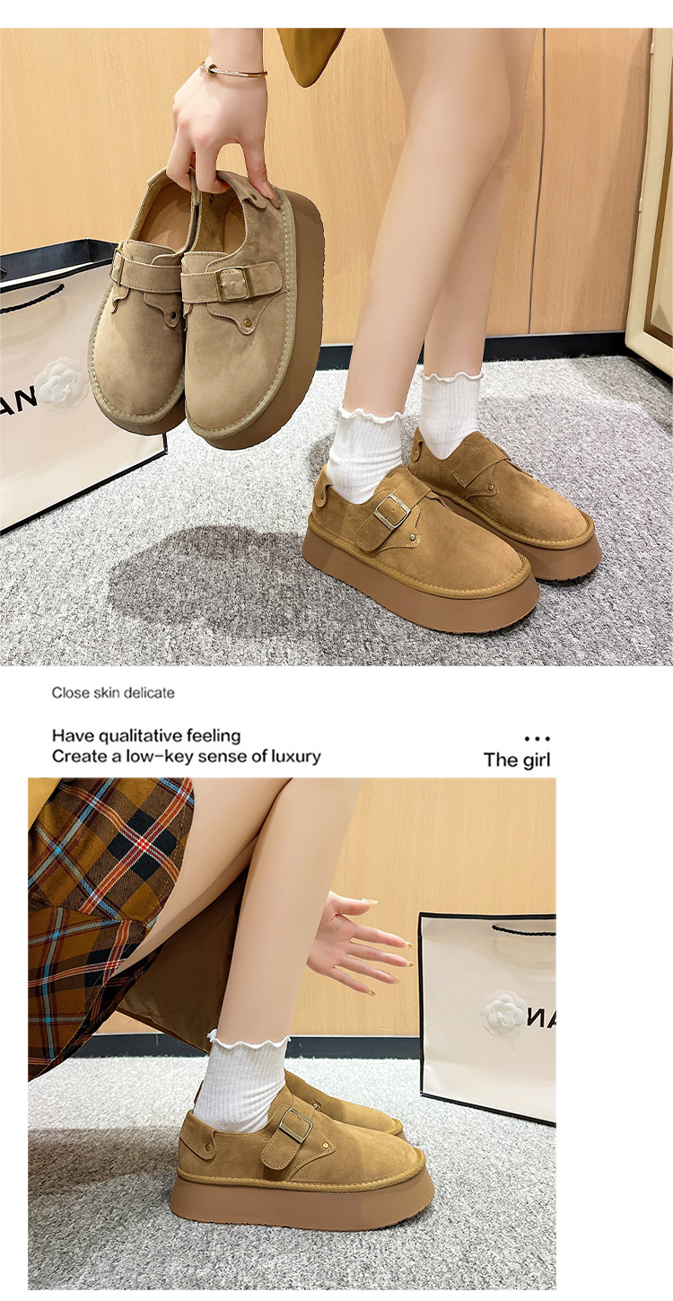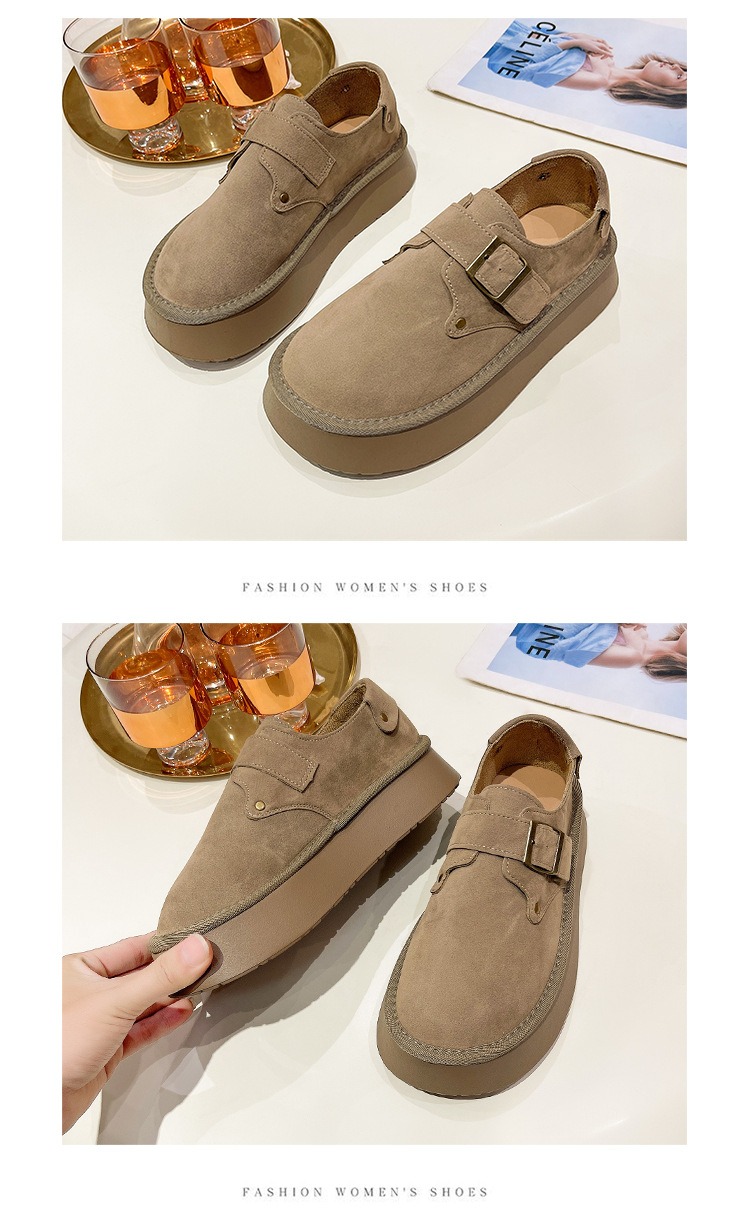 출생 신발 순수 오리지널 여성 신발 2024 가을 새 한국 스타일 슬립 온 라운드 발가락 로퍼 두꺼운 단독 올무 증가스토어 가기