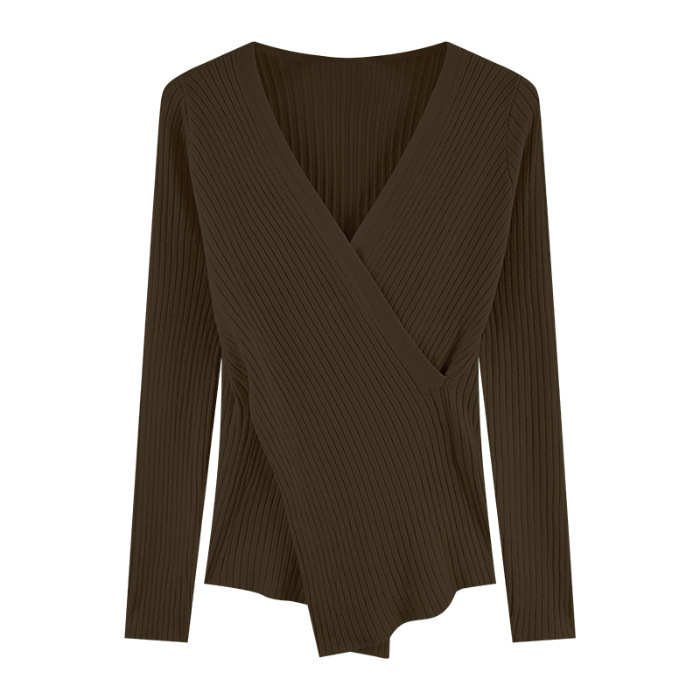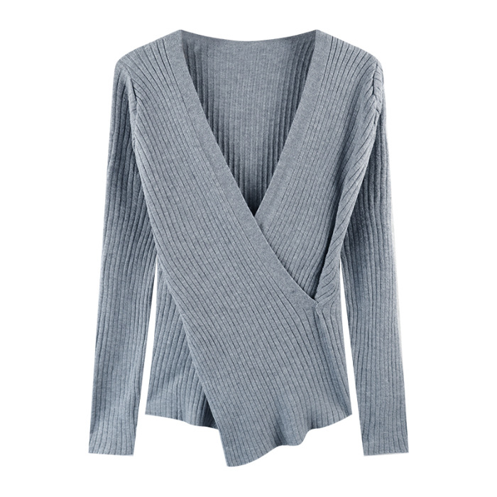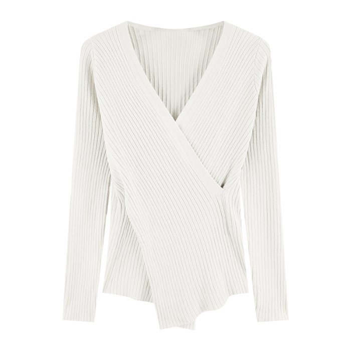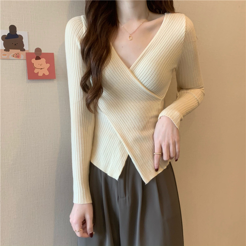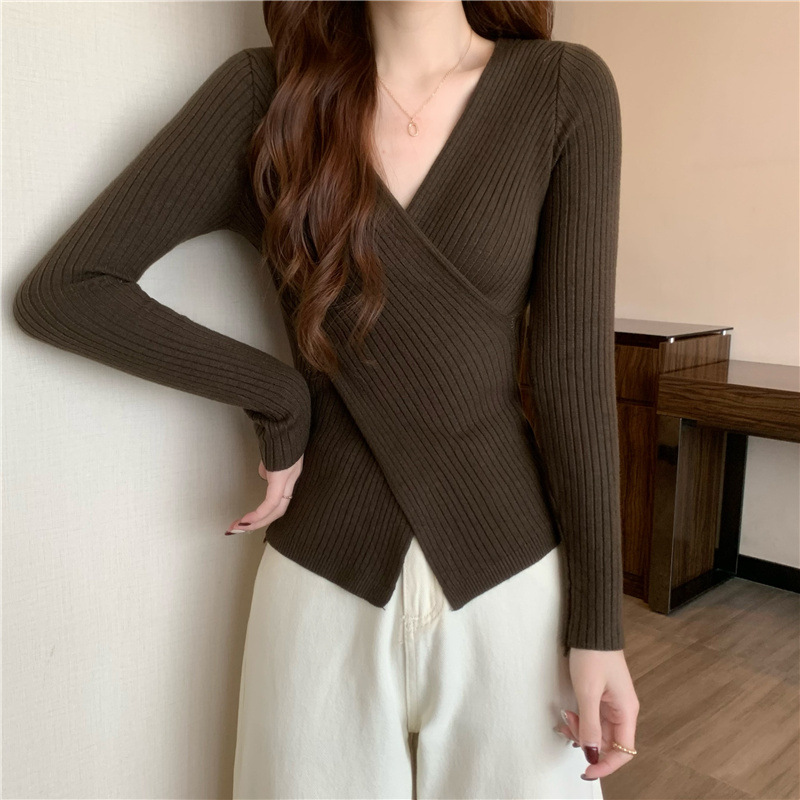 올해의 아름다운 긴팔 스웨터 스웨터 이른 가을 하이 엔드 크로스 v-neck 탑 여성용 이너 베이스 셔츠