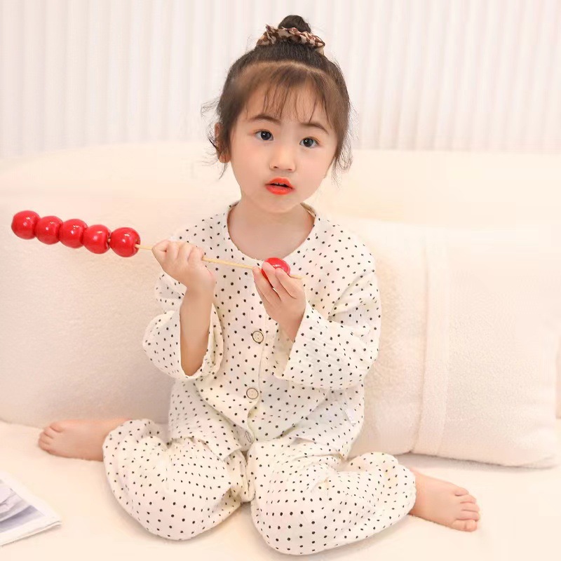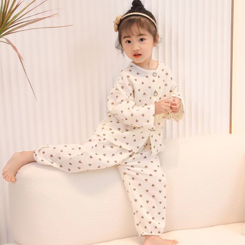 어린이 순면 잠옷 세트 남녀 아동용 만화 면 거즈 아기 9부 소매 여아 홈웨어 아동용