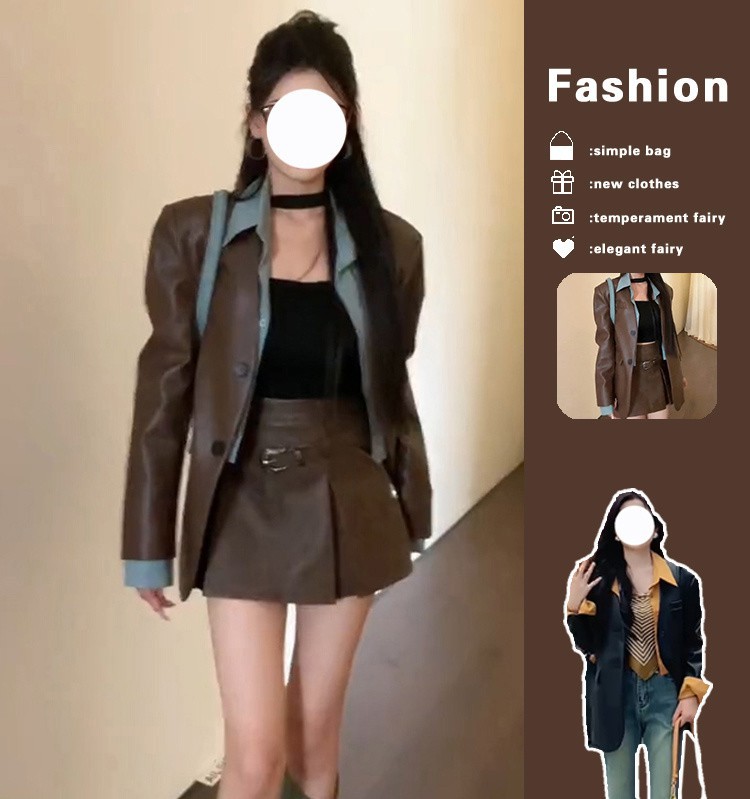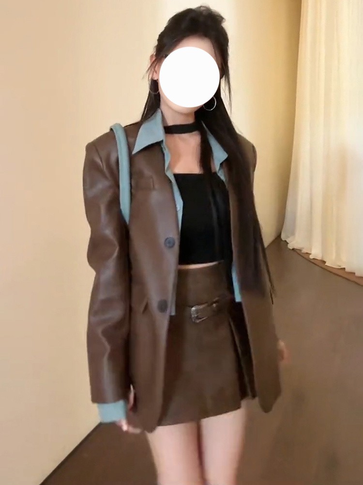 가짜 투피스 셔츠 가죽 자켓 여성의 가을과 겨울 새로운 마일라드웨어 세트 재킷 다크 브라운 다크 브라운 탑스토어 가기