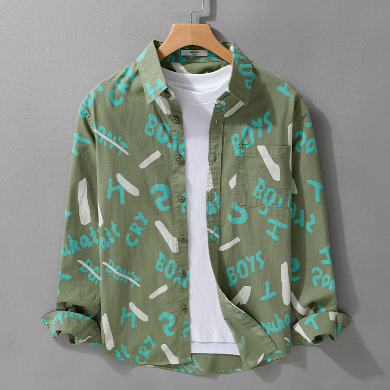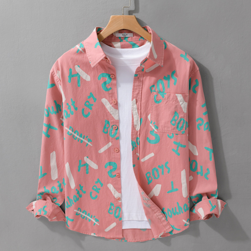 봄과 가을 남성 디자인 감각 간단한 긴팔 인쇄 셔츠 유행 캐주얼 인기있는 올 매치 남성 셔츠 6146스토어 가기