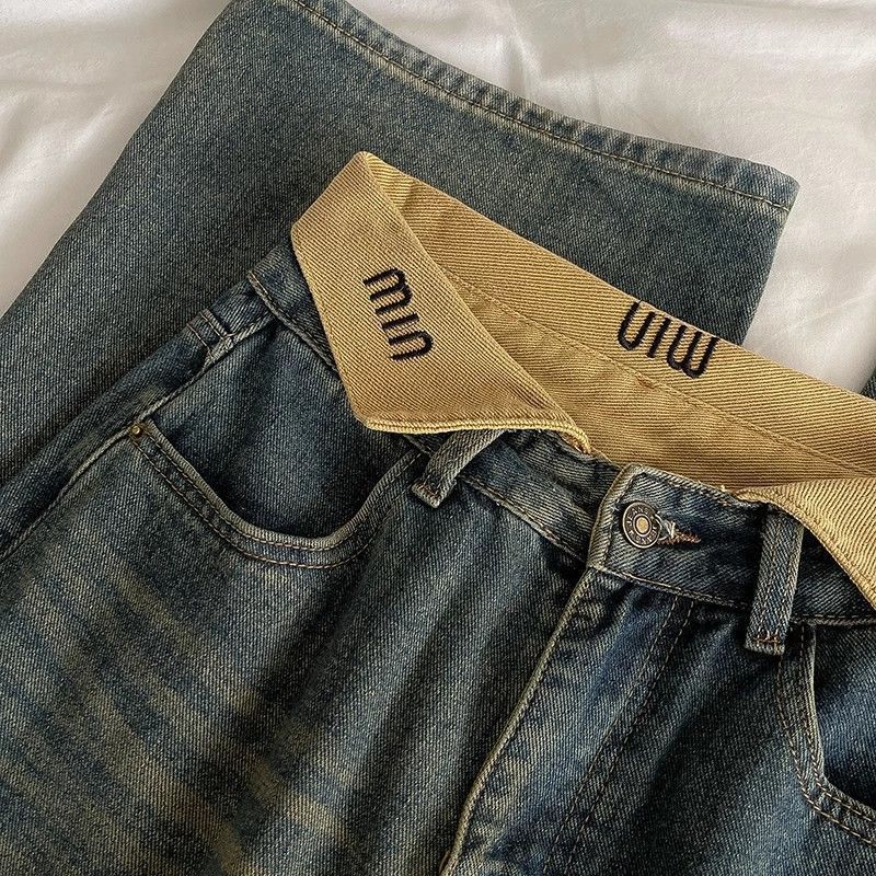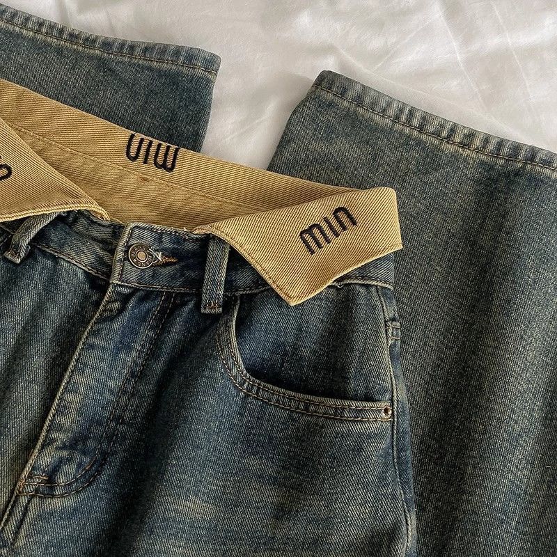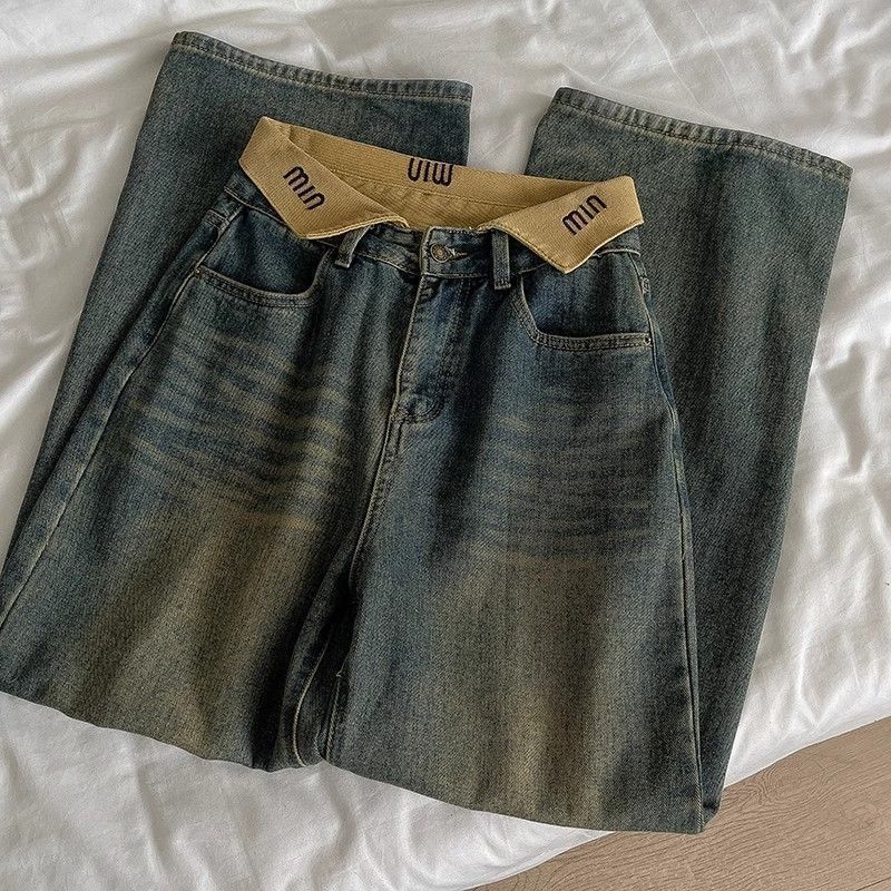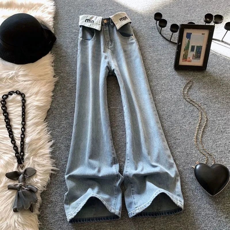 하이 스트리트 세련된 청바지 2024 가을 새로운 여성의 높은 허리 우아한 넓은 다리 바지 복고풍 연령 감소 트렌디 한 한국 스타일스토어 가기
