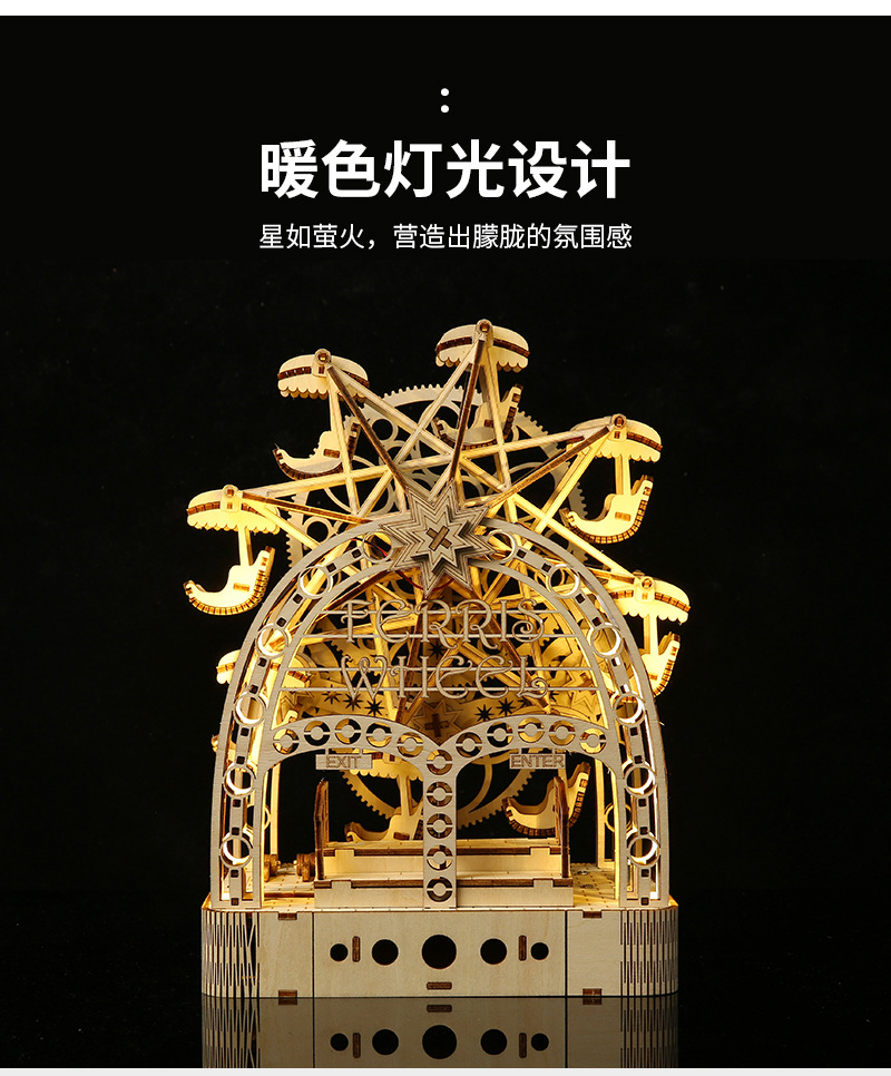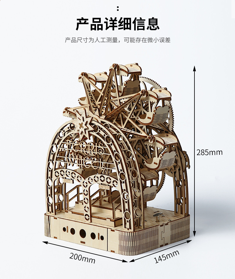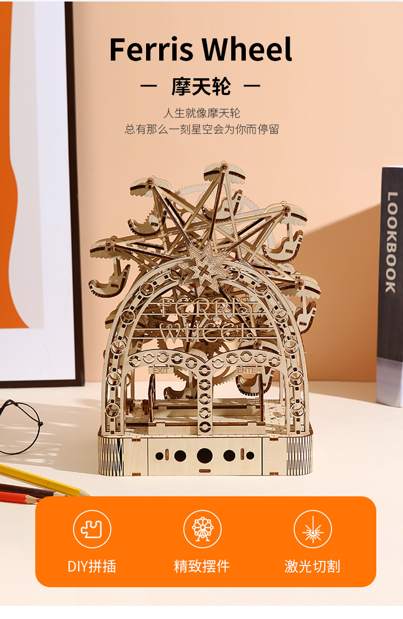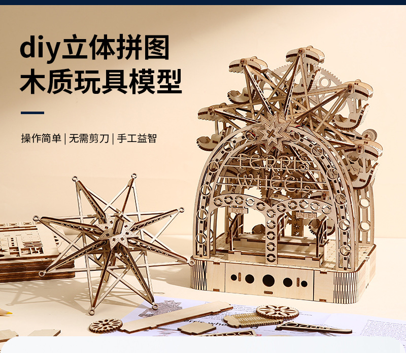 3D 나무 직소 퍼즐 손으로 크랭크 관람차 장난감 어린이 수제 DIY 장식품 퍼즐 생일 선물스토어 가기
