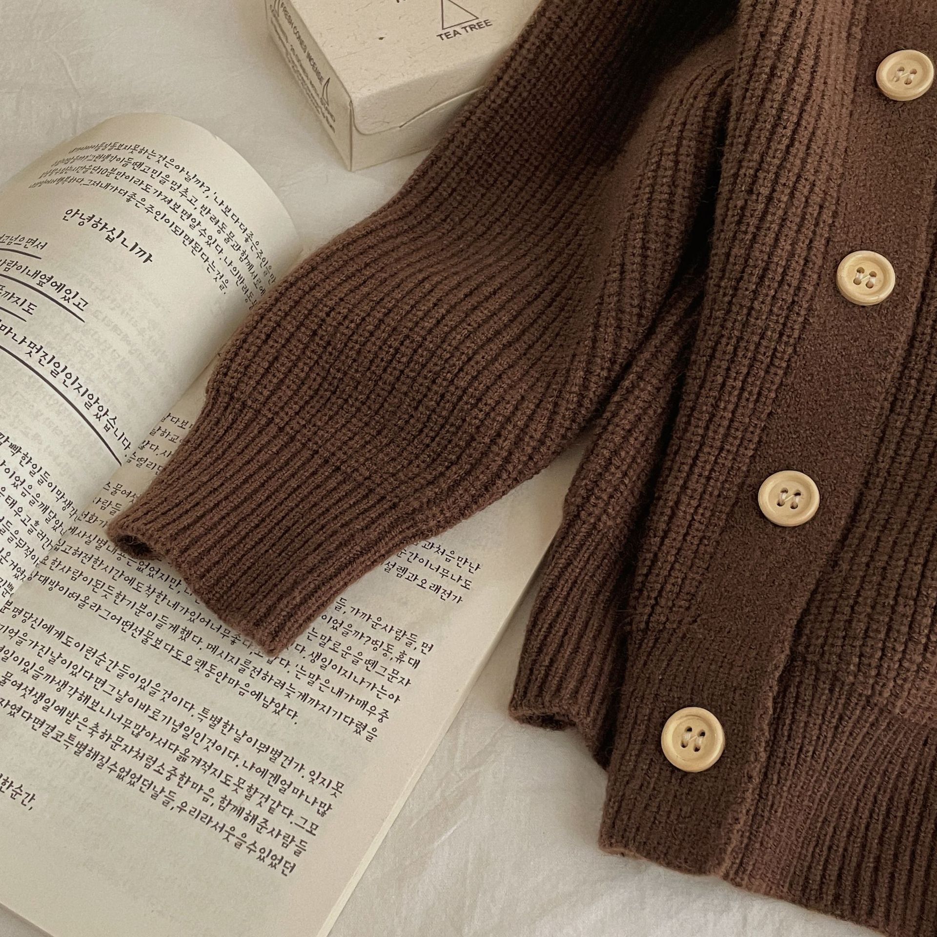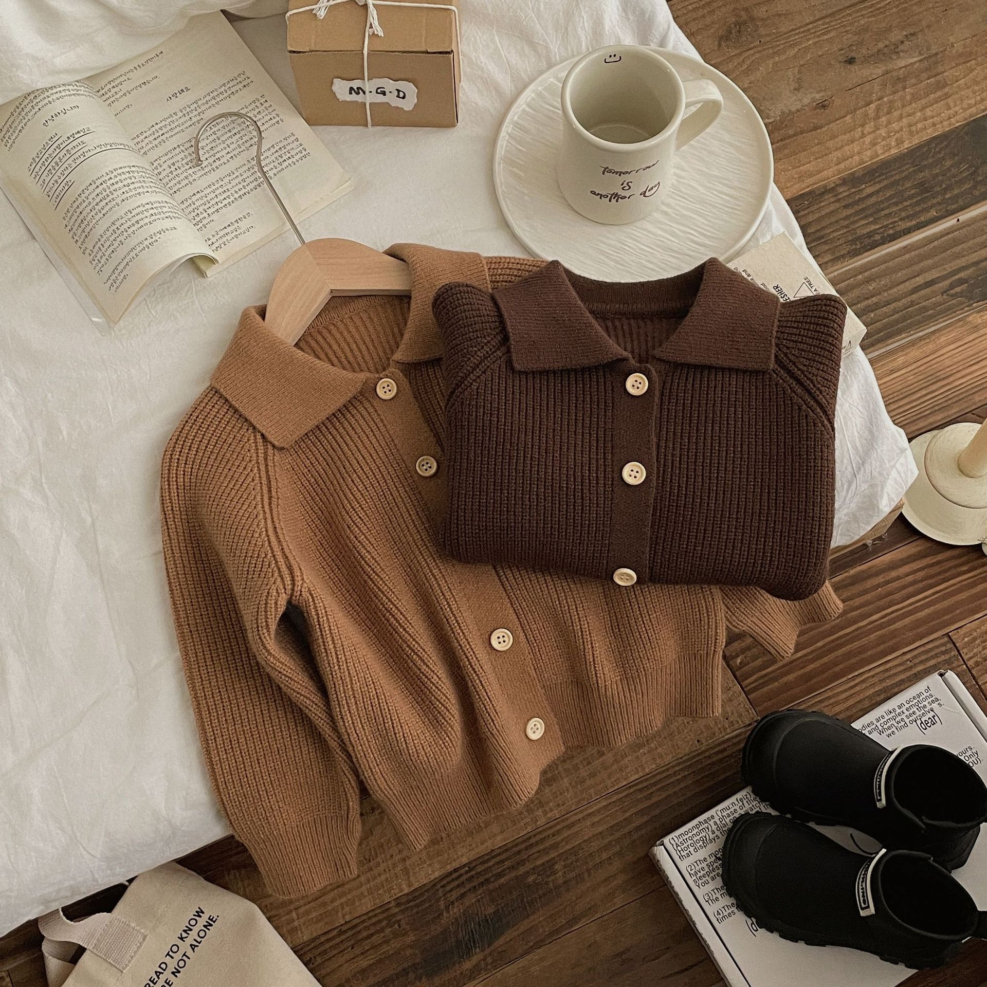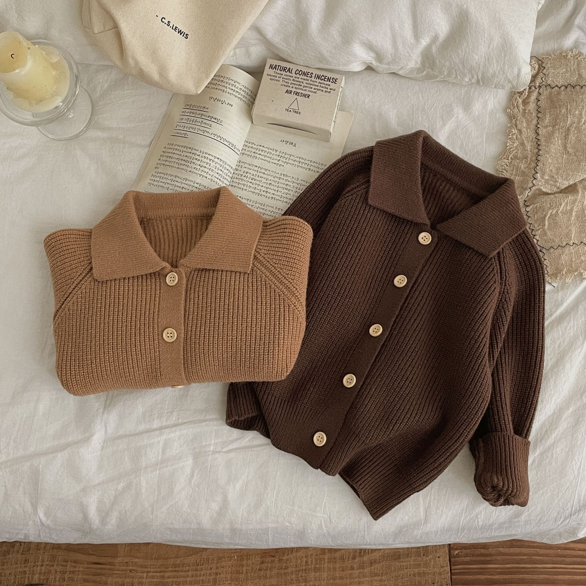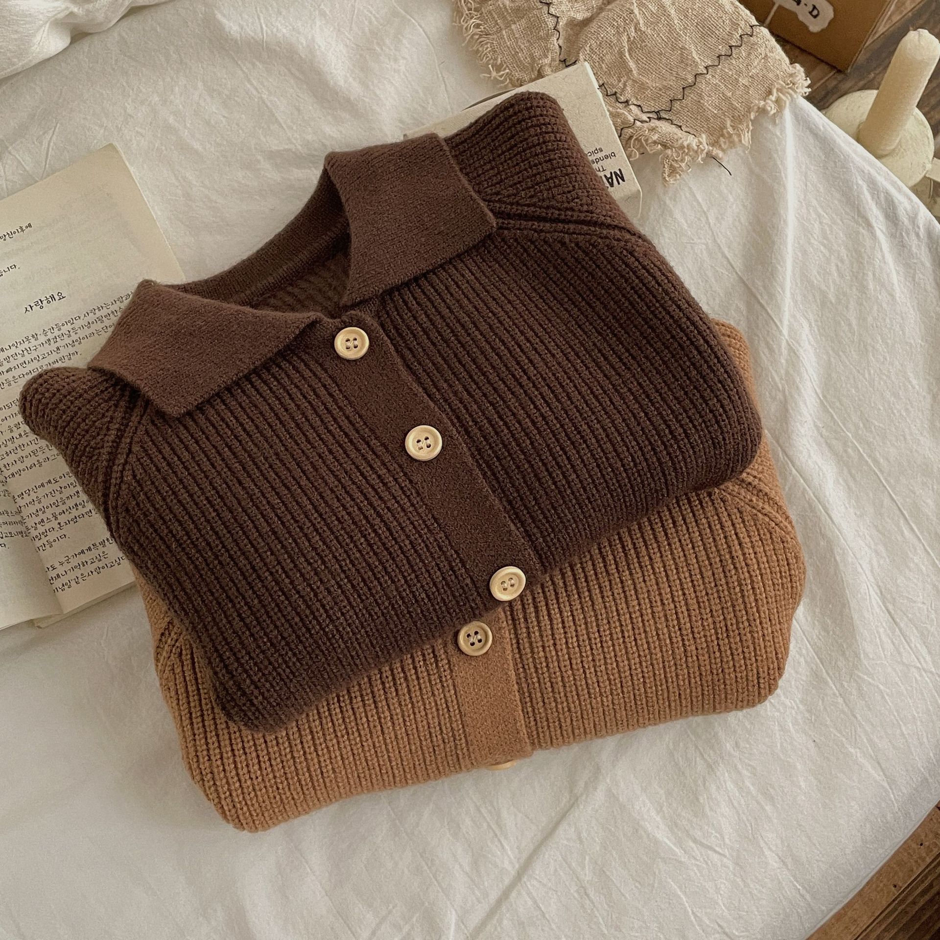 Benshu Shu 가을과 겨울 새로운 소년과 소녀 간단한 카디건 스웨터 작은 스퀘어 넥 디자인 솔리드 컬러 웨스턴 스타일 스웨터 코트