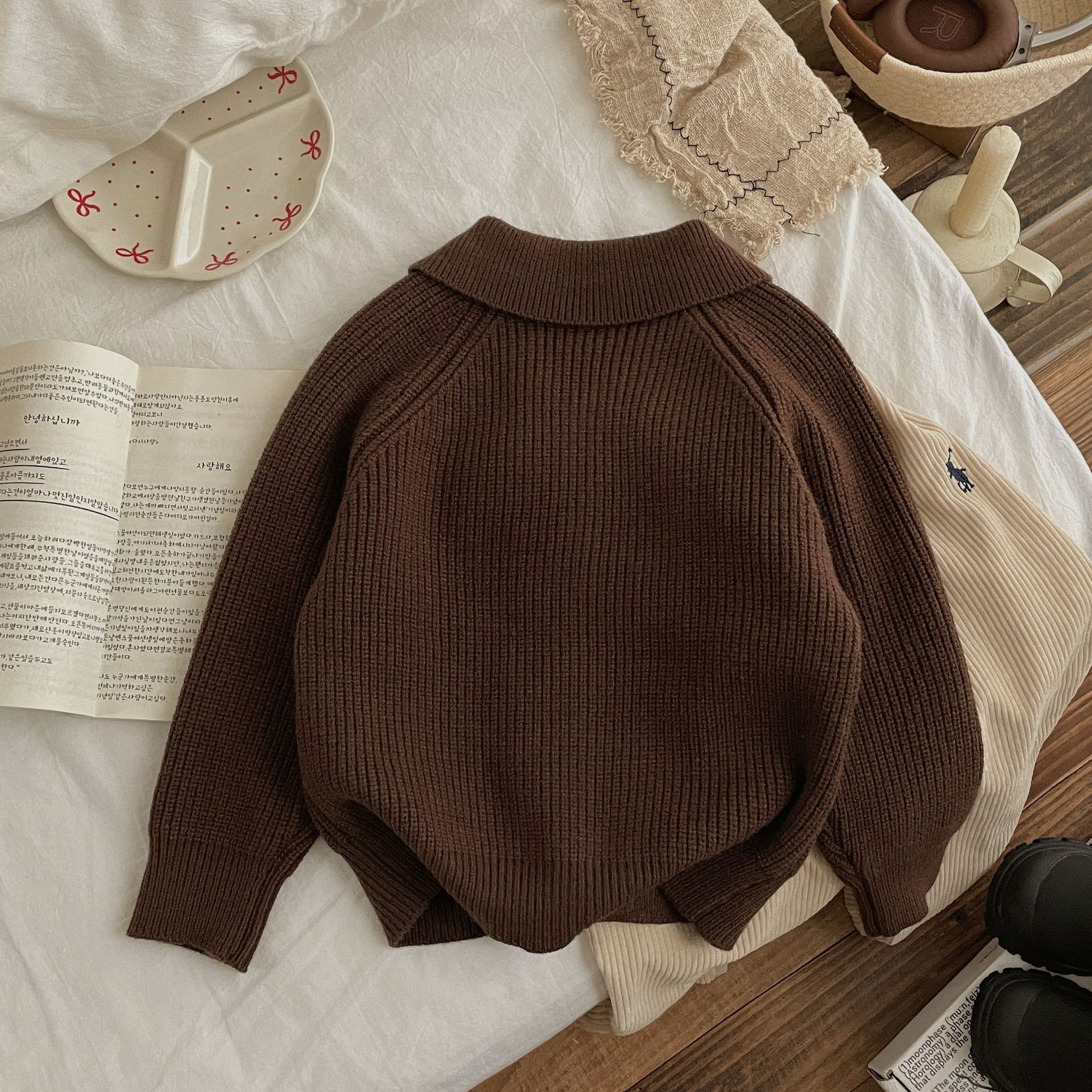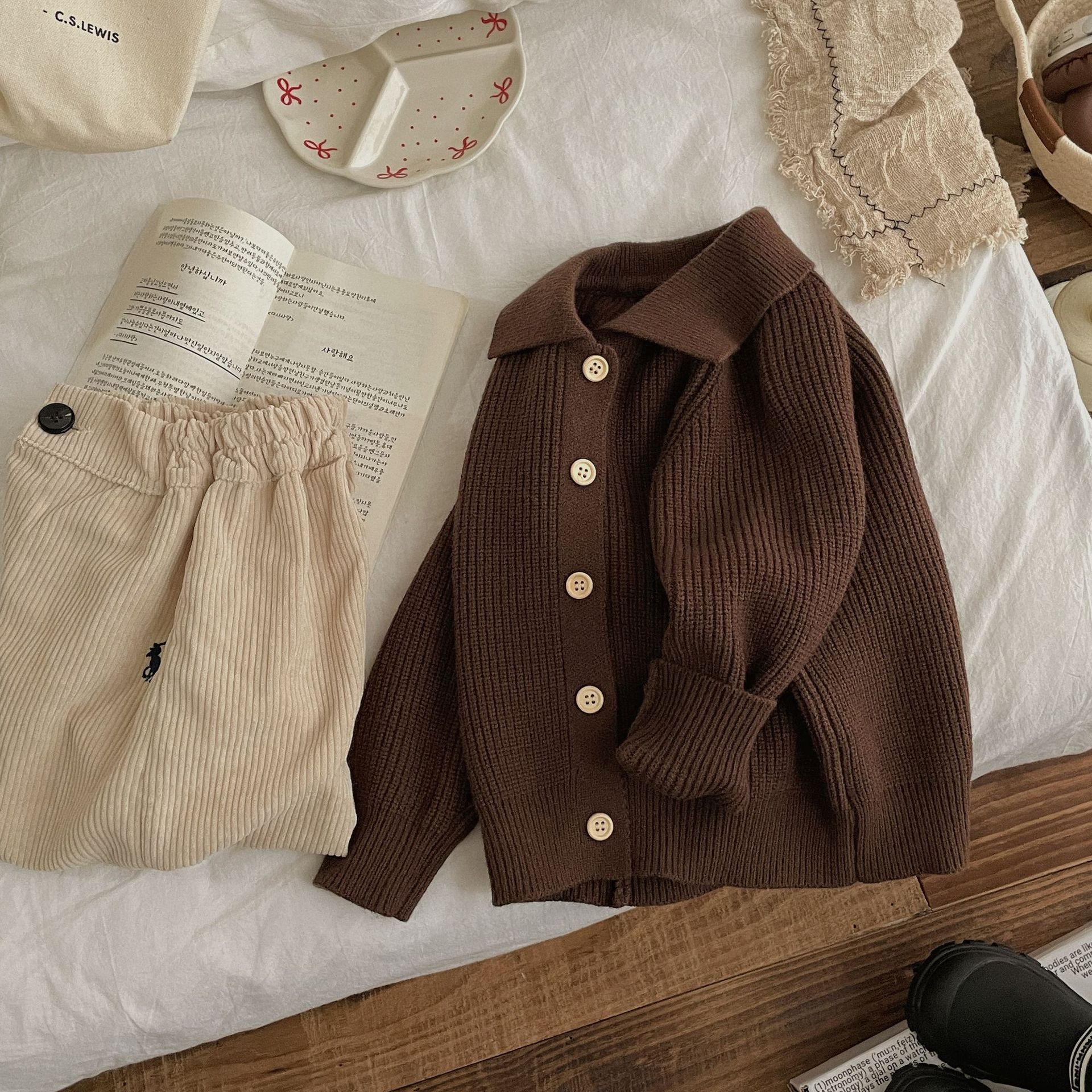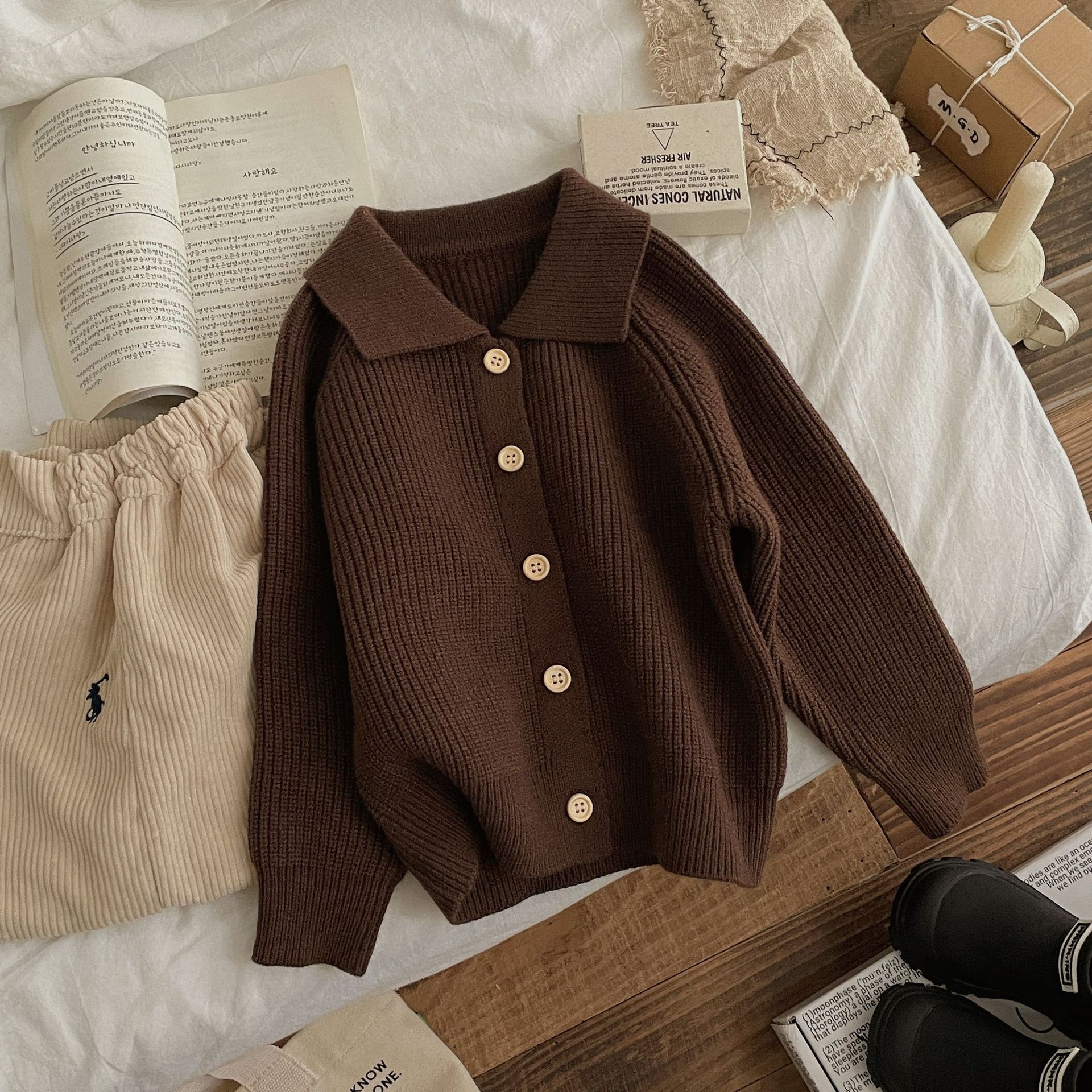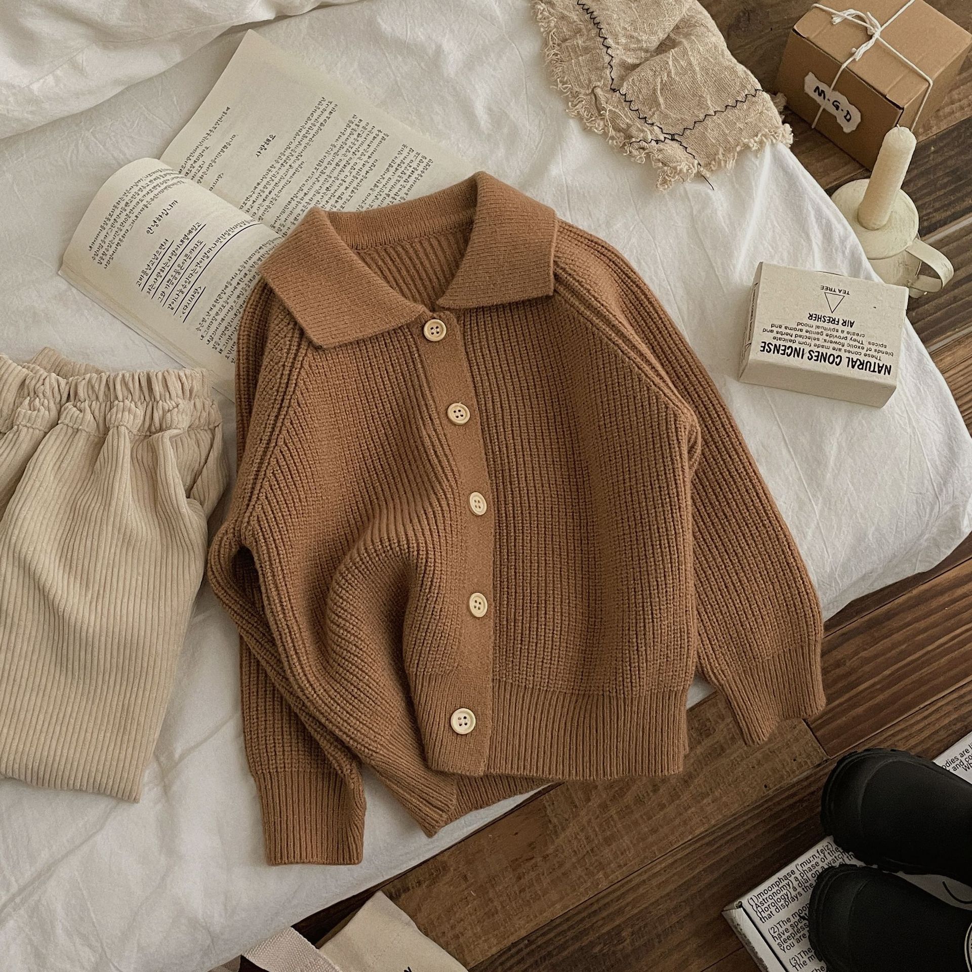 Benshu Shu 가을과 겨울 새로운 소년과 소녀 간단한 카디건 스웨터 작은 스퀘어 넥 디자인 솔리드 컬러 웨스턴 스타일 스웨터 코트