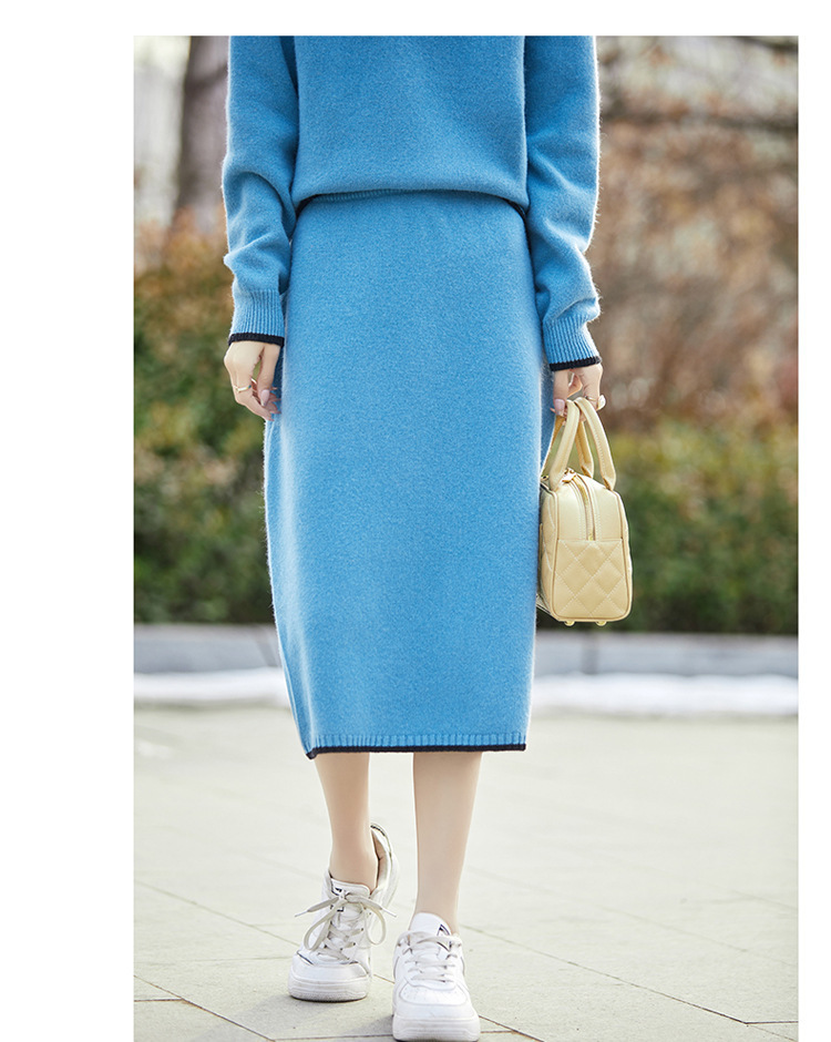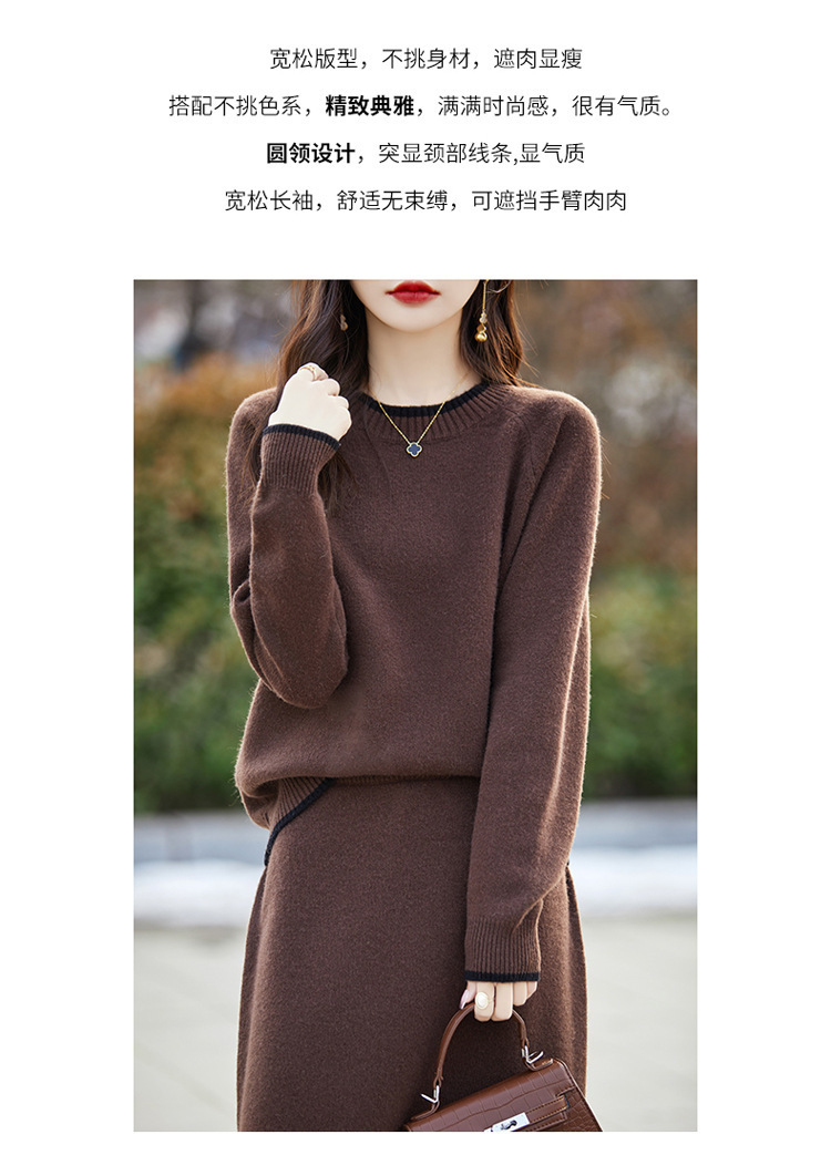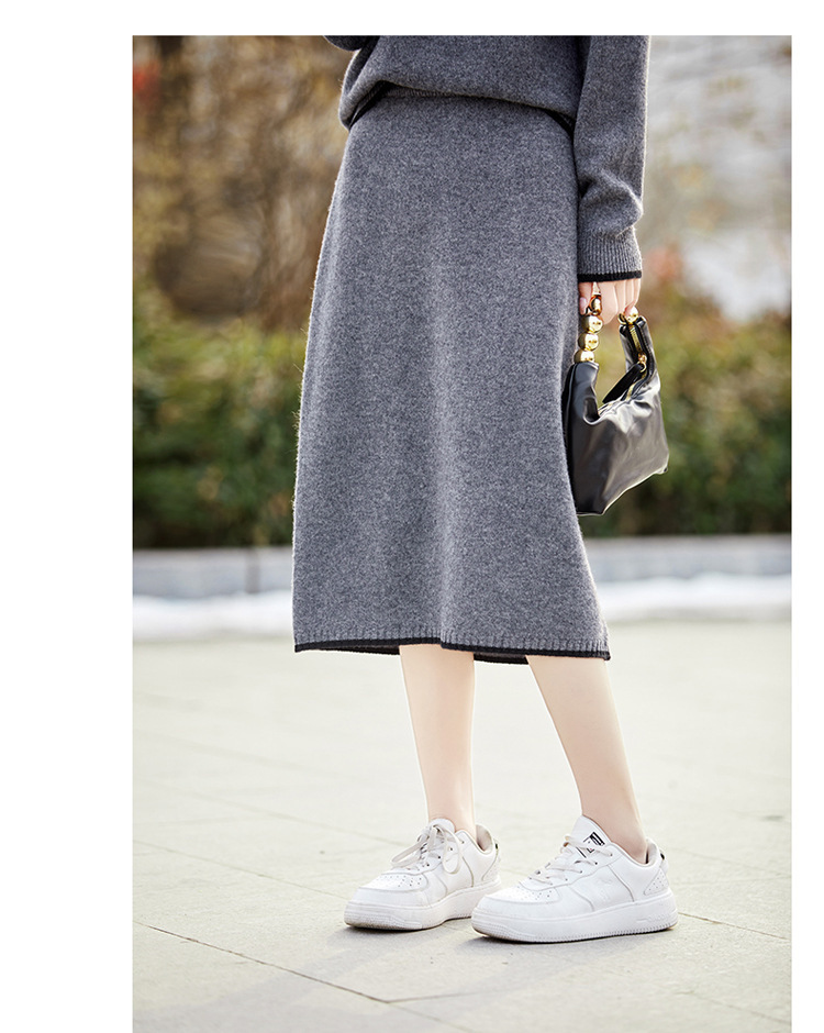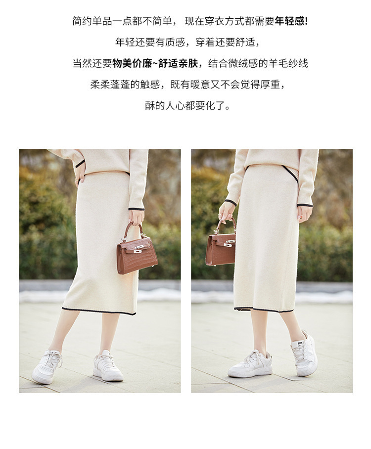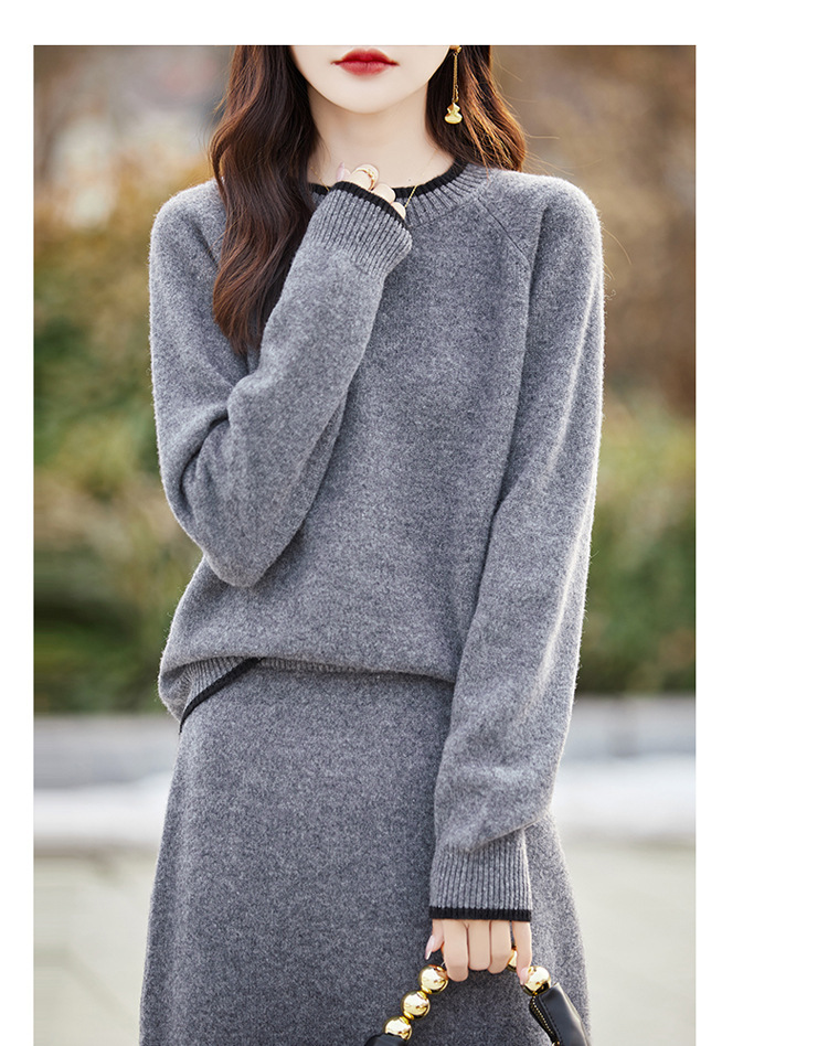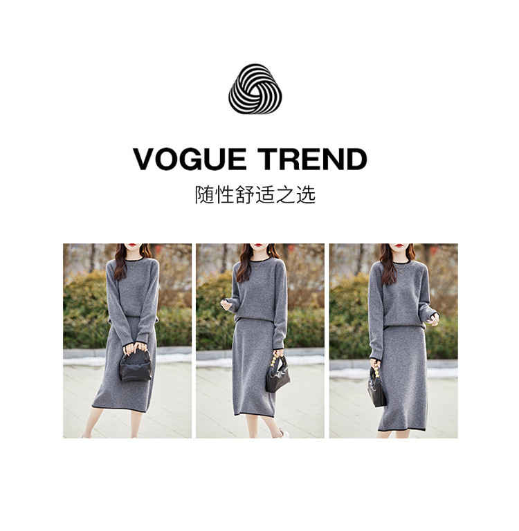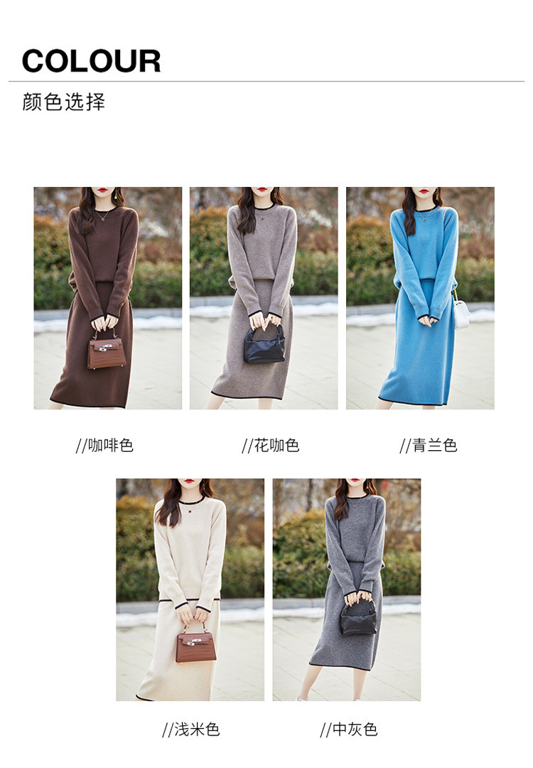 24 가을과 겨울 새로운 라운드 넥 라글란 슬리브 컬러 어울리는 울 원피스 여성 패션 간단한 올 매치 스커트 세트 플러스 사이즈스토어 가기