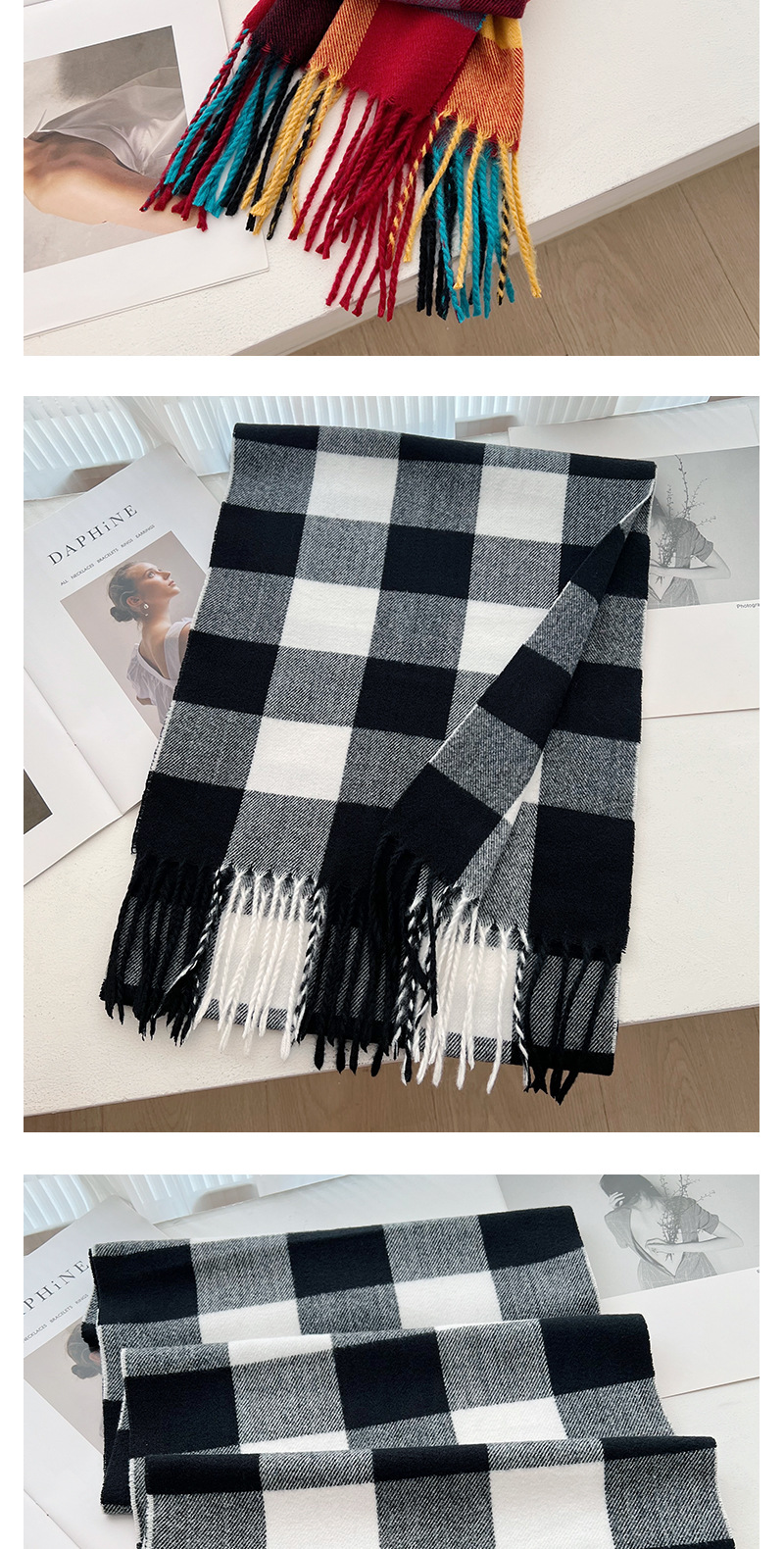한국식 새 커플 레인보우 체크 무늬 스카프 가을과 겨울 모조 캐시미어 컬러 어울리는 따뜻한 목도리 방풍 두꺼운 스카프스토어 가기