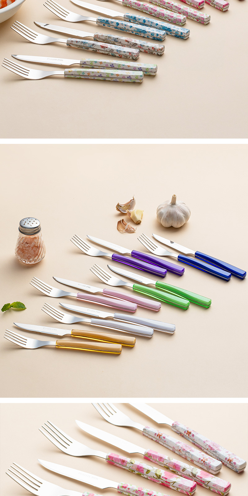 국경 간 핫셀러 스테인레스 스틸 스테이크 나이프와 포크 12 피스 세트 어린이 서양식 나이프와 포크 6 인용 식기 조합