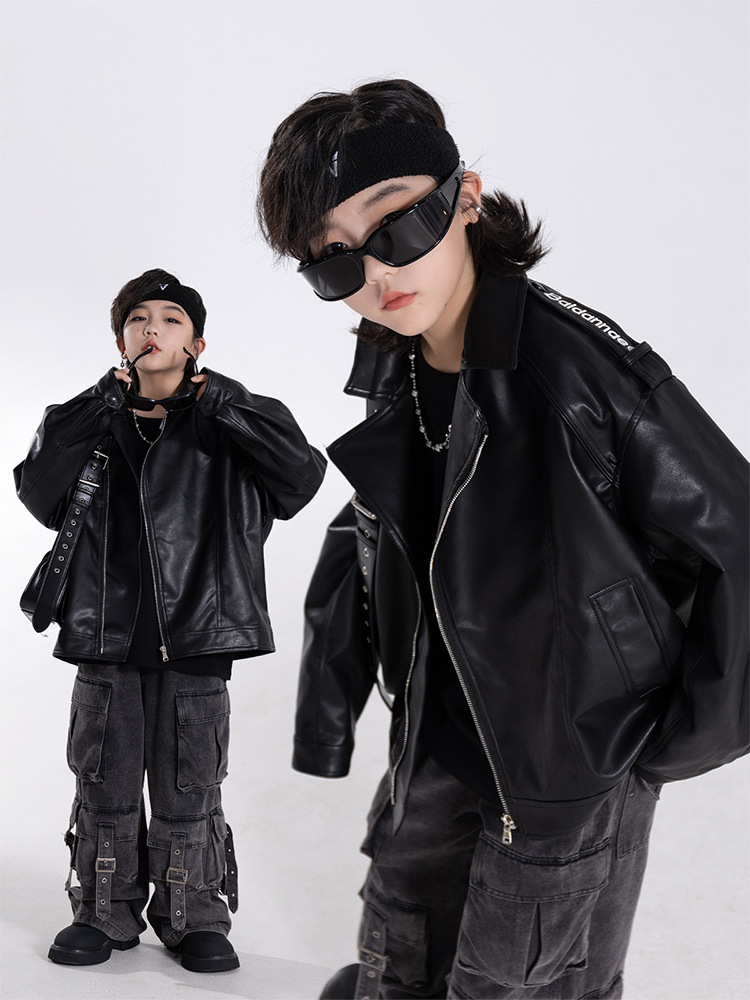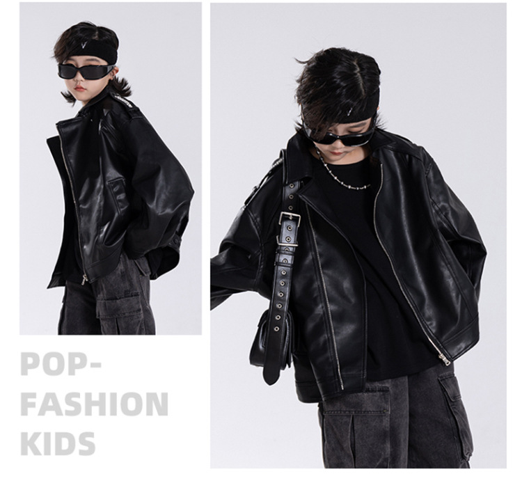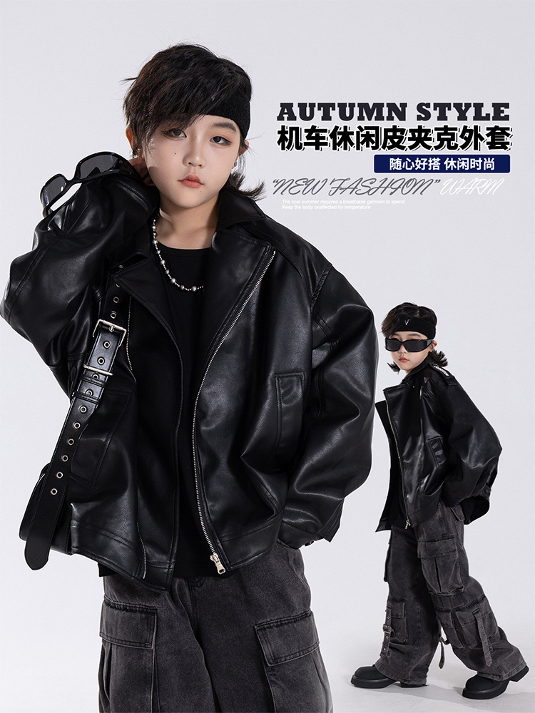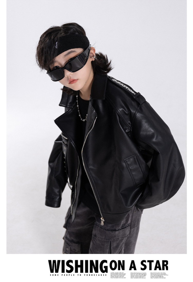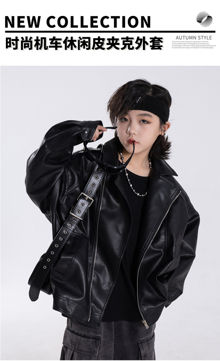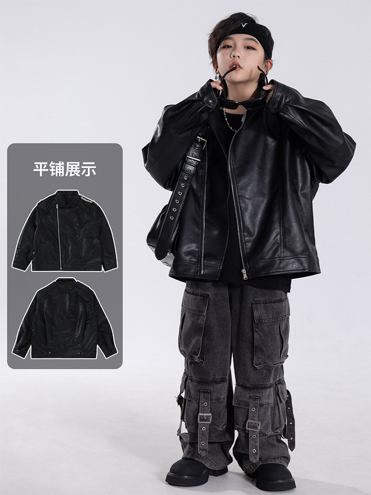한국판 아동용 2026 가죽 자켓, 가을 신상 남아용 트렌디 바이커 가죽 자켓, 레트로 스타일, 해외 도매스토어 가기