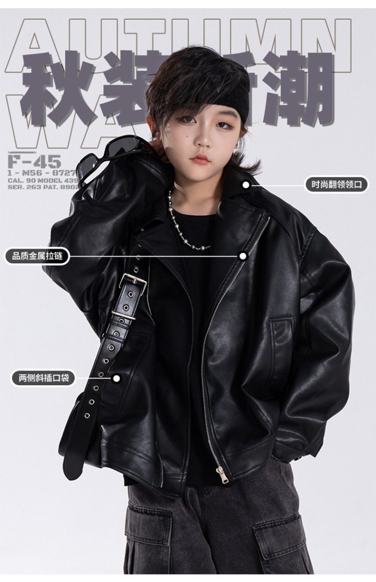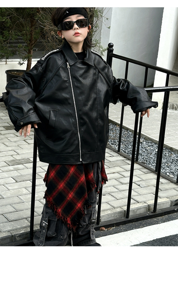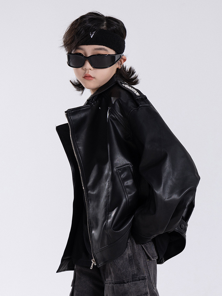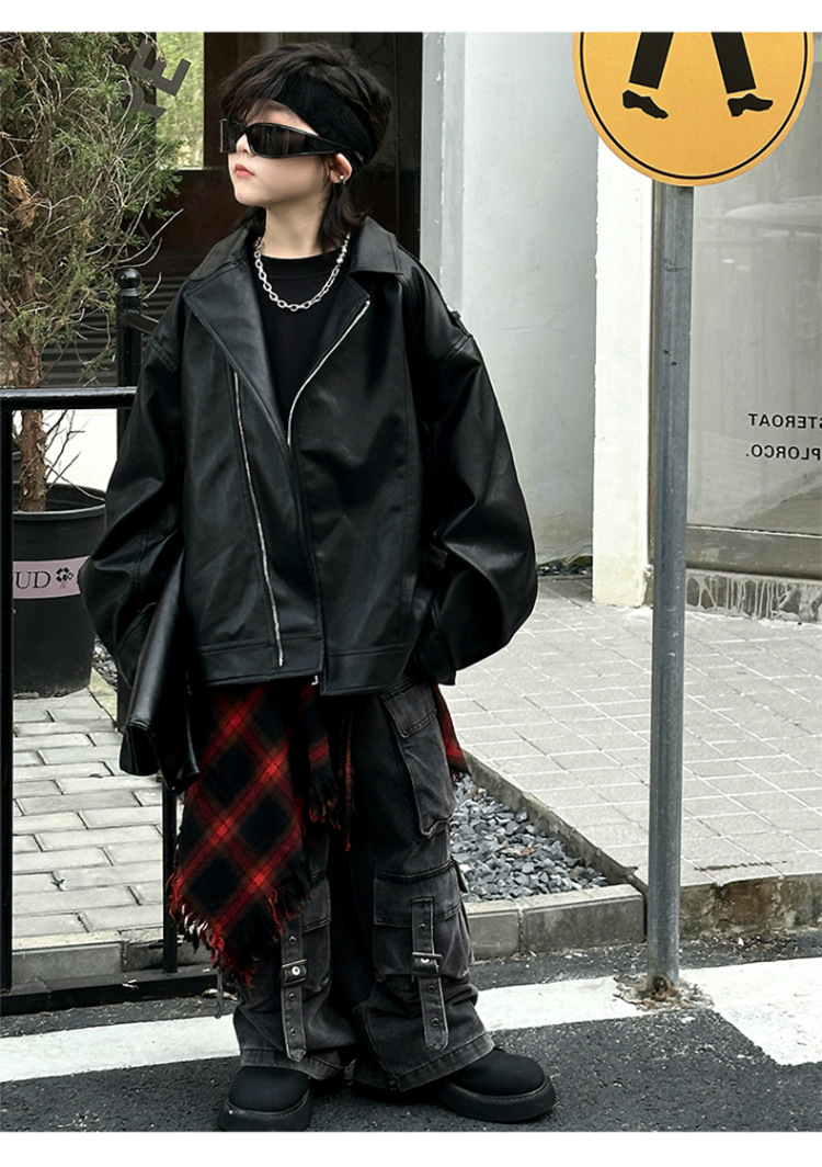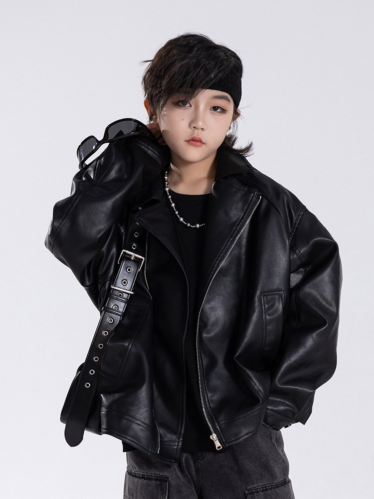 한국판 아동용 2026 가죽 자켓, 가을 신상 남아용 트렌디 바이커 가죽 자켓, 레트로 스타일, 해외 도매스토어 가기