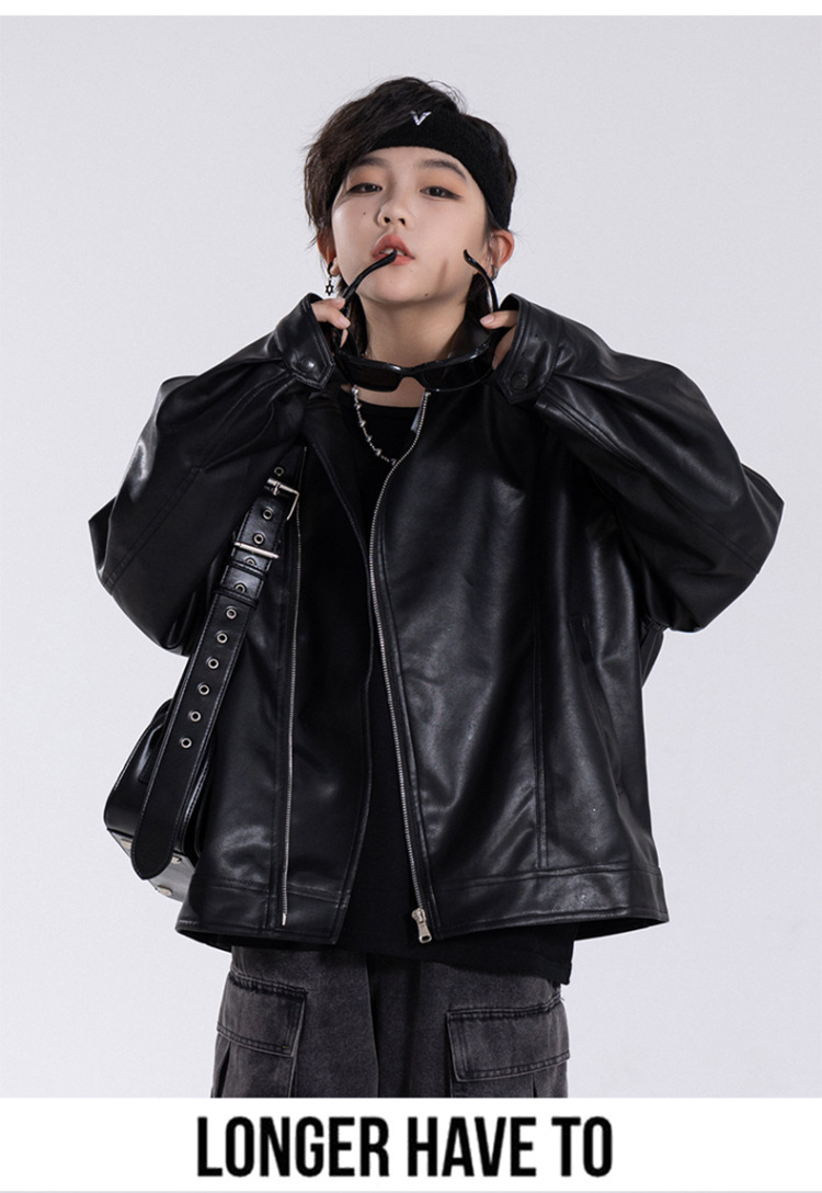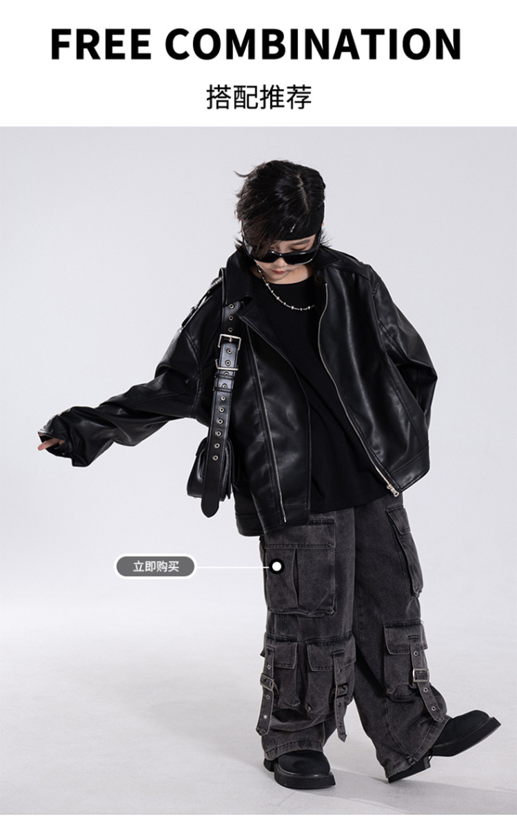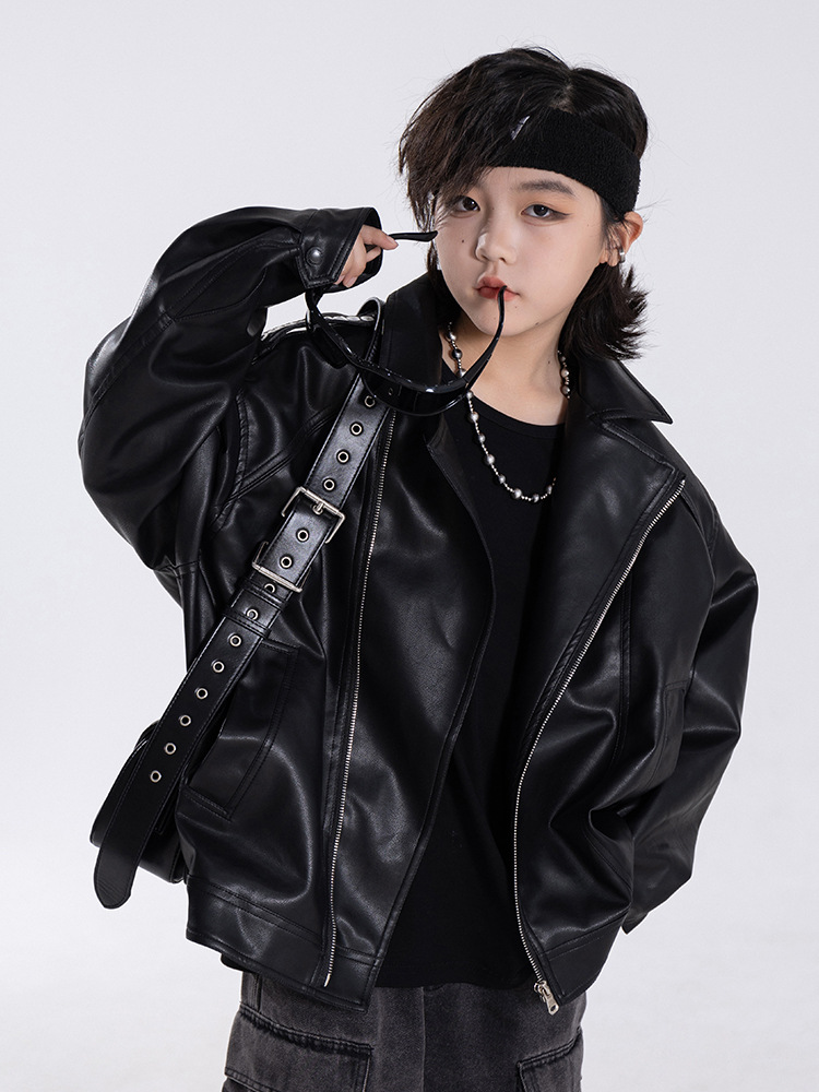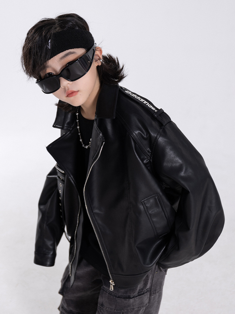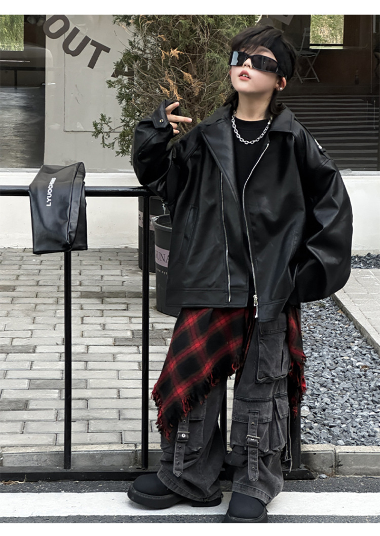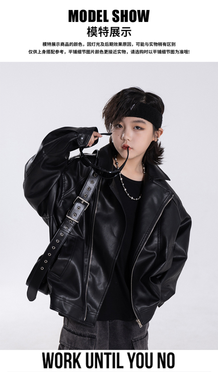 한국판 아동용 2026 가죽 자켓, 가을 신상 남아용 트렌디 바이커 가죽 자켓, 레트로 스타일, 해외 도매스토어 가기