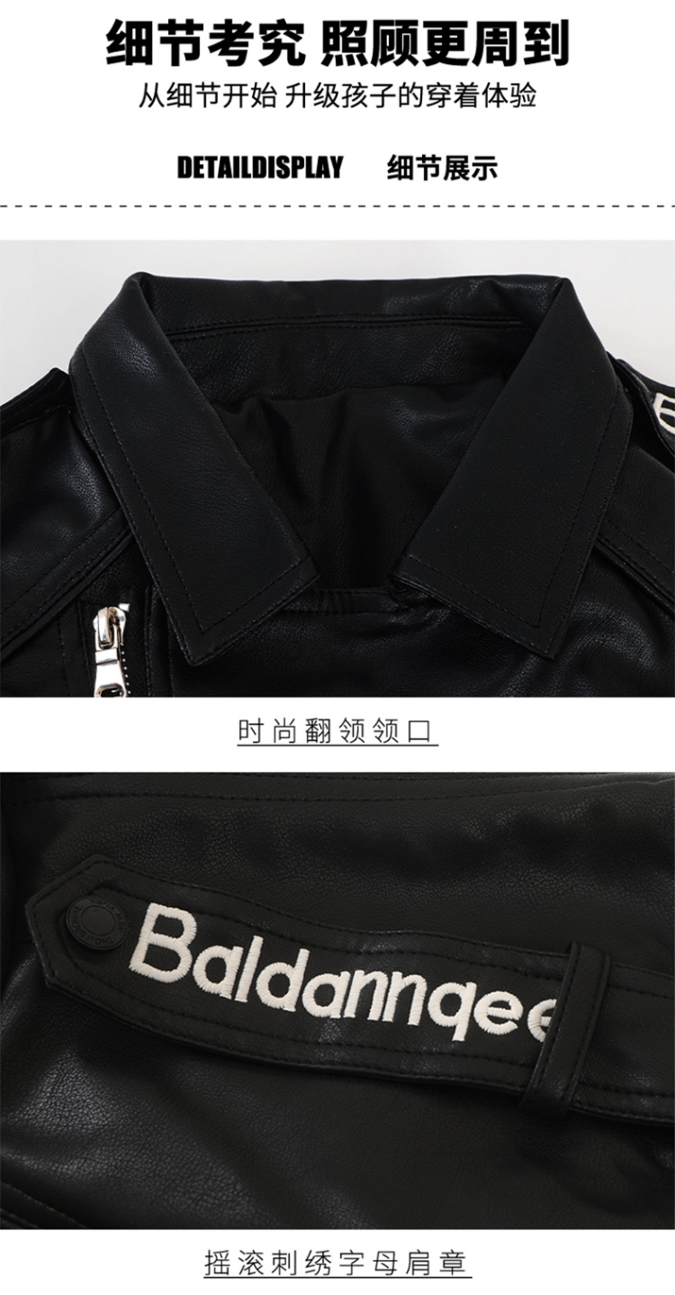한국판 아동용 2026 가죽 자켓, 가을 신상 남아용 트렌디 바이커 가죽 자켓, 레트로 스타일, 해외 도매