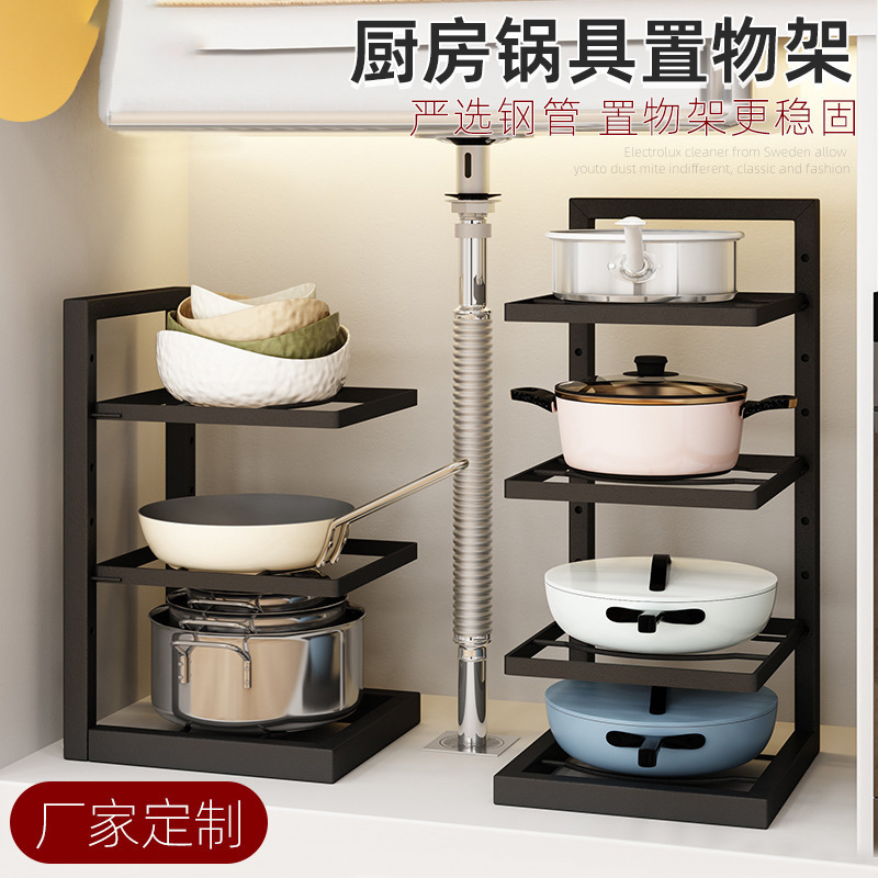 카운터 탑 냄비 잡화 저장 랙 다층 저장 랙 높이 조절 가능한 저장 냄비 랙 주방 바닥 형 조리대스토어 가기