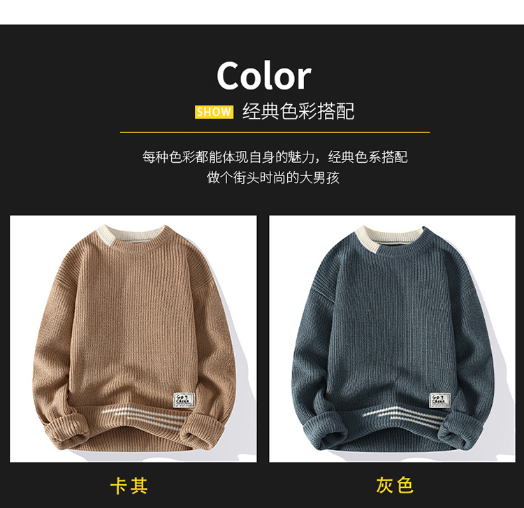 2024 가을과 겨울 새로운 스웨터 소년 한국 트렌드 스웨터 기본 셔츠 캐주얼 라운드 넥 스웨터 남성 도매