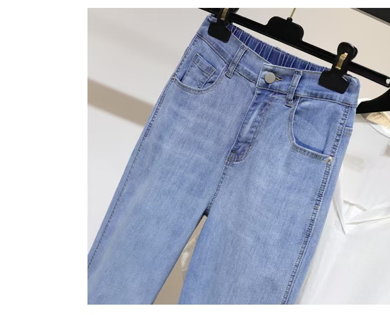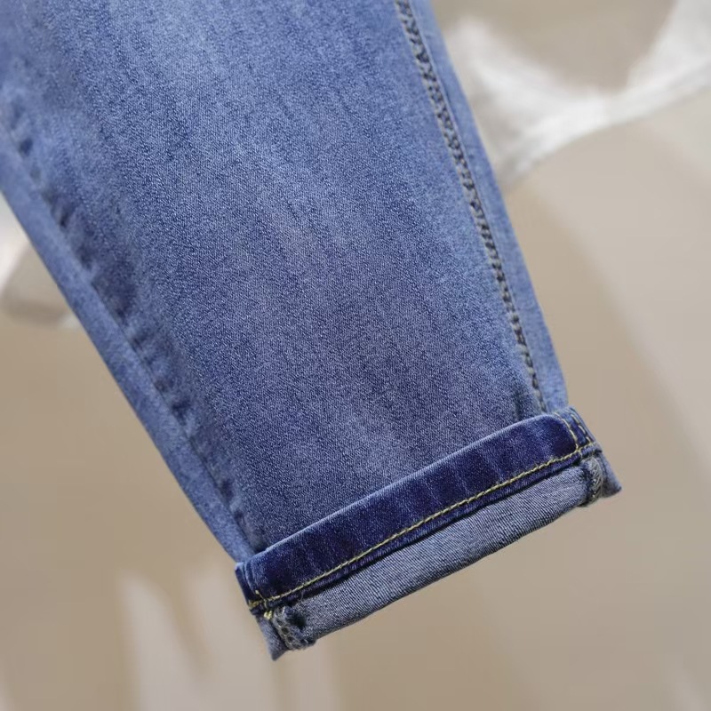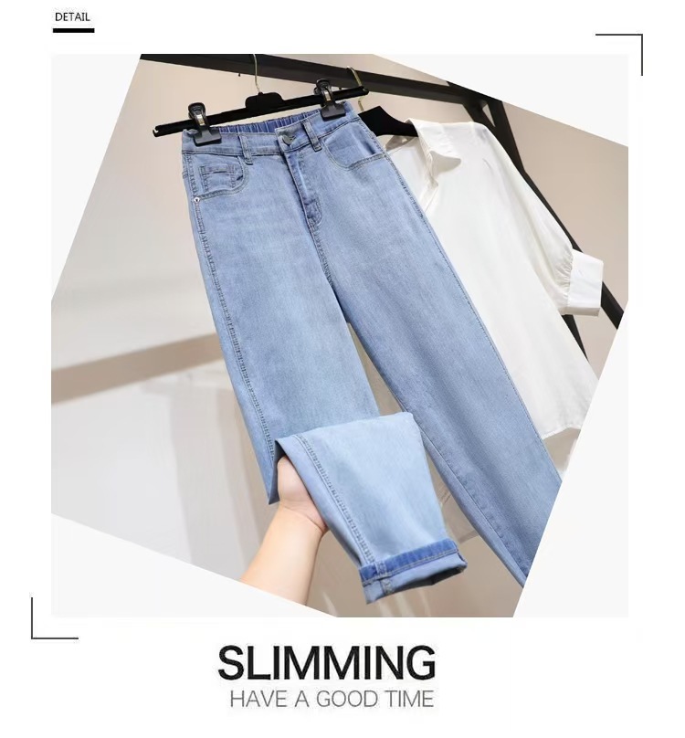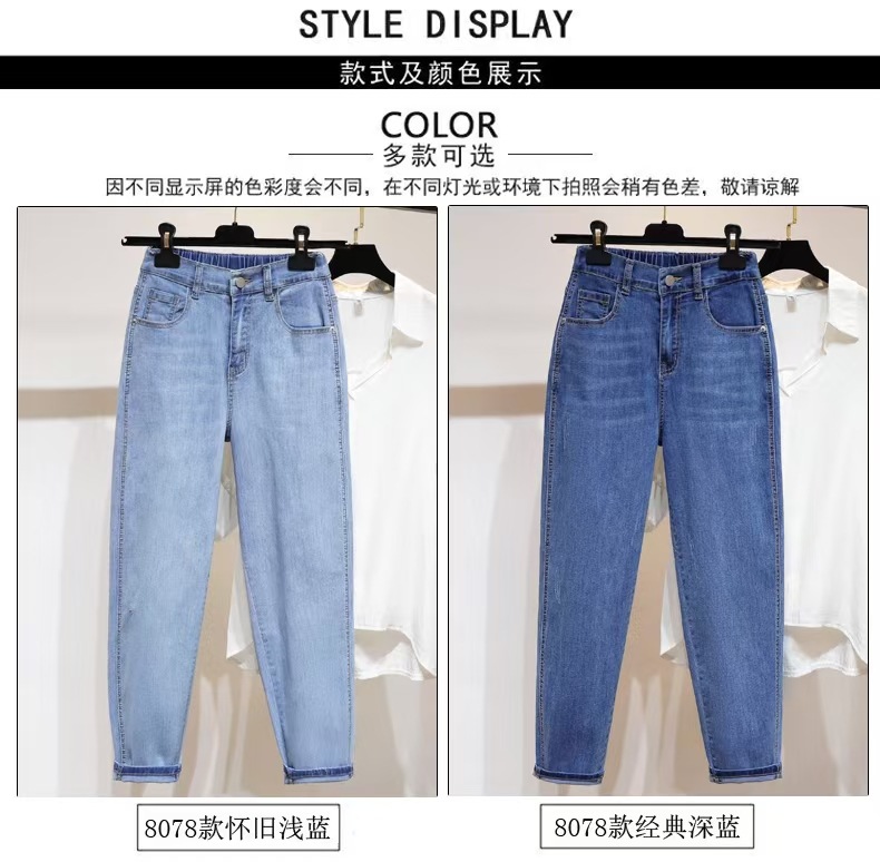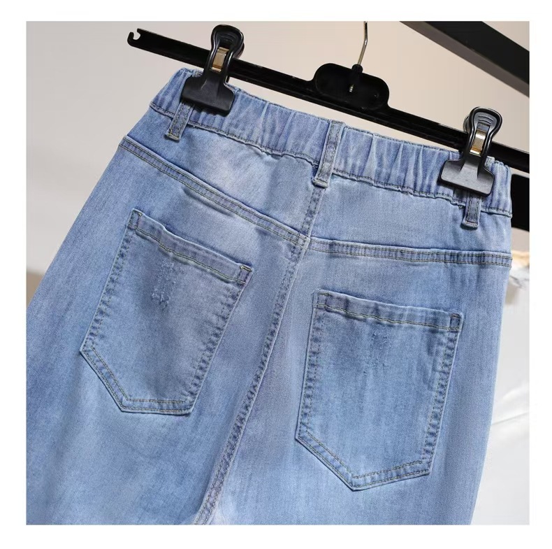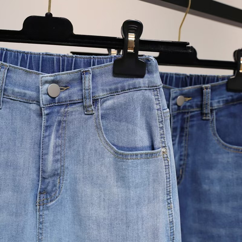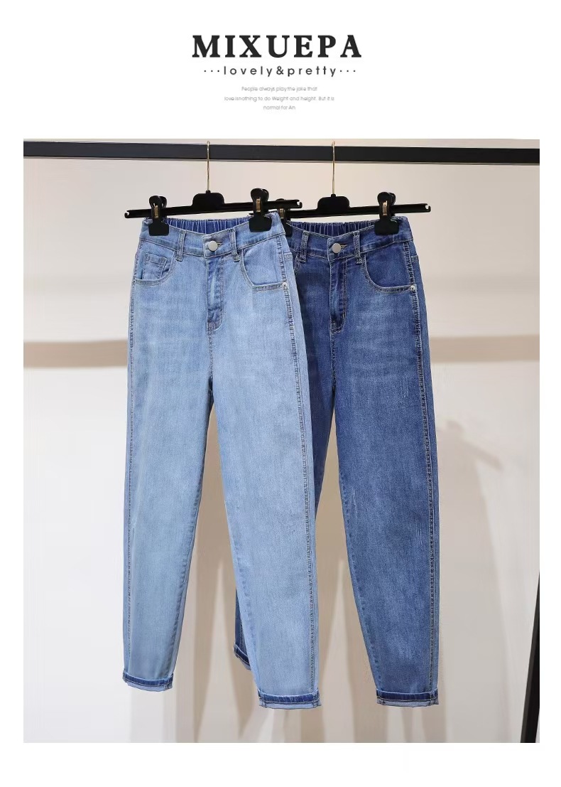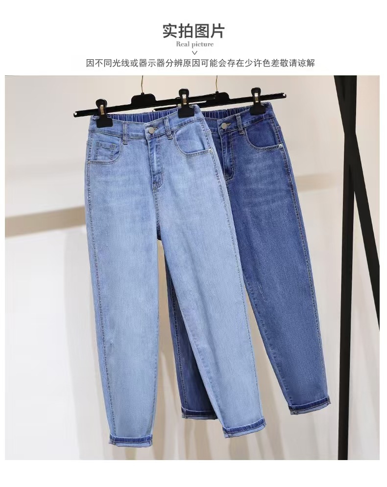 여성용 작은 발 여름 청바지 얇은 탄성 높은 허리 바지 지방 mm 100kg 배 모양의 바디 하렘 바지스토어 가기