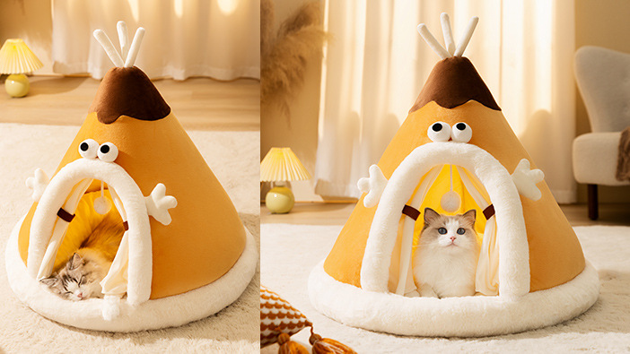 가을과 겨울 고양이 따뜻한 두꺼운 텐트 고양이 둥지 작은 개 귀여운 삼각형 사육장 몽골 애완 동물 둥지스토어 가기