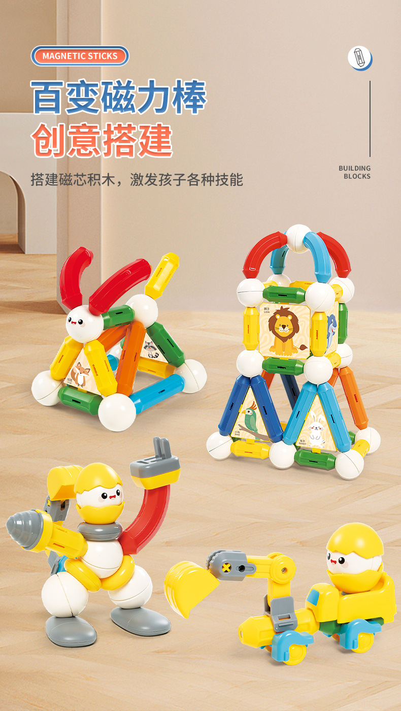 아마존 새로운 어린이 버라이어티 마그네틱 스틱 교육 마그네틱 빌딩 블록 DIY 조립 엔지니어링 차량 인형 조립 장난감스토어 가기