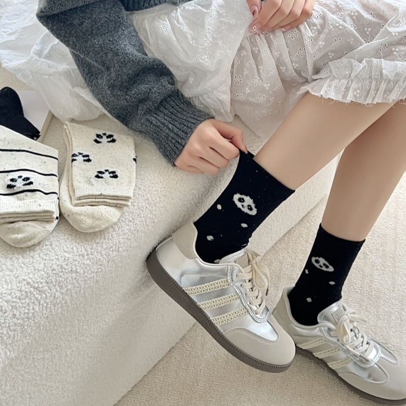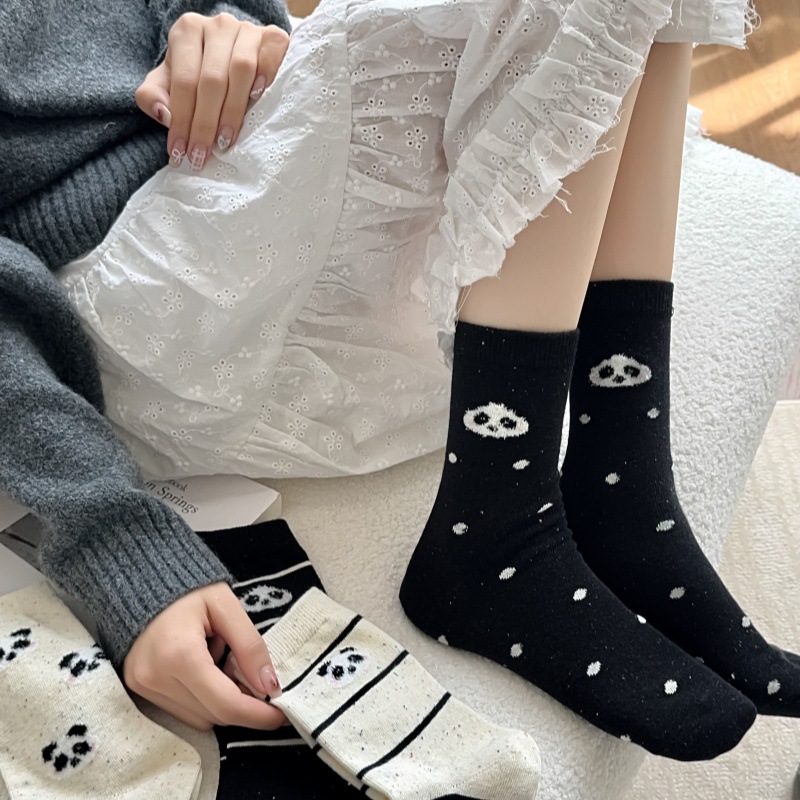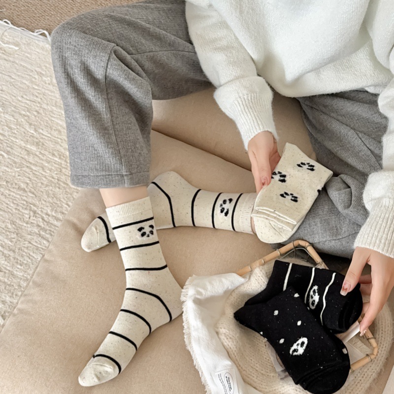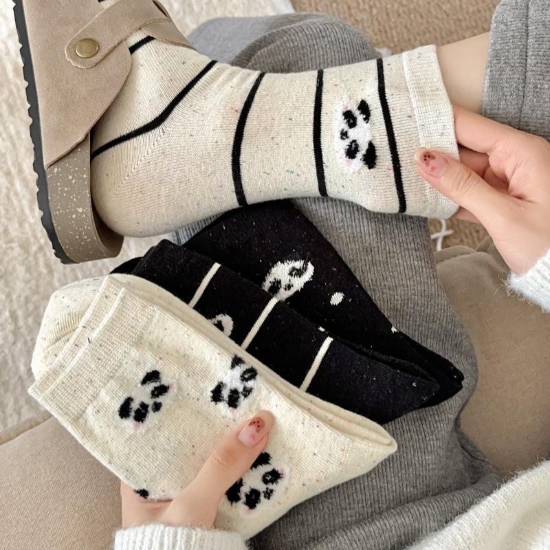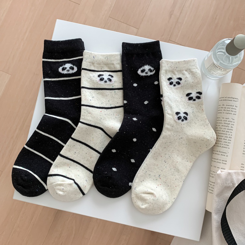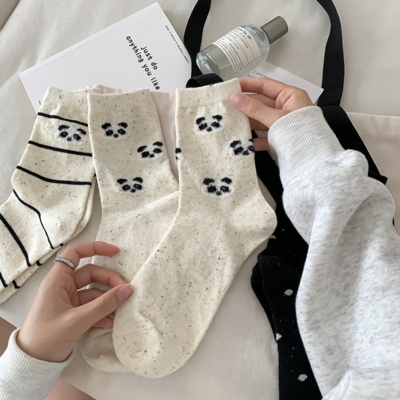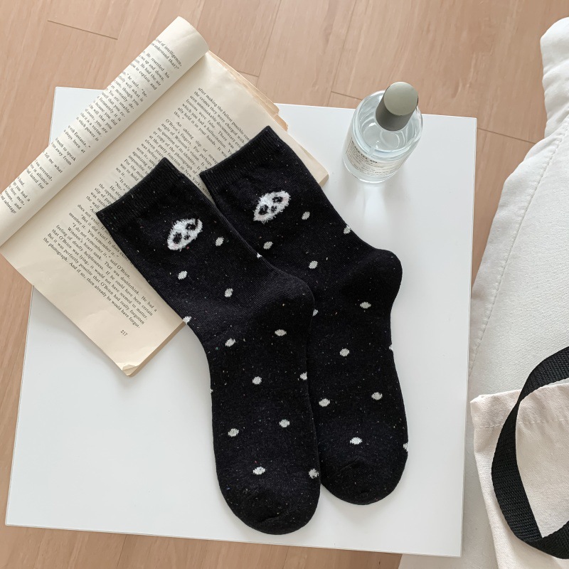 만화 귀여운 포인트 원사 팬더 양말 여성 튜브 양말-인 조수 빗질 면화 봄과 가을 일본 줄무늬 더미 양말