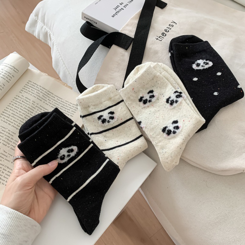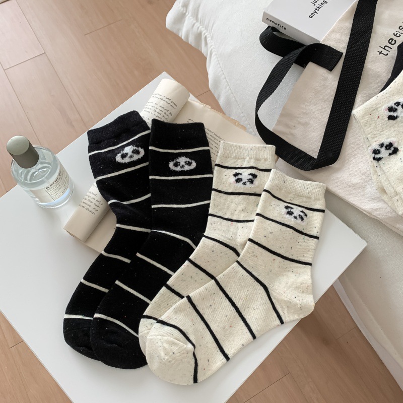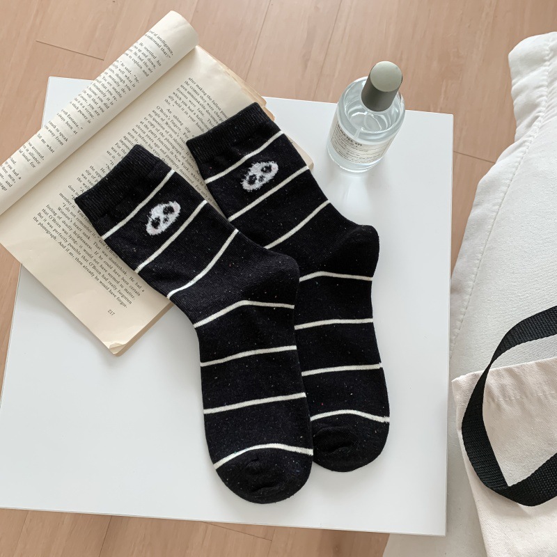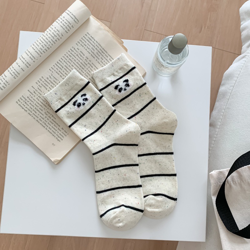 만화 귀여운 포인트 원사 팬더 양말 여성 튜브 양말-인 조수 빗질 면화 봄과 가을 일본 줄무늬 더미 양말스토어 가기