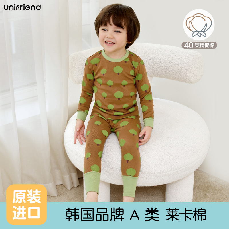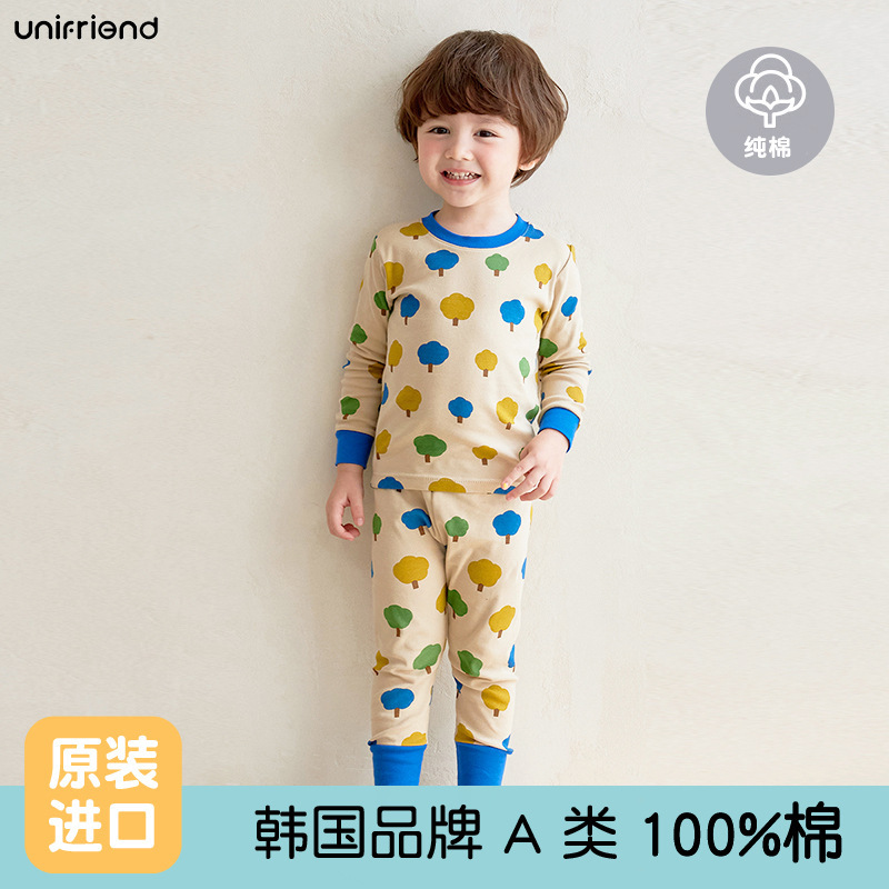 가을과 겨울 2024 새로운 어린이 가을 옷과 바지 면화 클래스 아기 속옷 세트 소년 소녀 홈 의류 세트스토어 가기