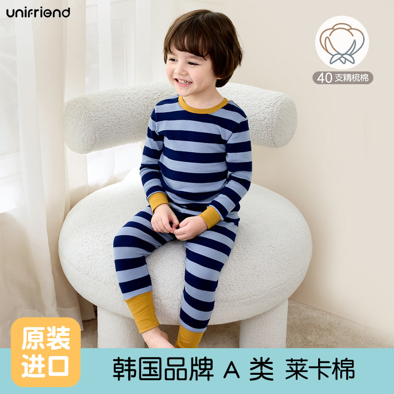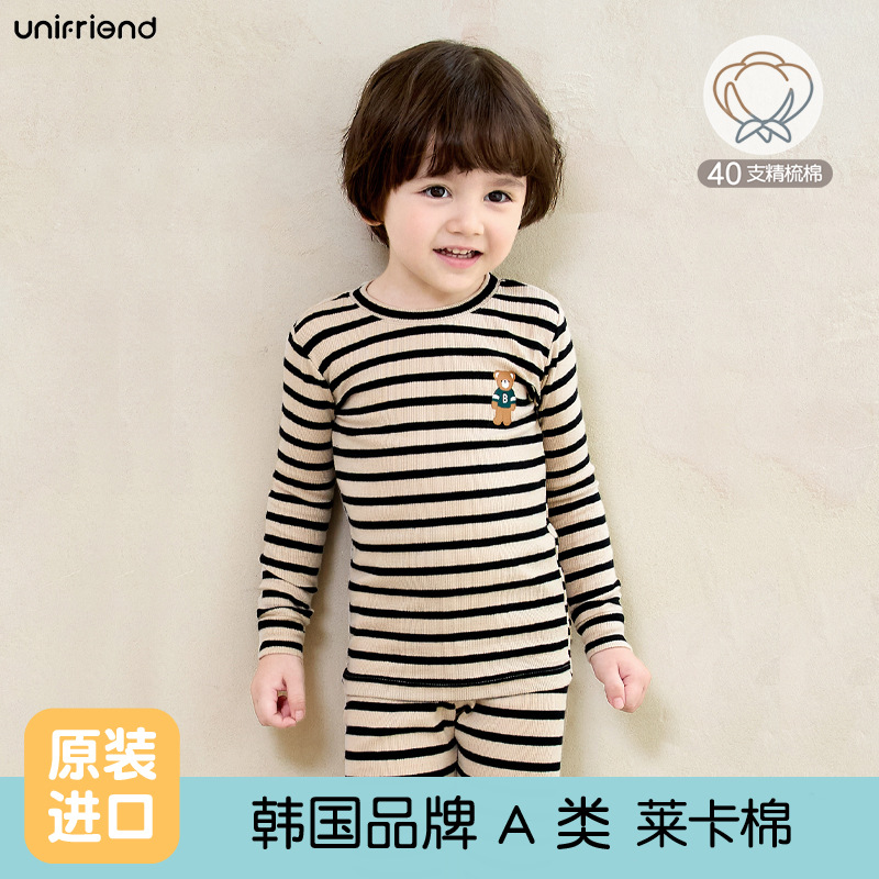가을과 겨울 2024 새로운 어린이 가을 옷과 바지 면화 클래스 아기 속옷 세트 소년 소녀 홈 의류 세트