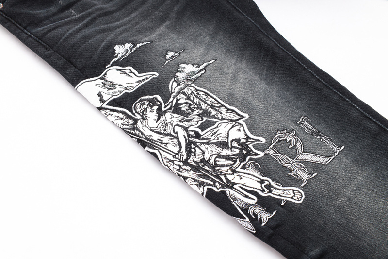 유럽과 미국의 스트리트 패셔너블 남성용 청바지 올드 블랙 그레이 패셔너블 힙합 타이트 스트레치 레깅스 남성용 패션