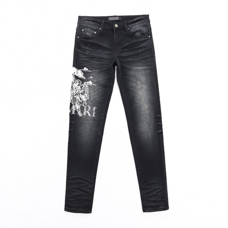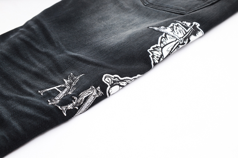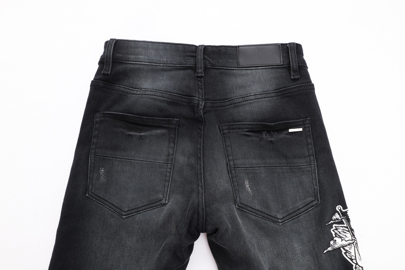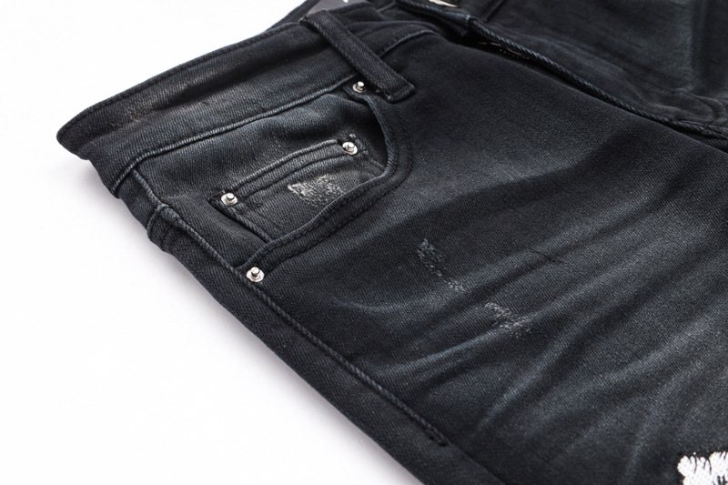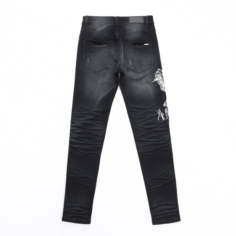 유럽과 미국의 스트리트 패셔너블 남성용 청바지 올드 블랙 그레이 패셔너블 힙합 타이트 스트레치 레깅스 남성용 패션스토어 가기