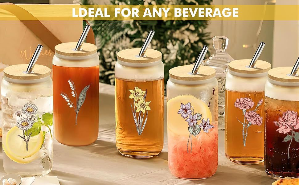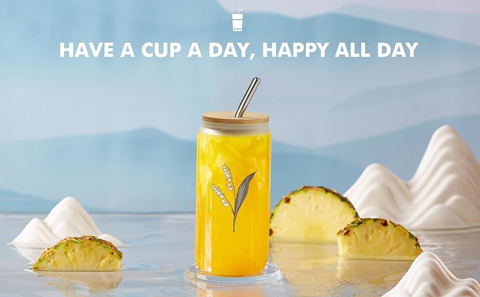 국경 서리가 내린 발렌타인 데이 인쇄 유리 콜라 컵 커피 컵 차가운 음료 컵 우유 차 컵 대나무와 나무 뚜껑 컵 물병
