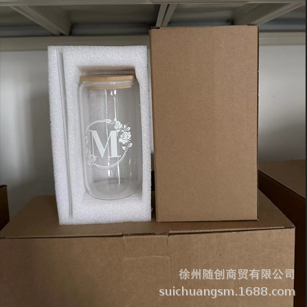 국경 서리가 내린 발렌타인 데이 인쇄 유리 콜라 컵 커피 컵 차가운 음료 컵 우유 차 컵 대나무와 나무 뚜껑 컵 물병스토어 가기