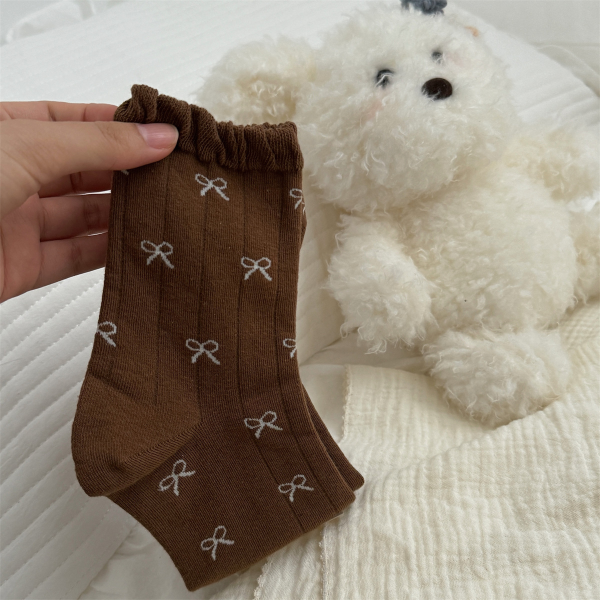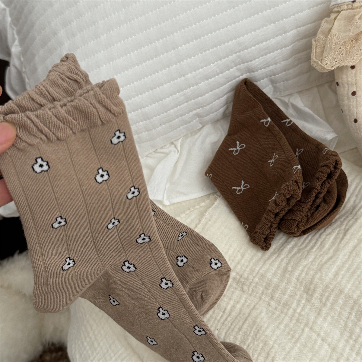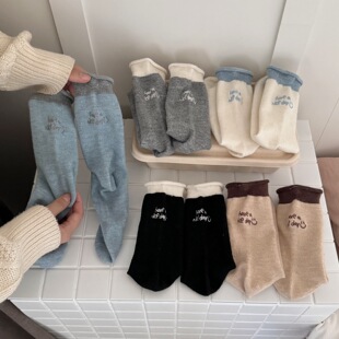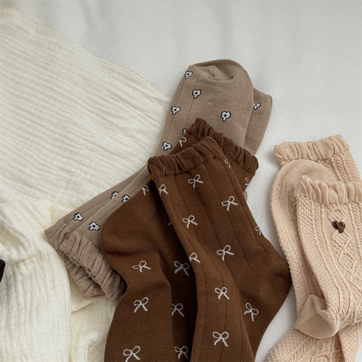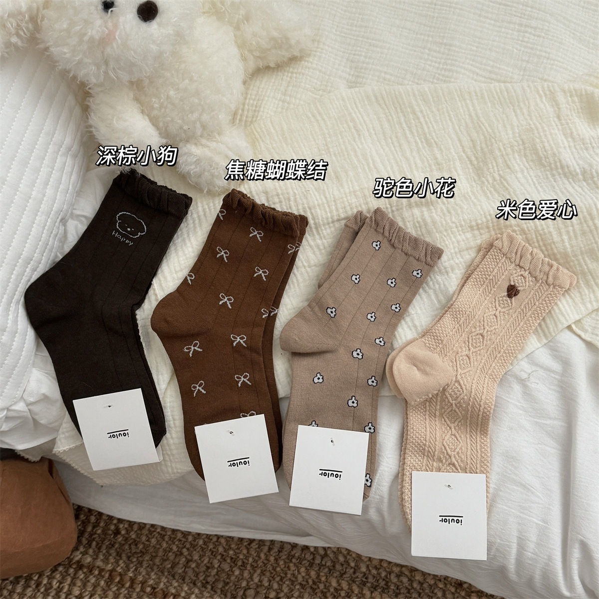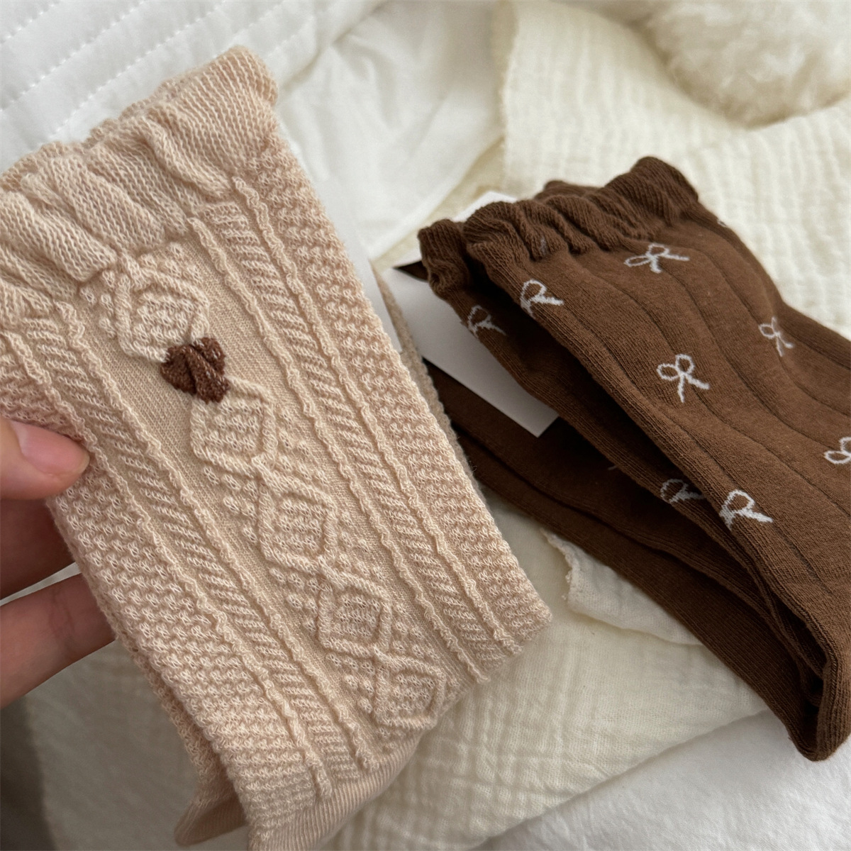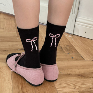 IOULOR 가을과 겨울 빈티지 코튼 양말 일본 소녀 Maillard 컬러 양말 활 거품 입 튜브 양말
