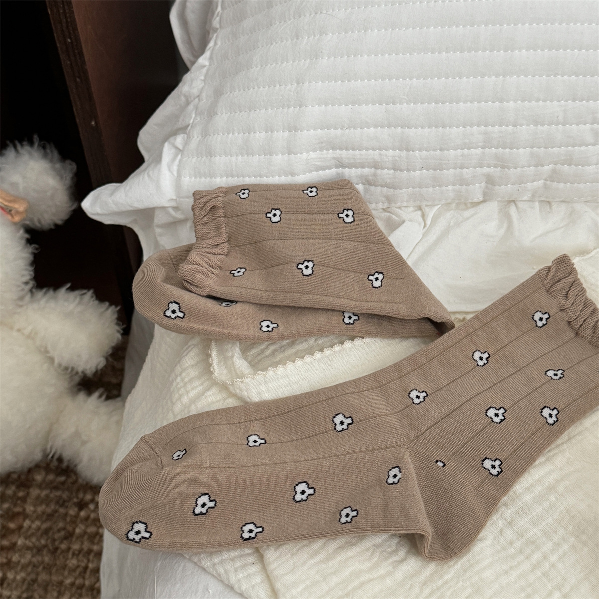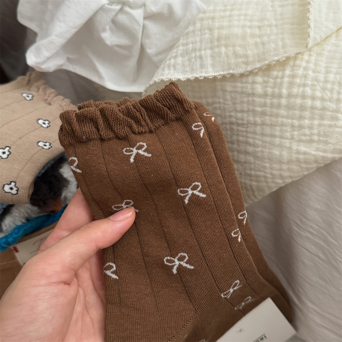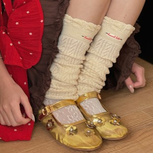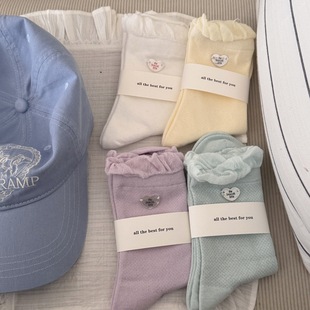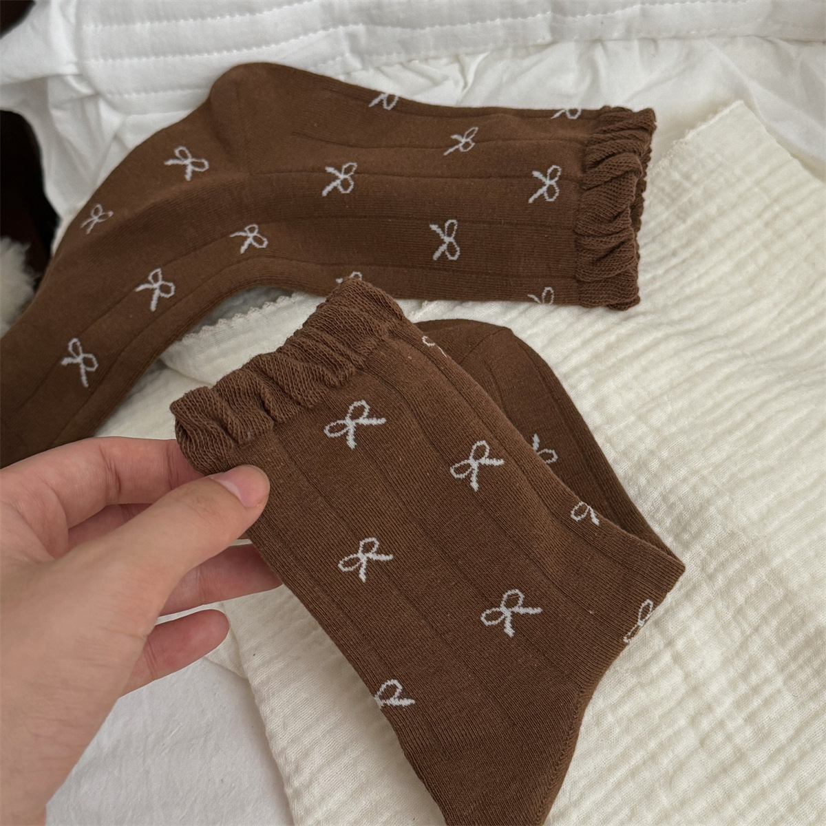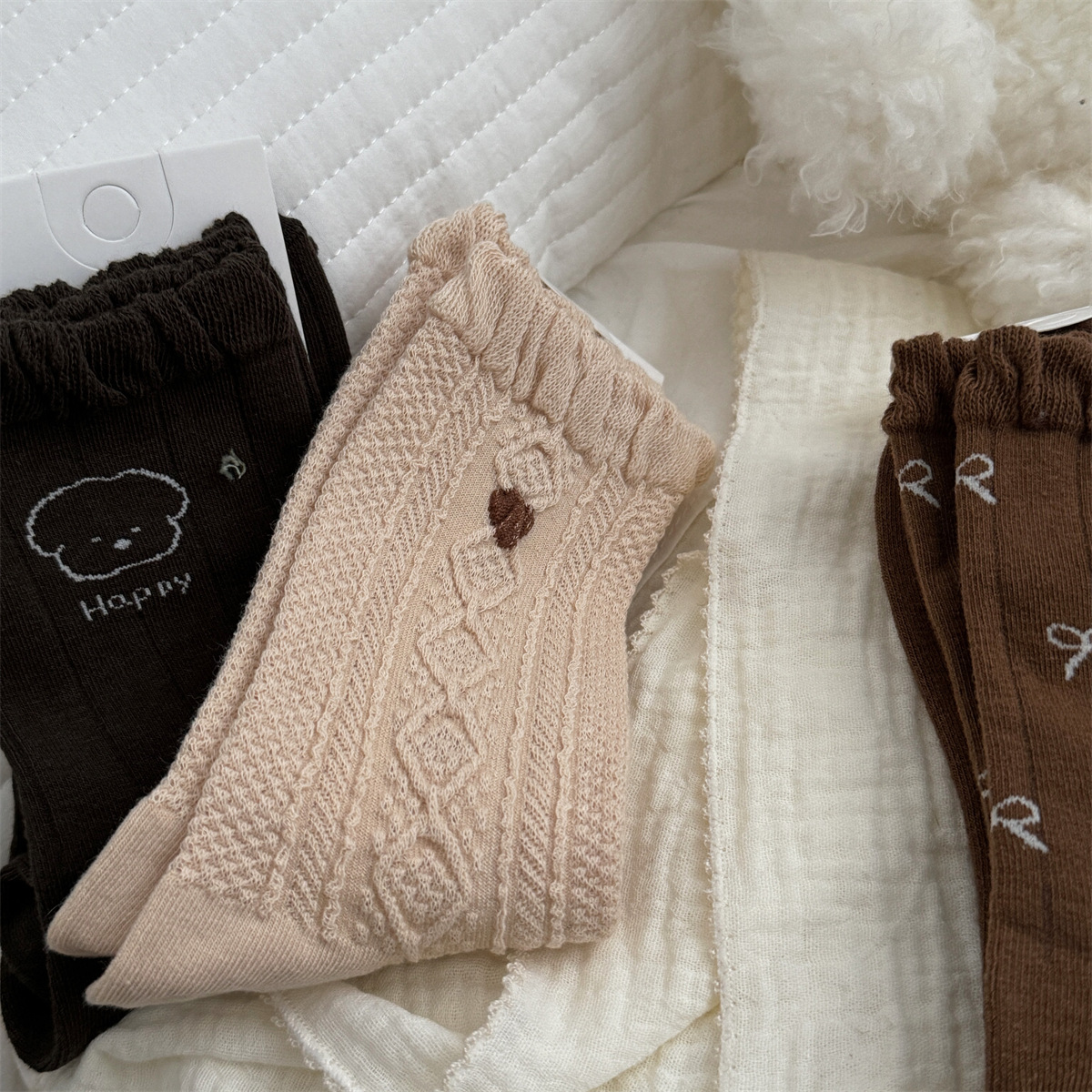 IOULOR 가을과 겨울 빈티지 코튼 양말 일본 소녀 Maillard 컬러 양말 활 거품 입 튜브 양말