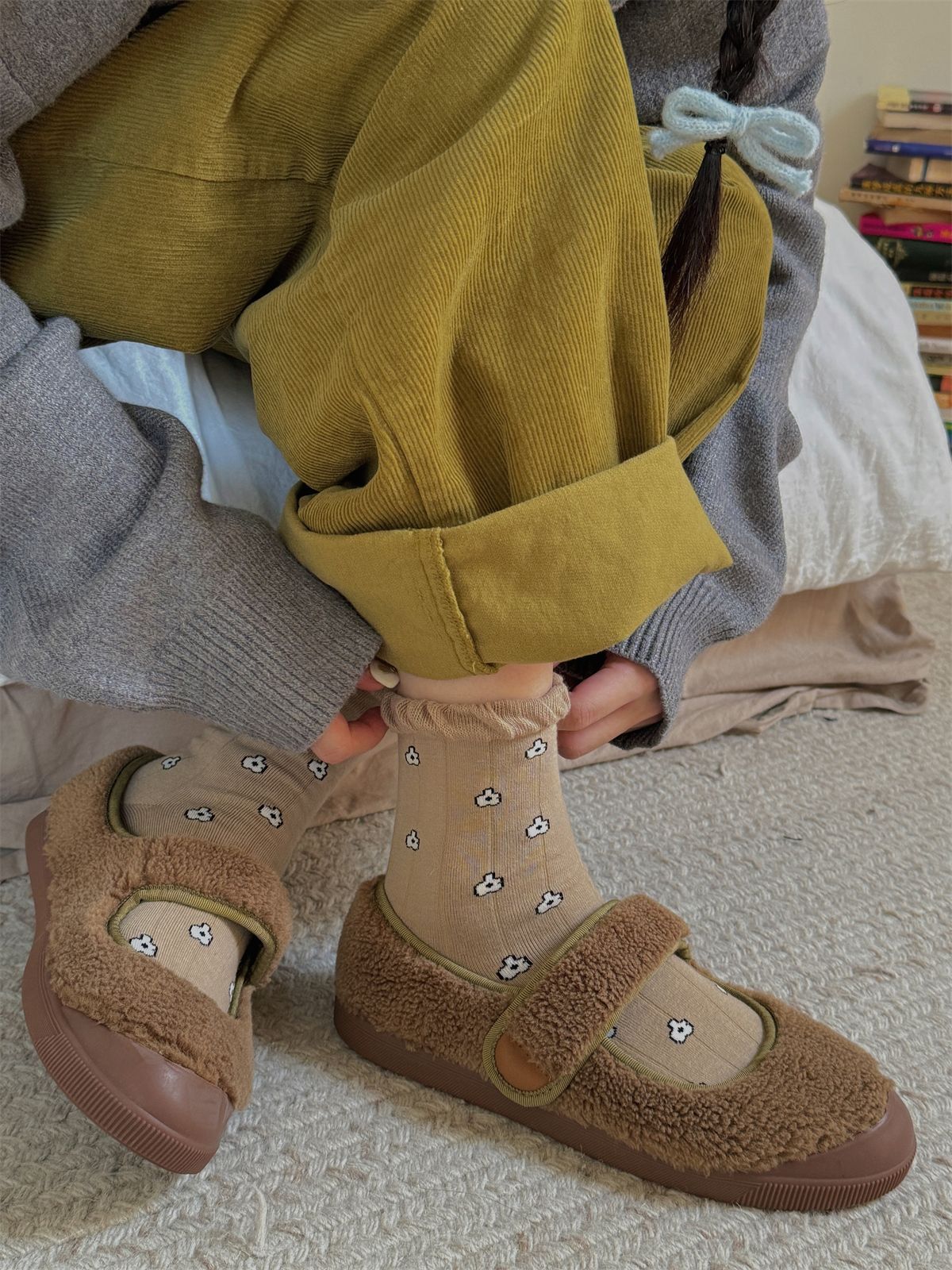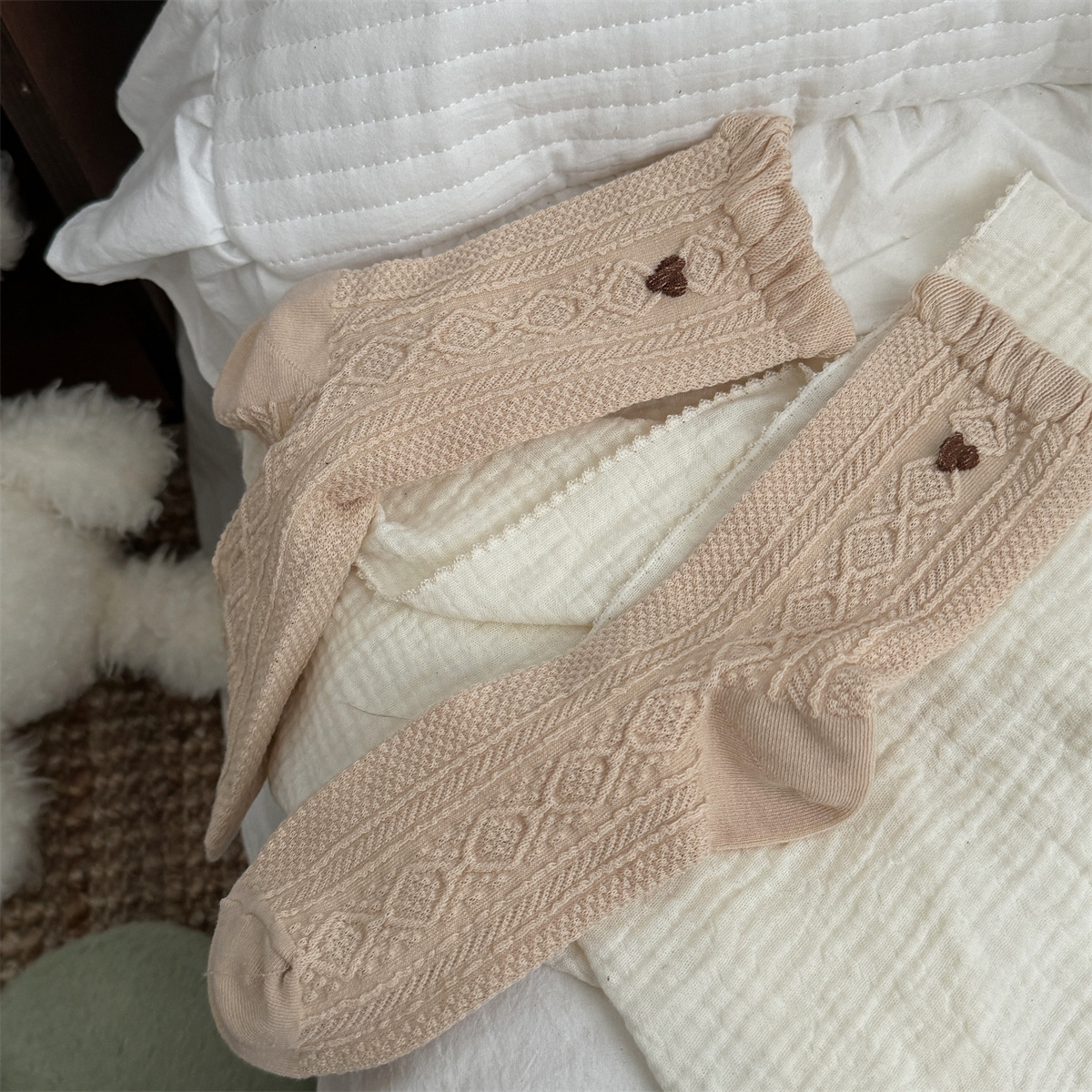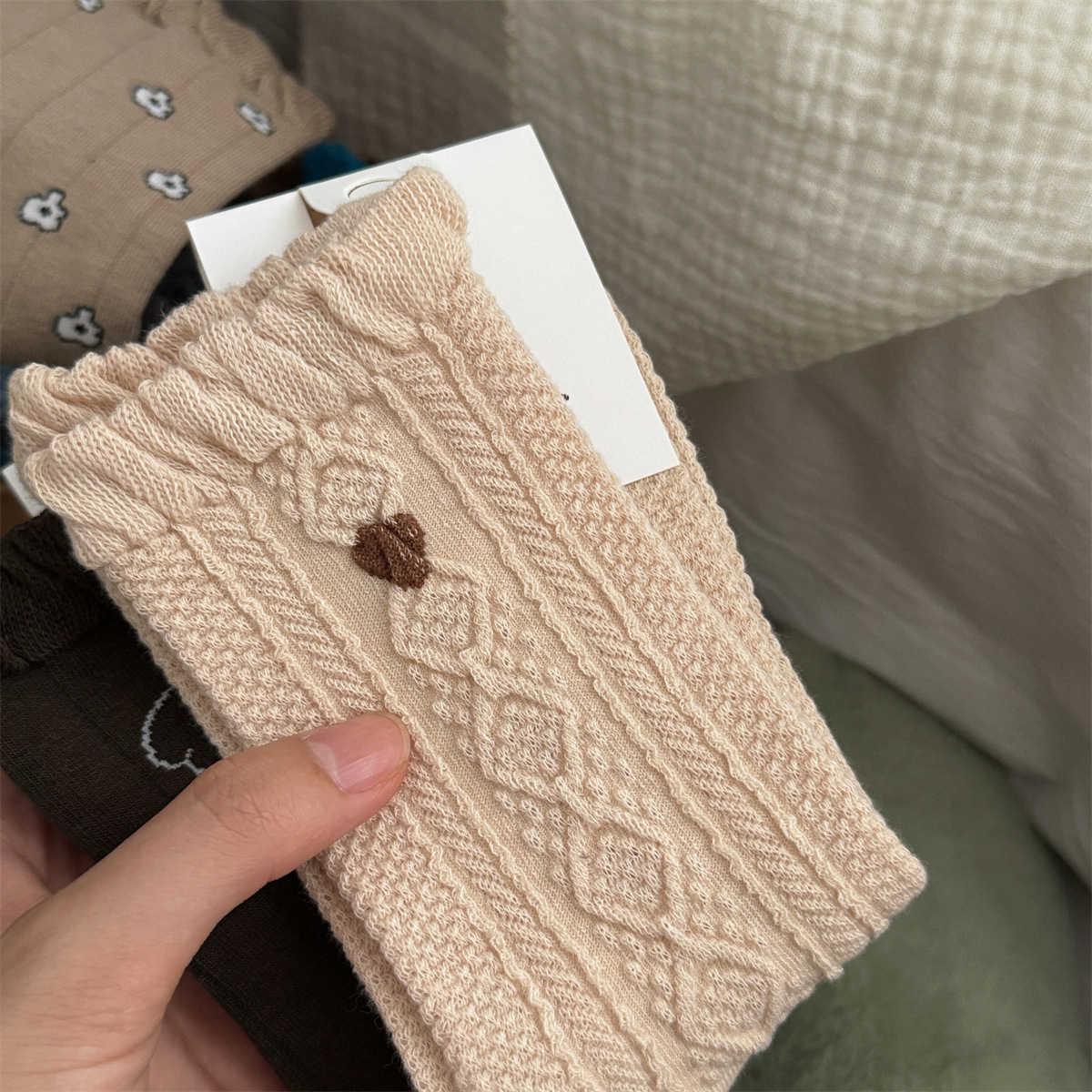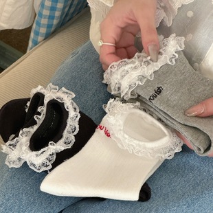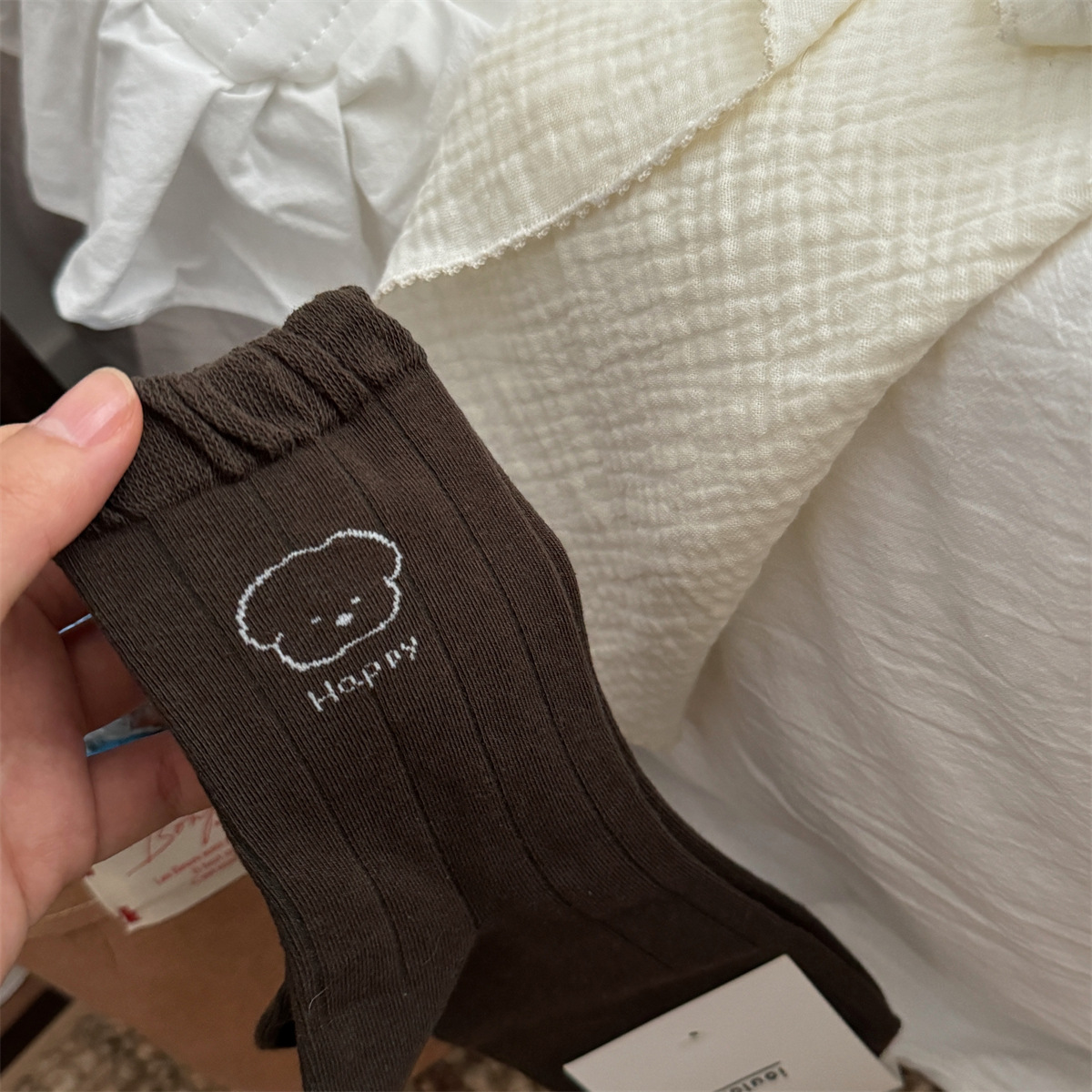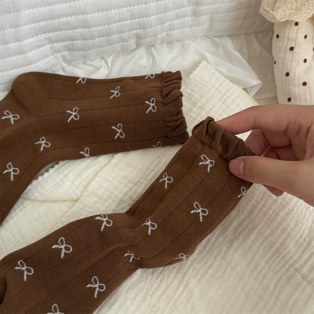 IOULOR 가을과 겨울 빈티지 코튼 양말 일본 소녀 Maillard 컬러 양말 활 거품 입 튜브 양말