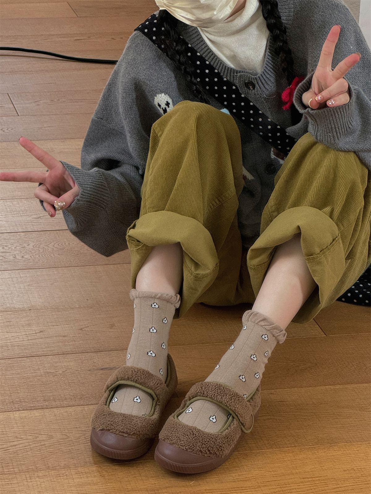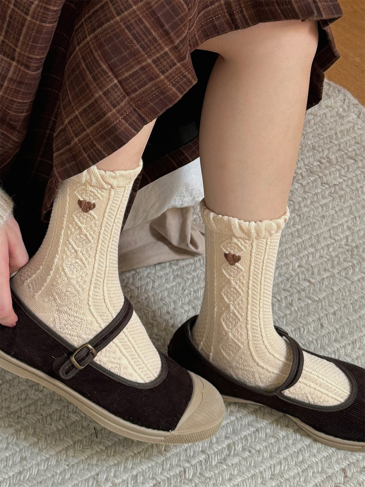 IOULOR 가을과 겨울 빈티지 코튼 양말 일본 소녀 Maillard 컬러 양말 활 거품 입 튜브 양말스토어 가기