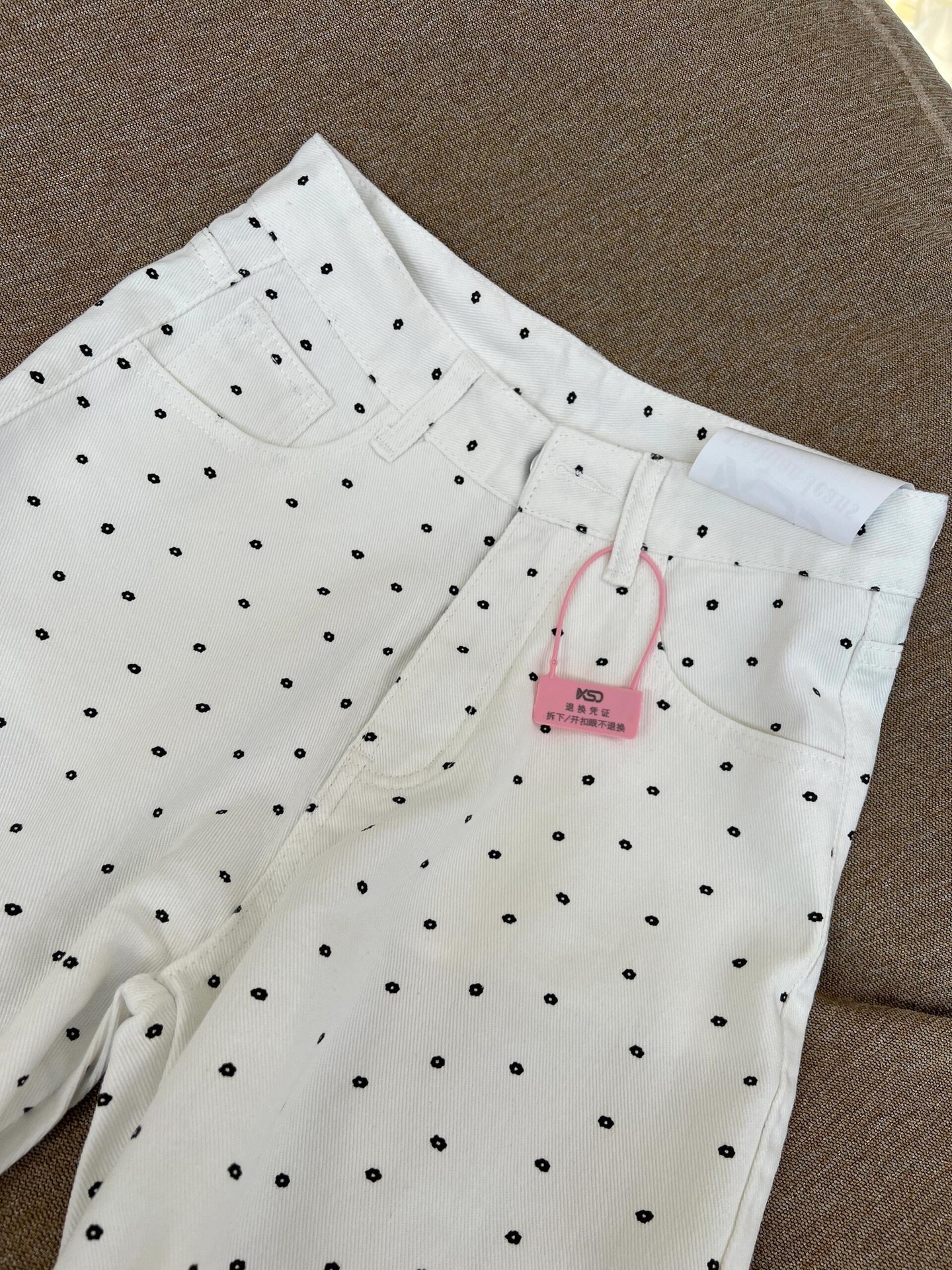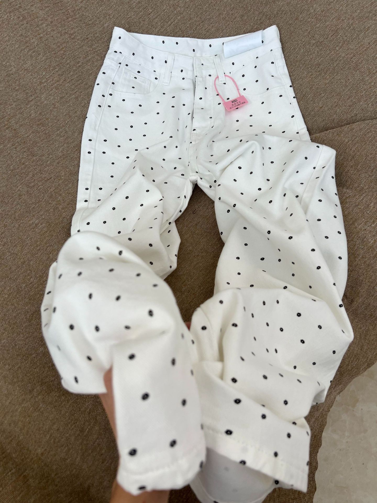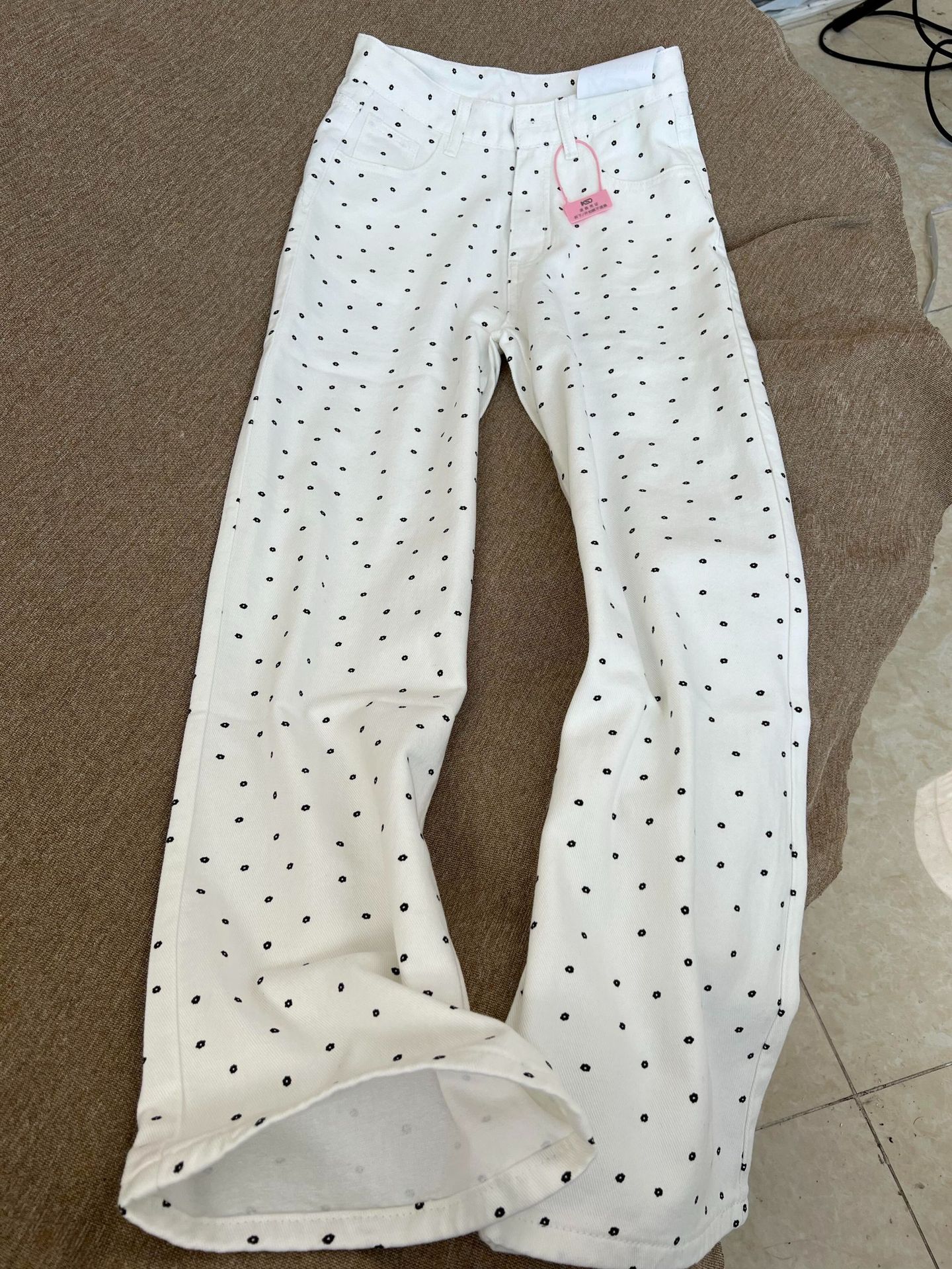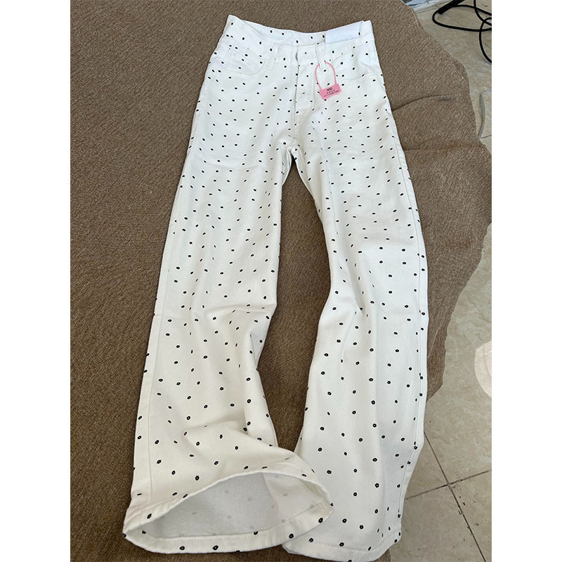 흰색 높은 허리 스트레이트 폴로 도트 꽃 청바지 여성의 가을 새로운 딥 좁은 버전 넓은 다리 바지스토어 가기