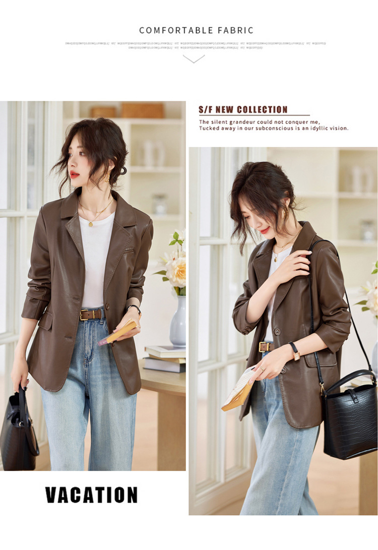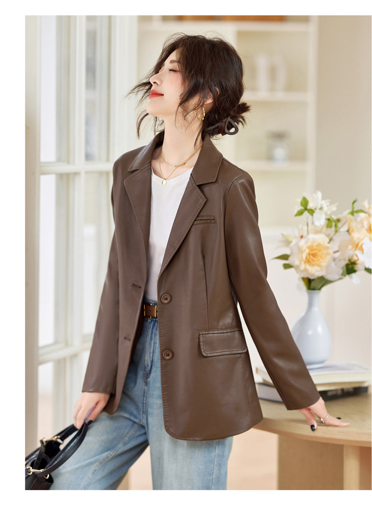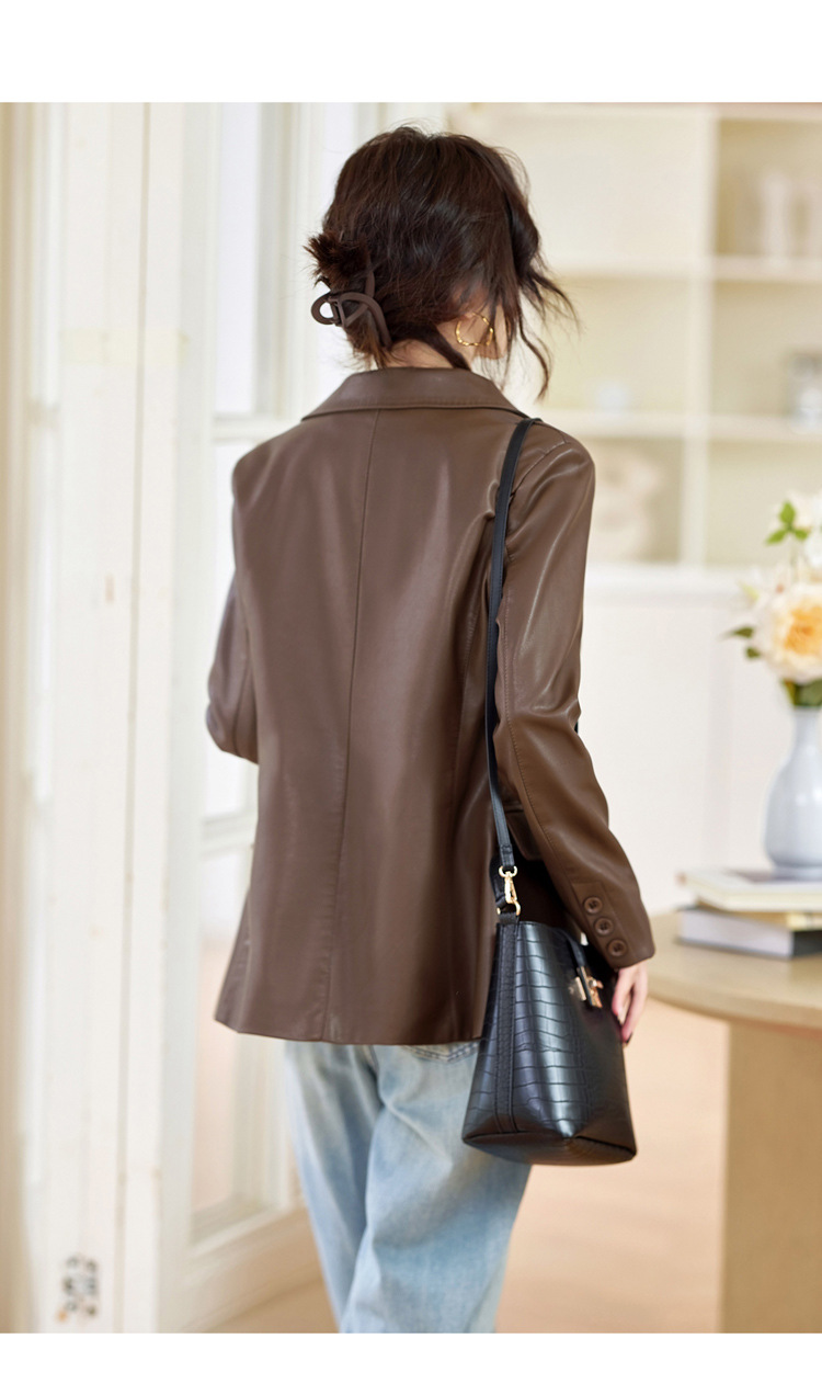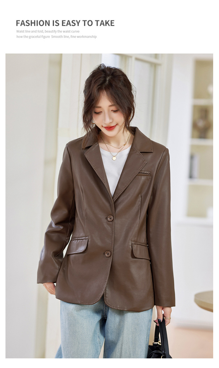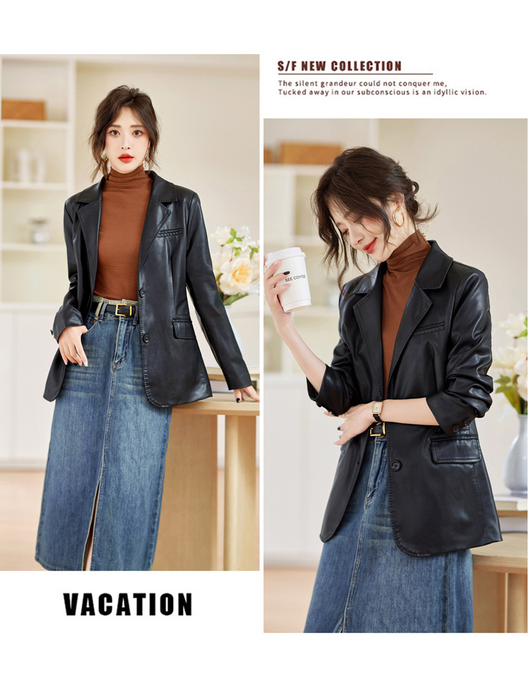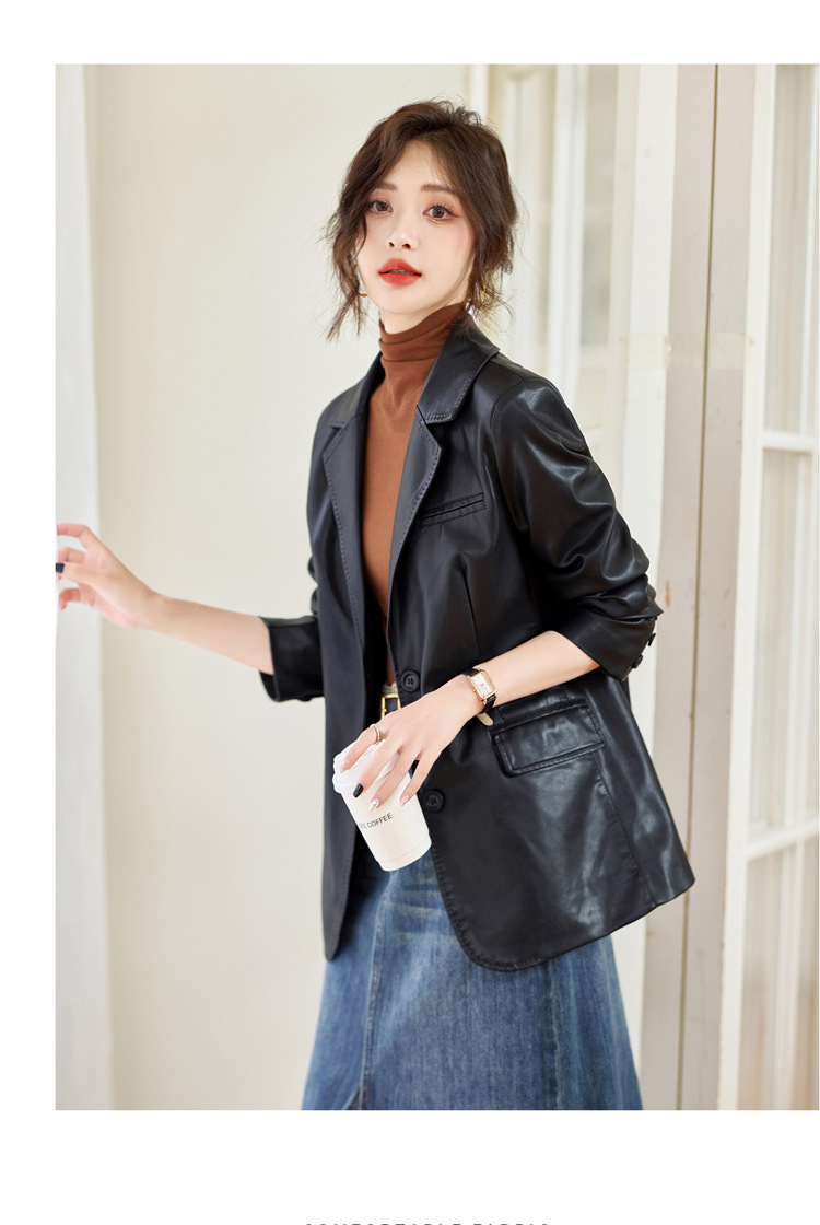 Haining 패션 가죽 브랜드 여성 의류 2025 새로운 기질 복고풍 유행 홍콩 스타일 정장 오토바이 재킷 탑스토어 가기