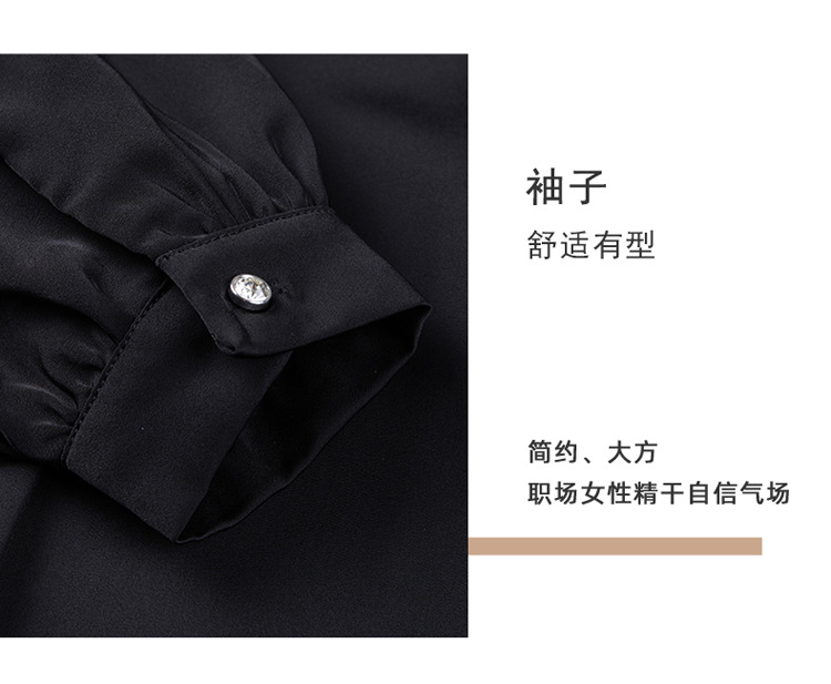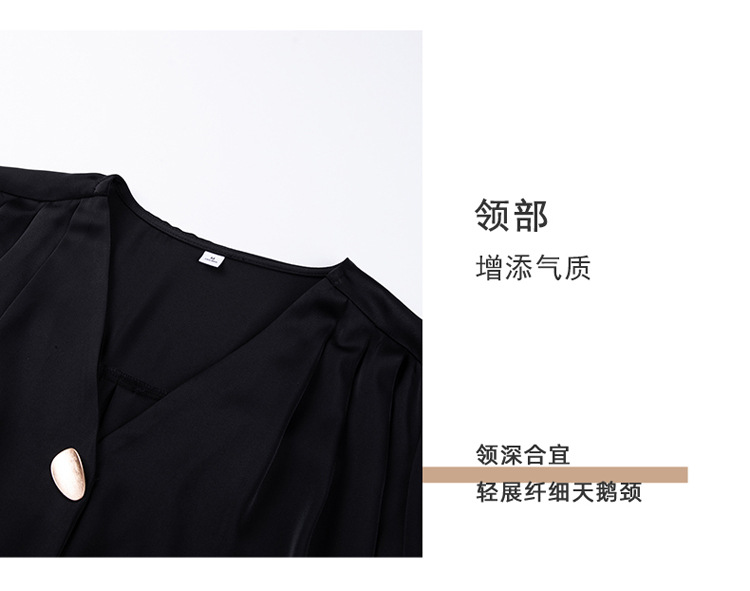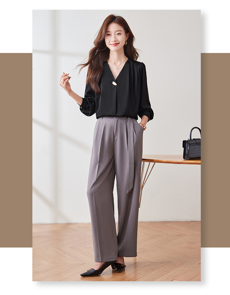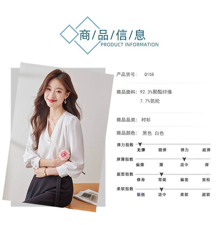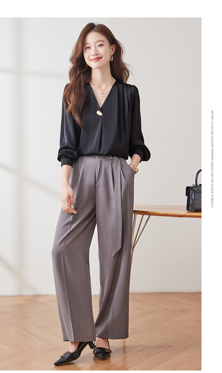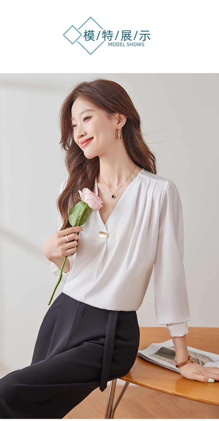 가을 2024 블랙 V 넥 슬림 핏 셔츠 여성용 가을 우아한 긴팔 솔리드 컬러 통근 간단한 셔츠스토어 가기