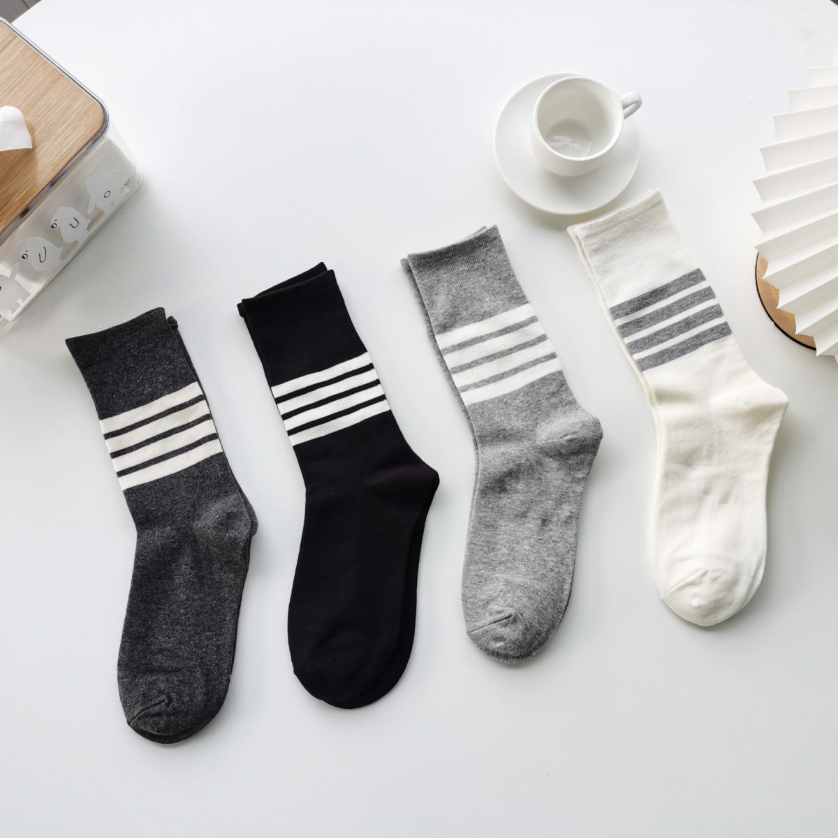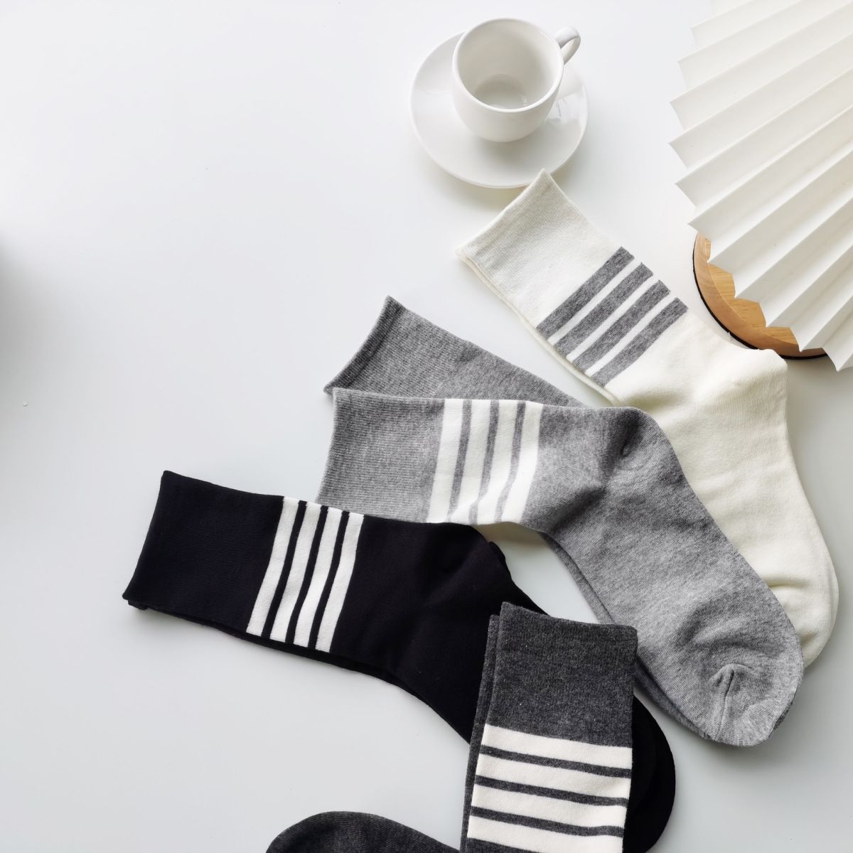 AB Four Bar 양말 여성용 양말 Ins 트렌디 브랜드 십대 단순 흑백 줄무늬 스포츠 JK 양말스토어 가기