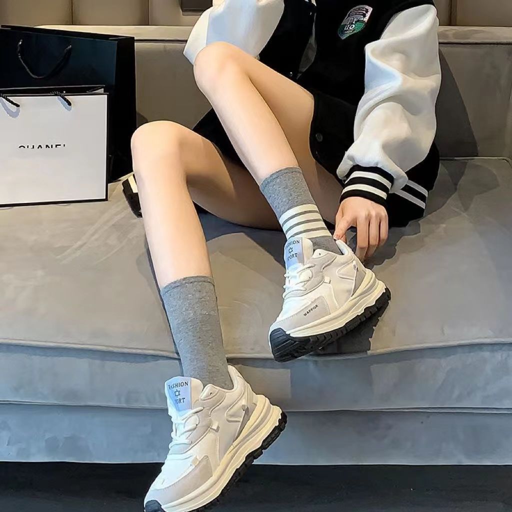 AB Four Bar 양말 여성용 양말 Ins 트렌디 브랜드 십대 단순 흑백 줄무늬 스포츠 JK 양말