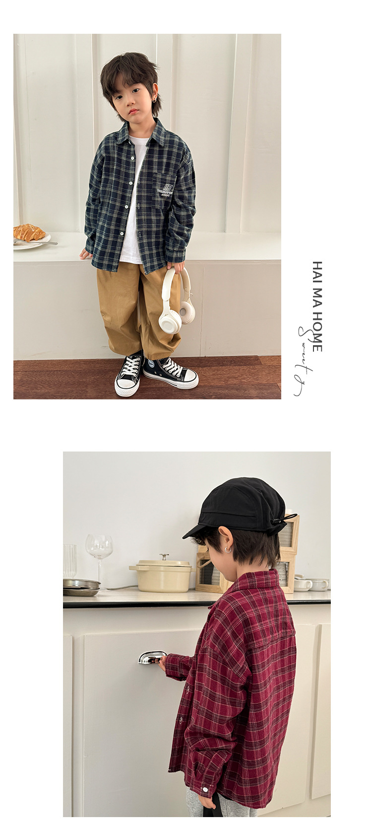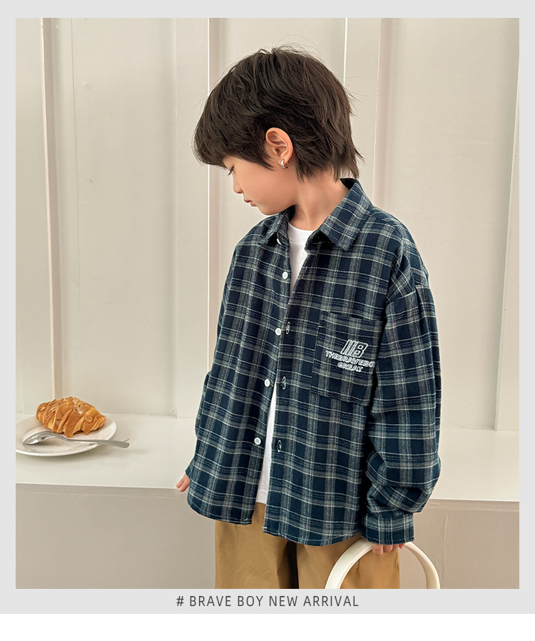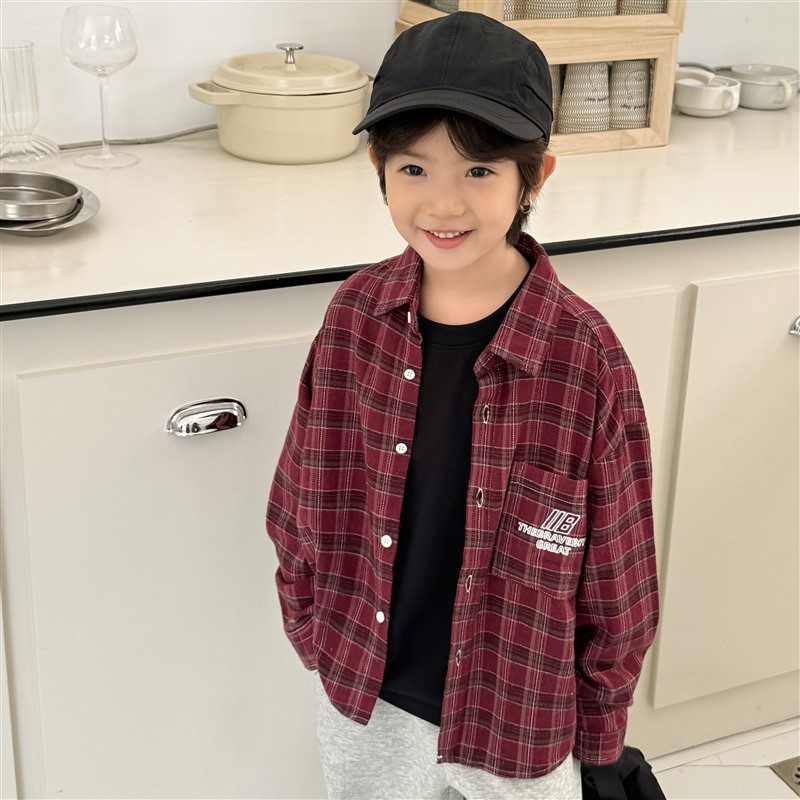 Haima의 2025 봄 가을 새로운 스타일 소년 유행 가을 옷 한국 스타일 격자 무늬 셔츠 긴팔 아동복 아동 패션스토어 가기