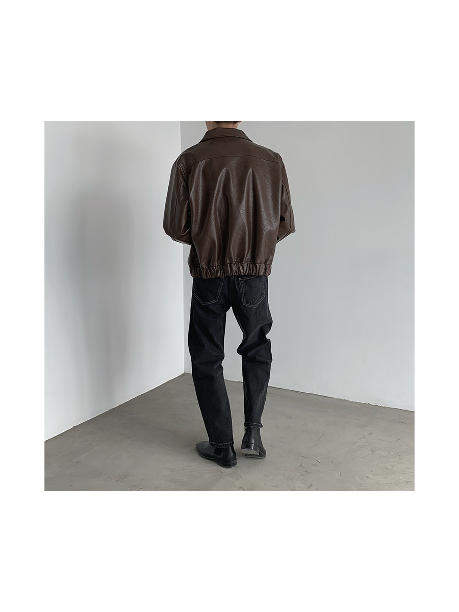 2024 가을과 겨울 빈티지 다크 브라운 PU 가죽 느슨한 올매치 짧은 가죽 자켓 남자 코트 잘 생긴 트렌디 인스토어 가기