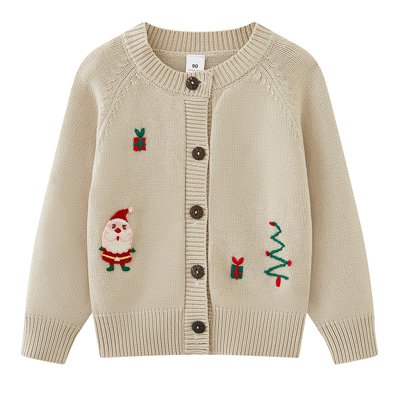 2025 크로스 보더 봄, 가을 손으로 만든 크리스마스 새로운 중소 어린이 스웨터 카디건 순수 코튼 소녀 니트 카디건 재킷